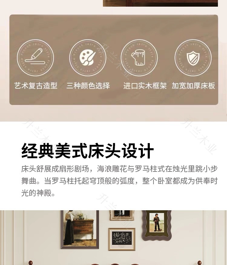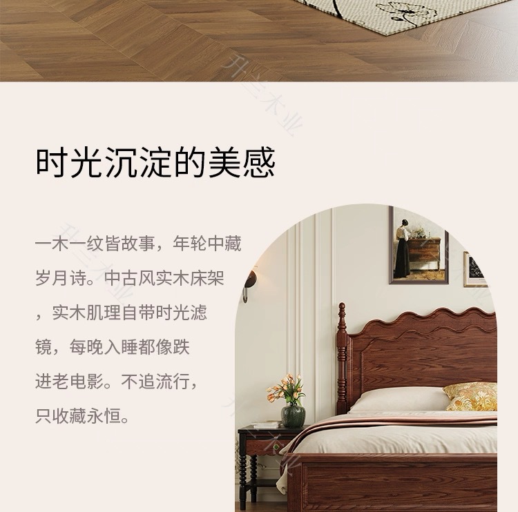 중세 스타일 애쉬 원목 침대 현대적인 간단한 웨이브 더블 침대 복고풍 프렌치 침대 마스터 침실 1.8m 라이트 럭셔리 침대스토어 가기