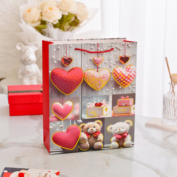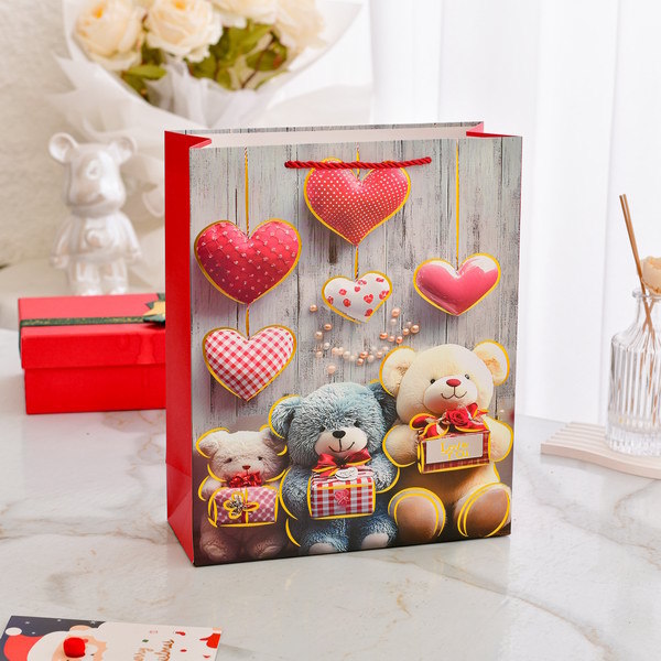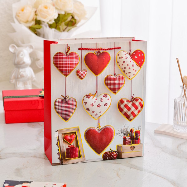 발렌타인 데이 남자 친구와 여자 친구 선물 포장 종이 봉투 로맨틱 러브 패턴 선물 가방 선물 포장 동반자 선물 가방