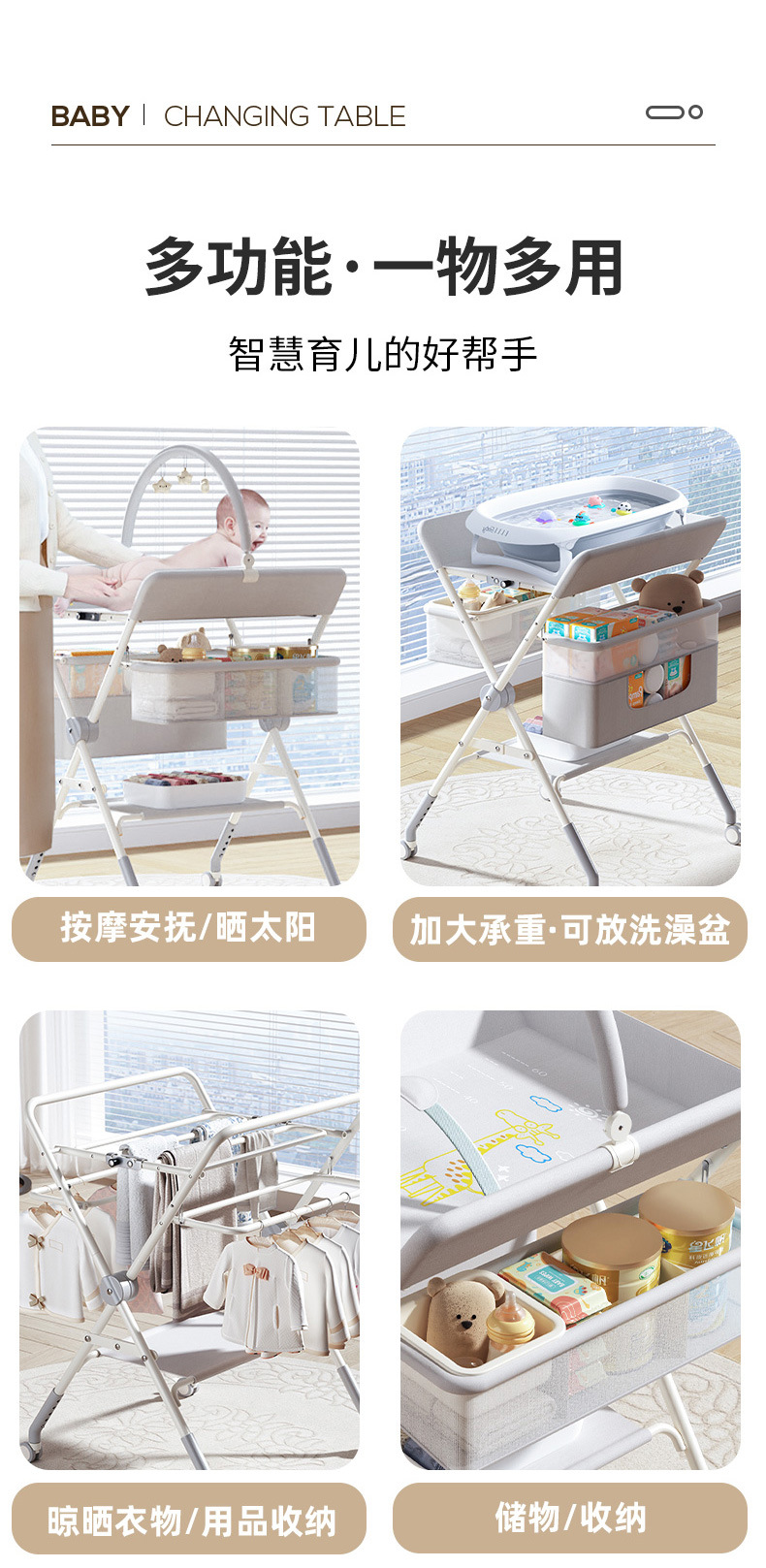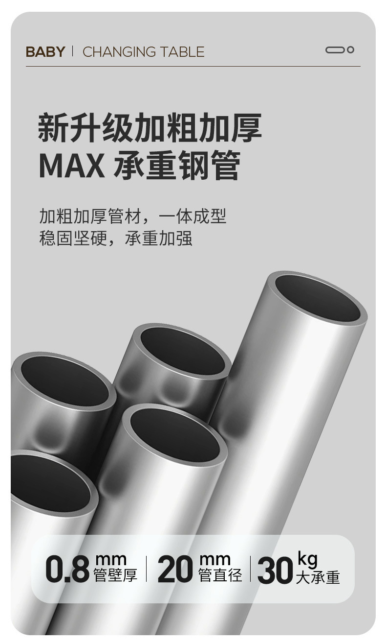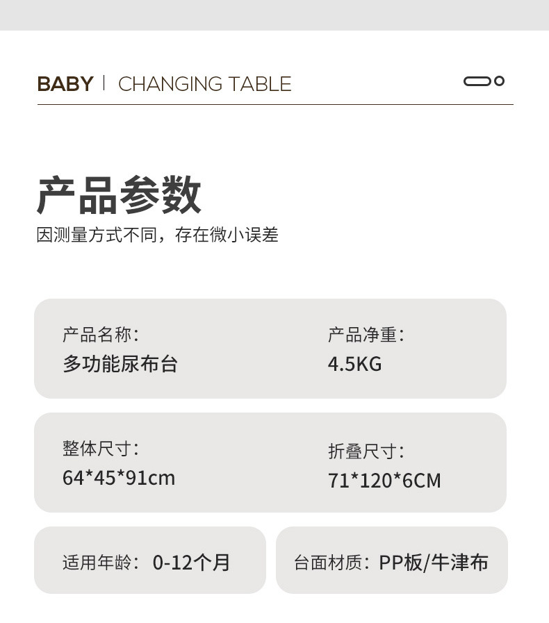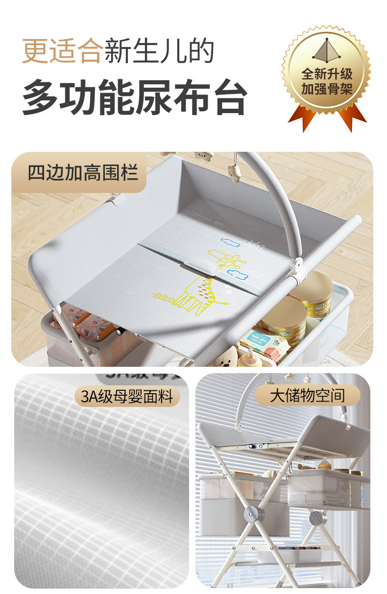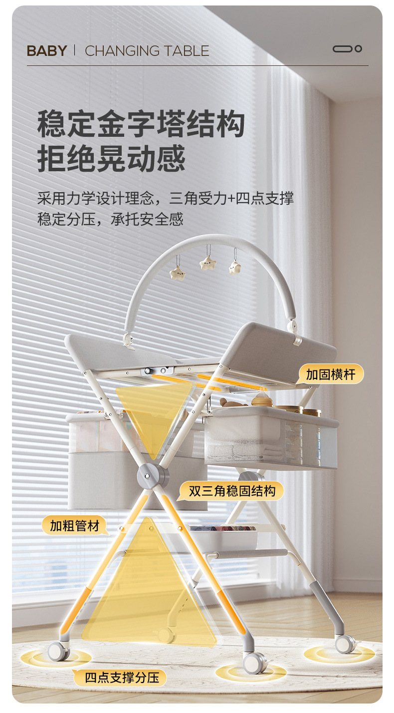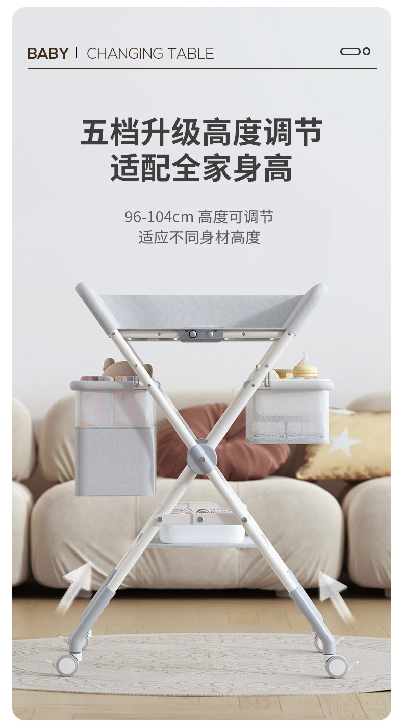 8、选配配件:可升降万向轮、单层侧兜、双层侧兜、玩具架、小水盆、隔尿垫、定型枕