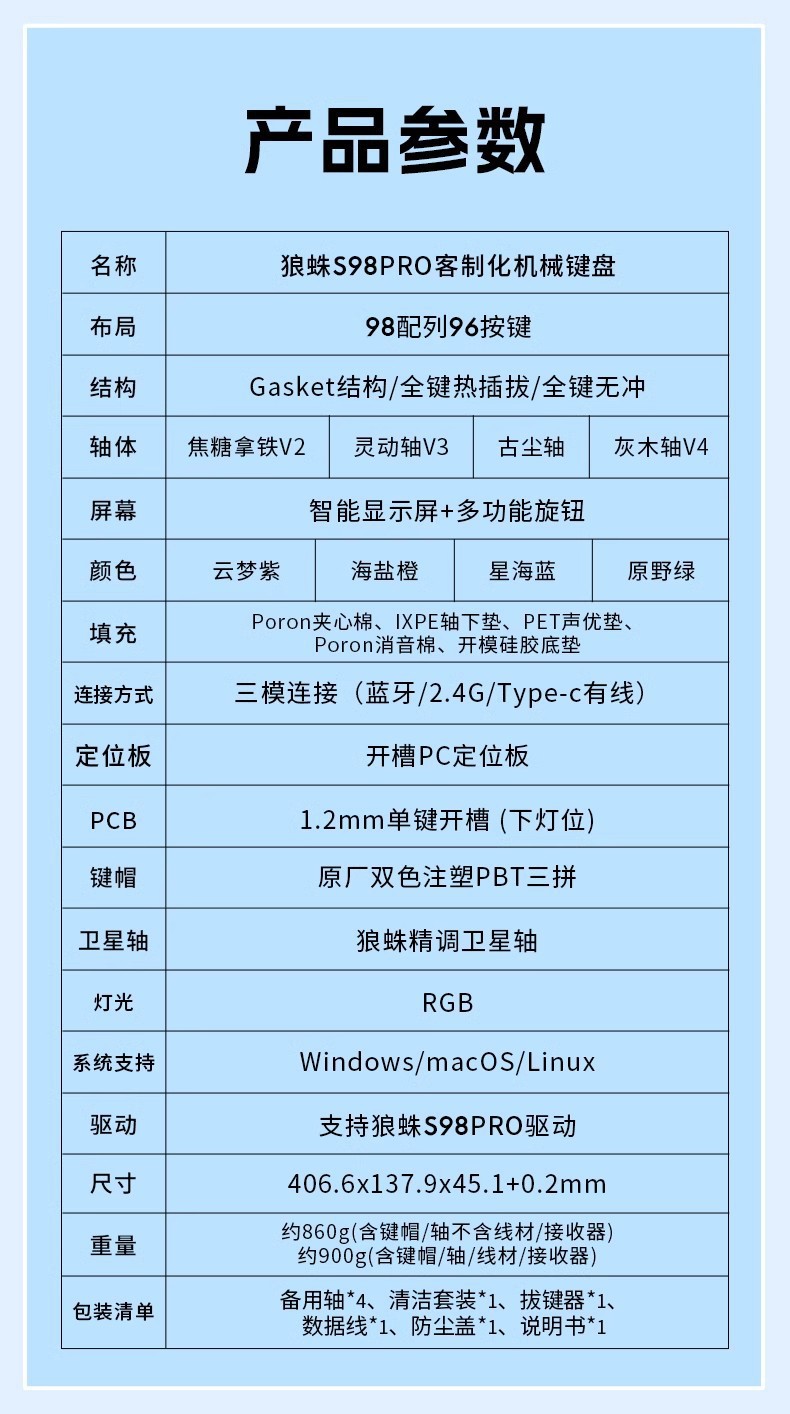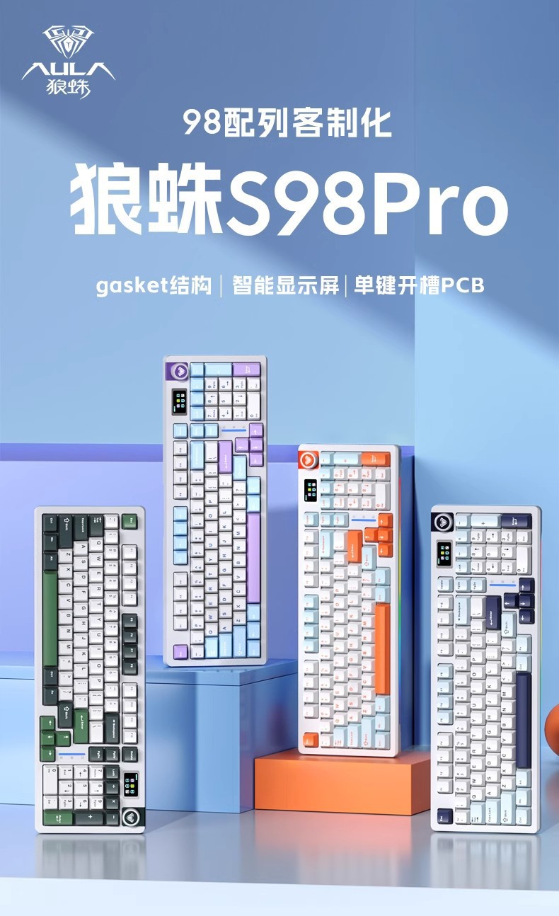 Wolf Spider S98Pro e-스포츠 Bluetooth 무선 3 모드 핫 스왑 가능 단일 키 슬롯 GASKET 맞춤형 기계식 키보드스토어 가기