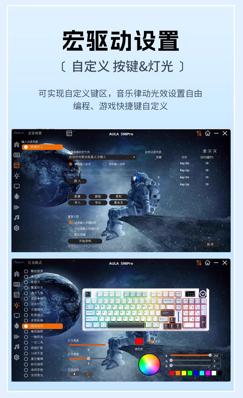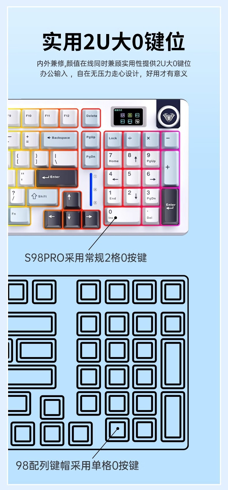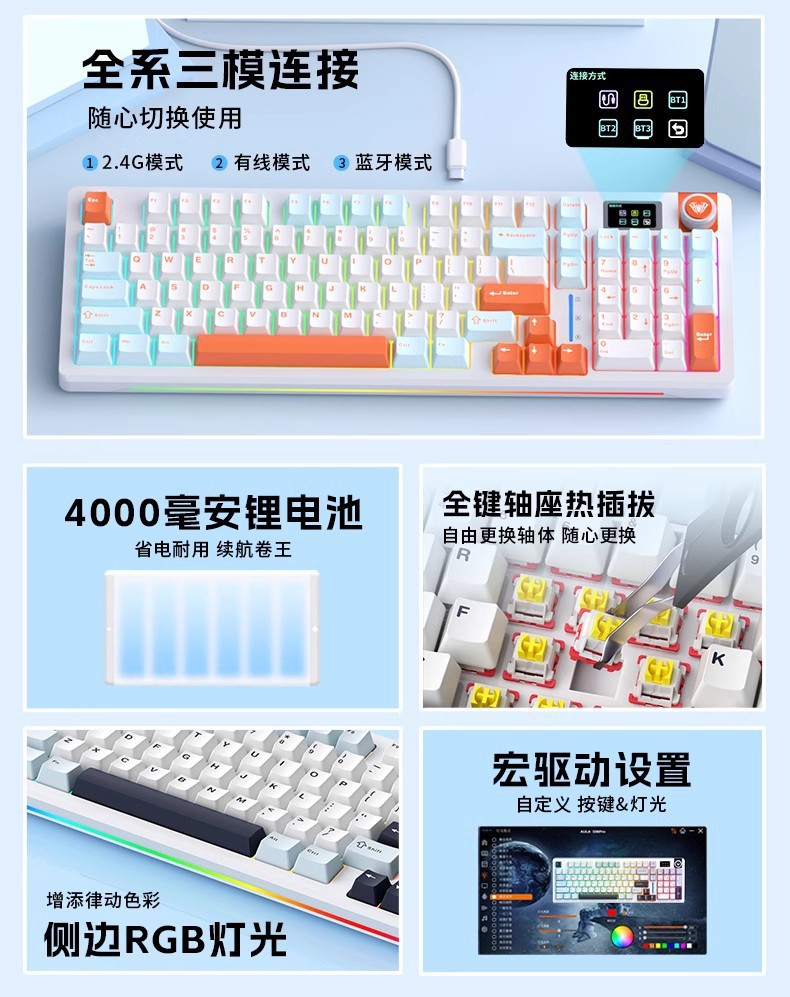 Wolf Spider S98Pro e-스포츠 Bluetooth 무선 3 모드 핫 스왑 가능 단일 키 슬롯 GASKET 맞춤형 기계식 키보드