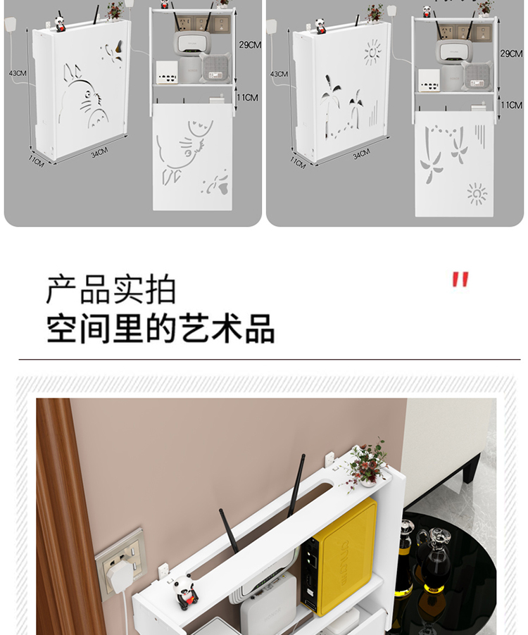 무선 Wi-Fi TV 셋톱 박스 라우터 보관함 펀치 없는 보관함 벽걸이 장식 커버스토어 가기