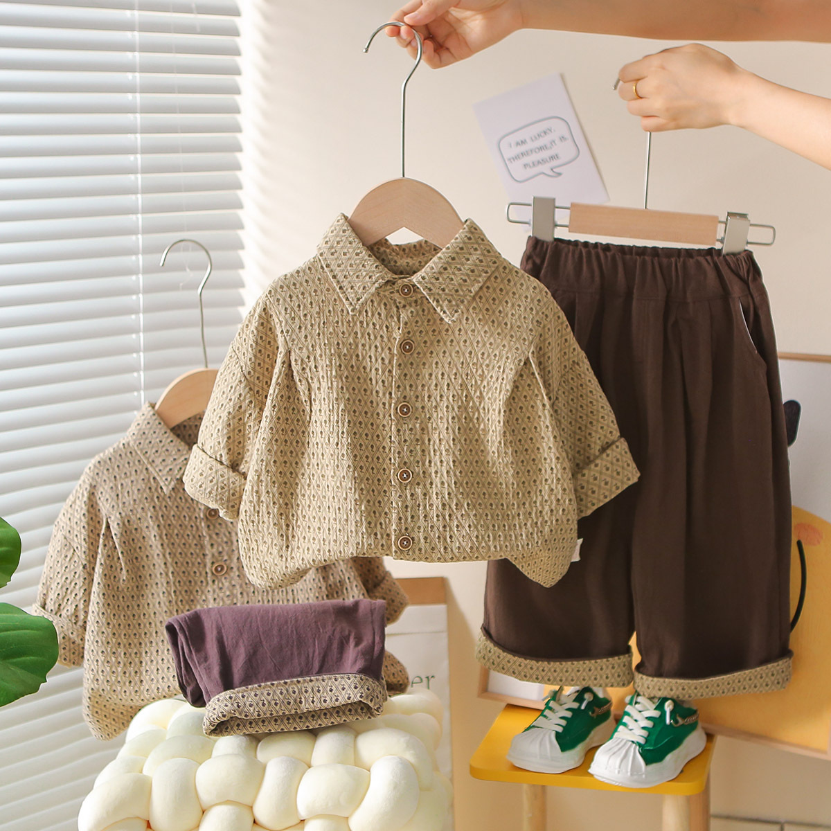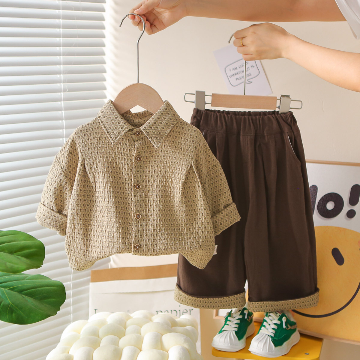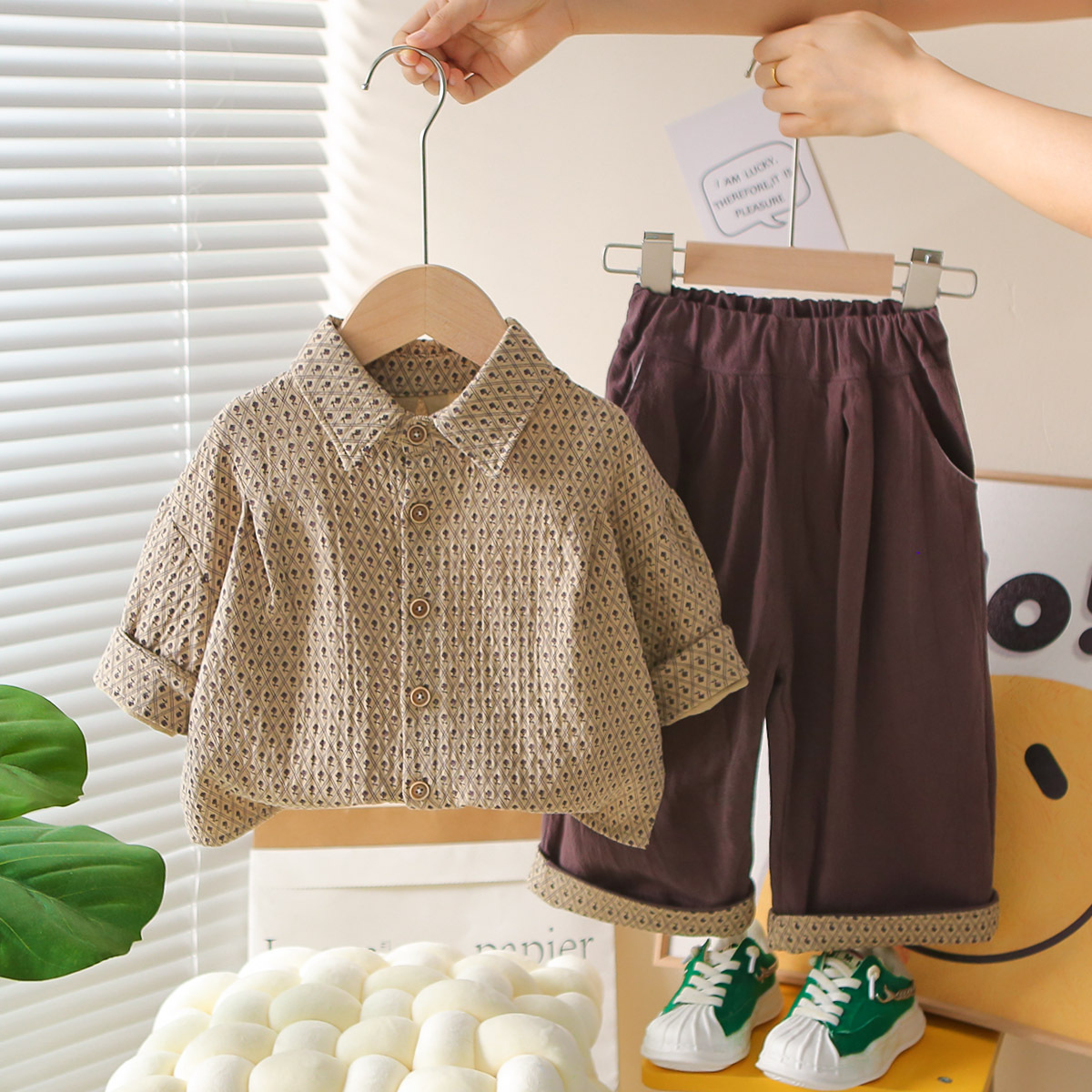 소년 가을 의류 세트 2025 새로운 한국어 스타일 잘 생긴 아기 봄, 가을 셔츠 투피스 세트 잘 생긴 어린이 옷스토어 가기