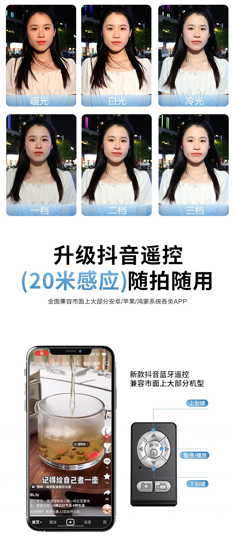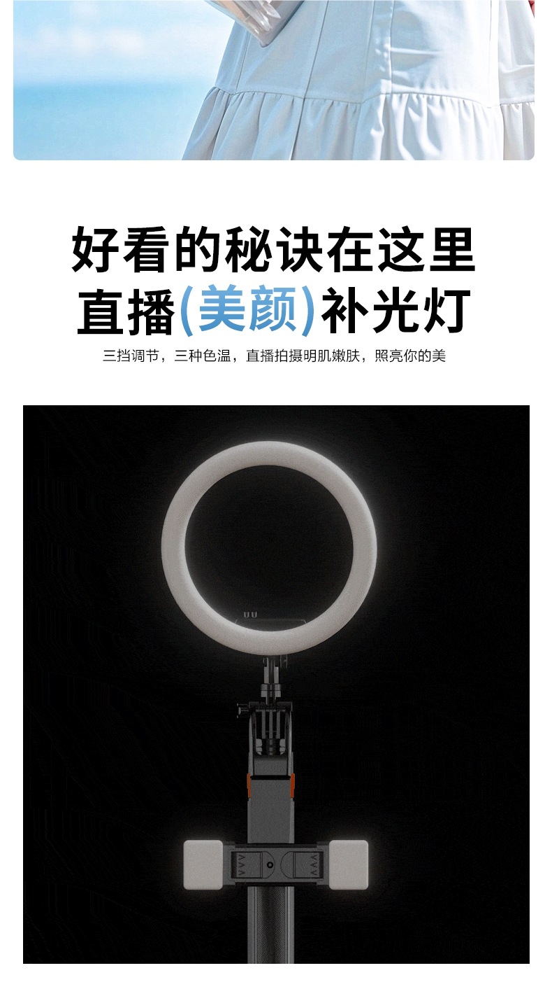 • 2.2m축 탄소섬유강 업그레이드 4개 다리 [흔들림 방지 플로어 스탠딩 모델] 듀얼 뷰티 램프 + 충전 리모콘