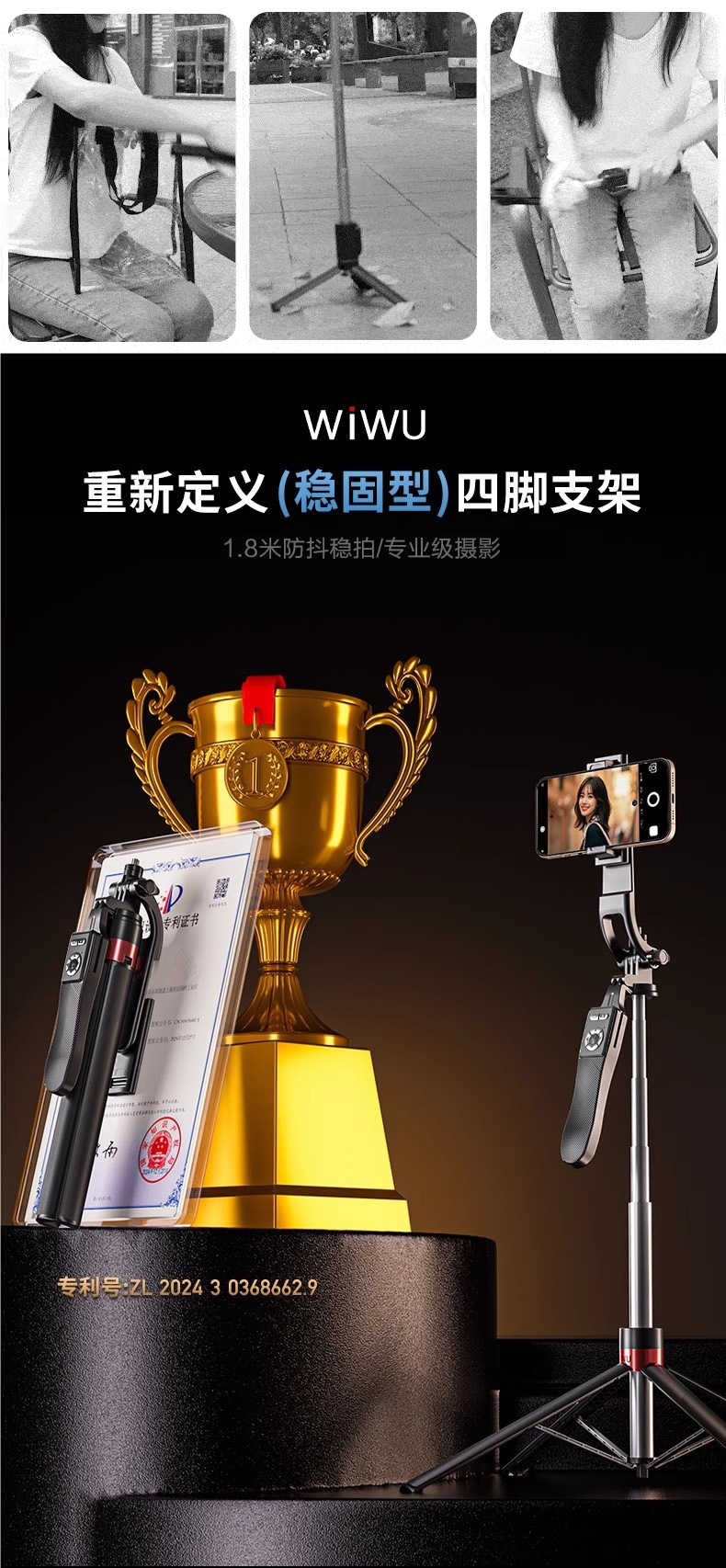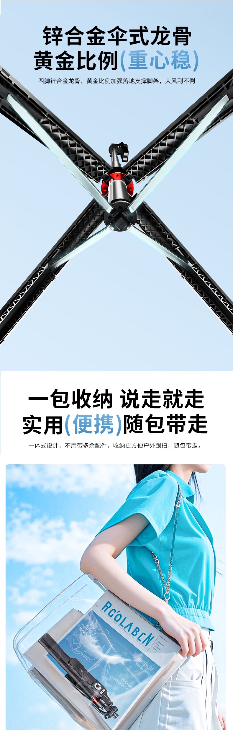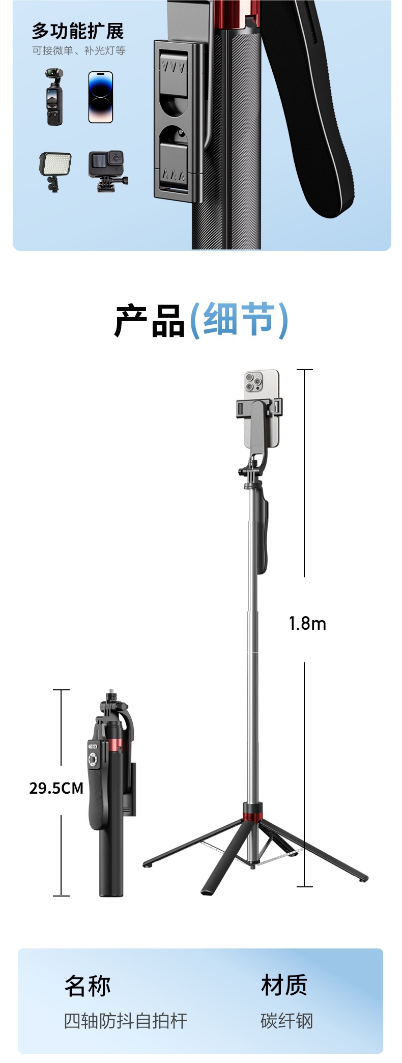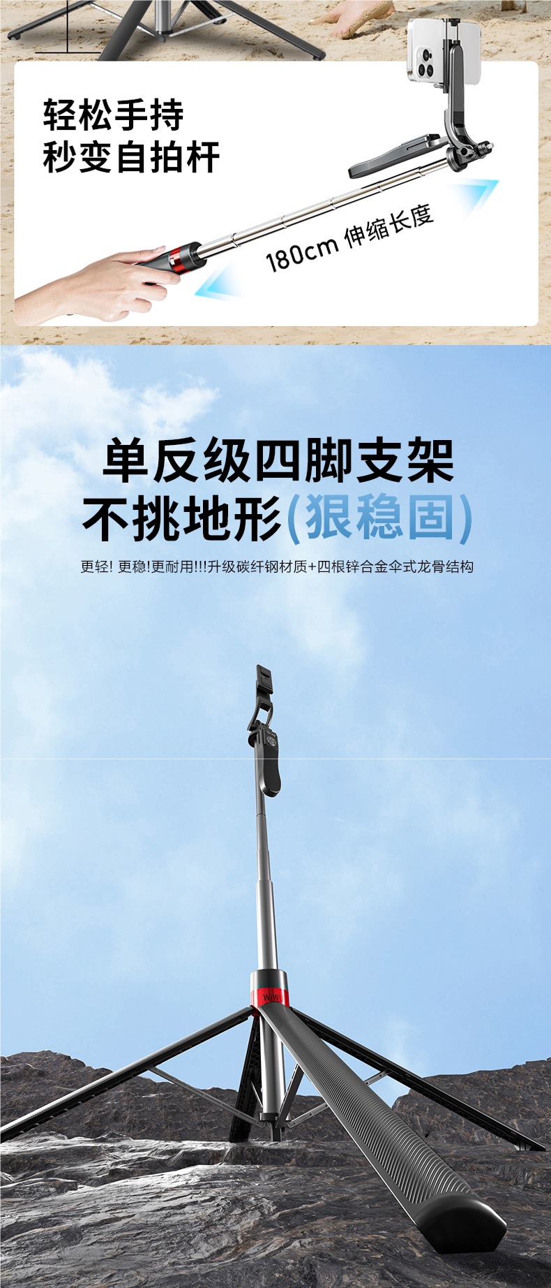 • 2.2m축 탄소섬유강 업그레이드 4족 [흔들림 방지 플로어 스탠딩 모델] 충전 리모컨 포함