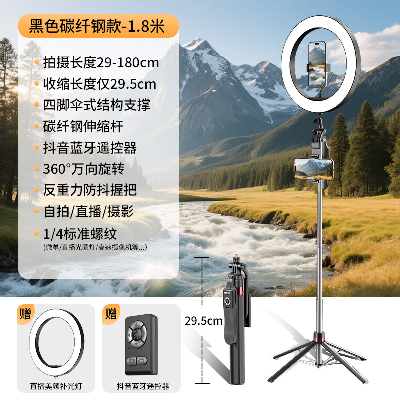 • 2.2m축 탄소섬유강 업그레이드 4다리 [흔들림 방지 플로어 스탠딩 모델] 전문 라이브 방송 조명 + 충전 리모콘
