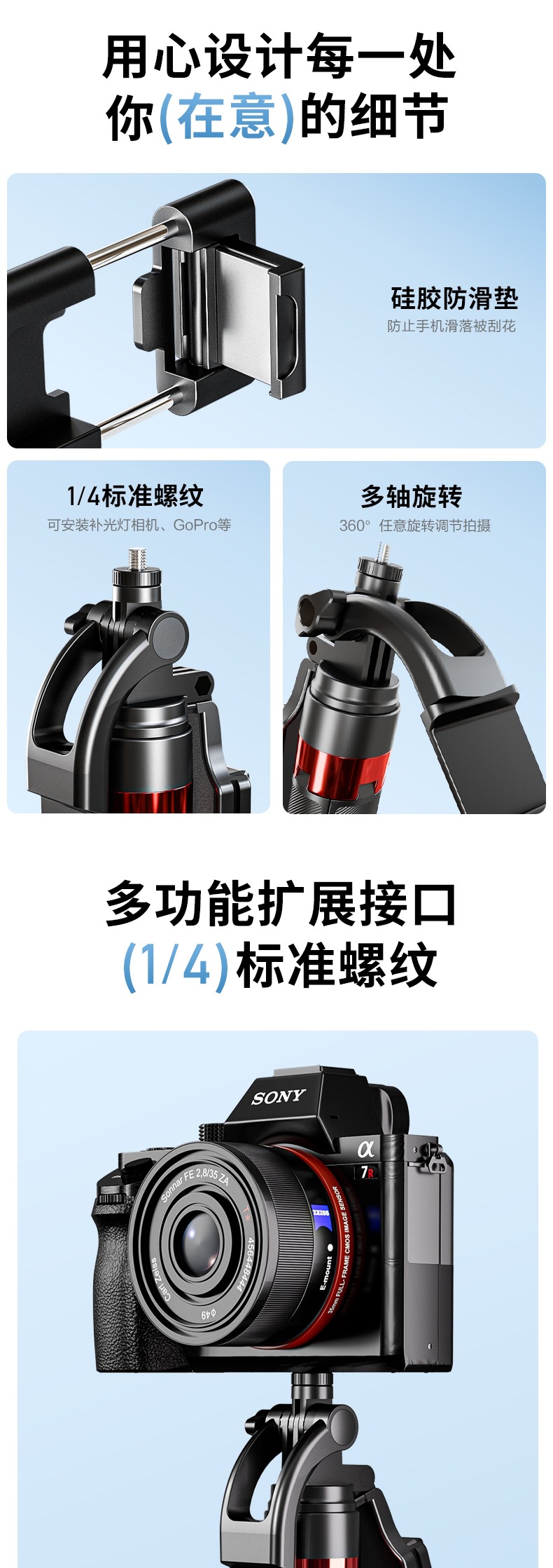 셀카봉 플로어 스탠딩 삼각대 2025 새로운 휴대폰 범용 여행 휴대용 360도 회전 휴대용 촬영