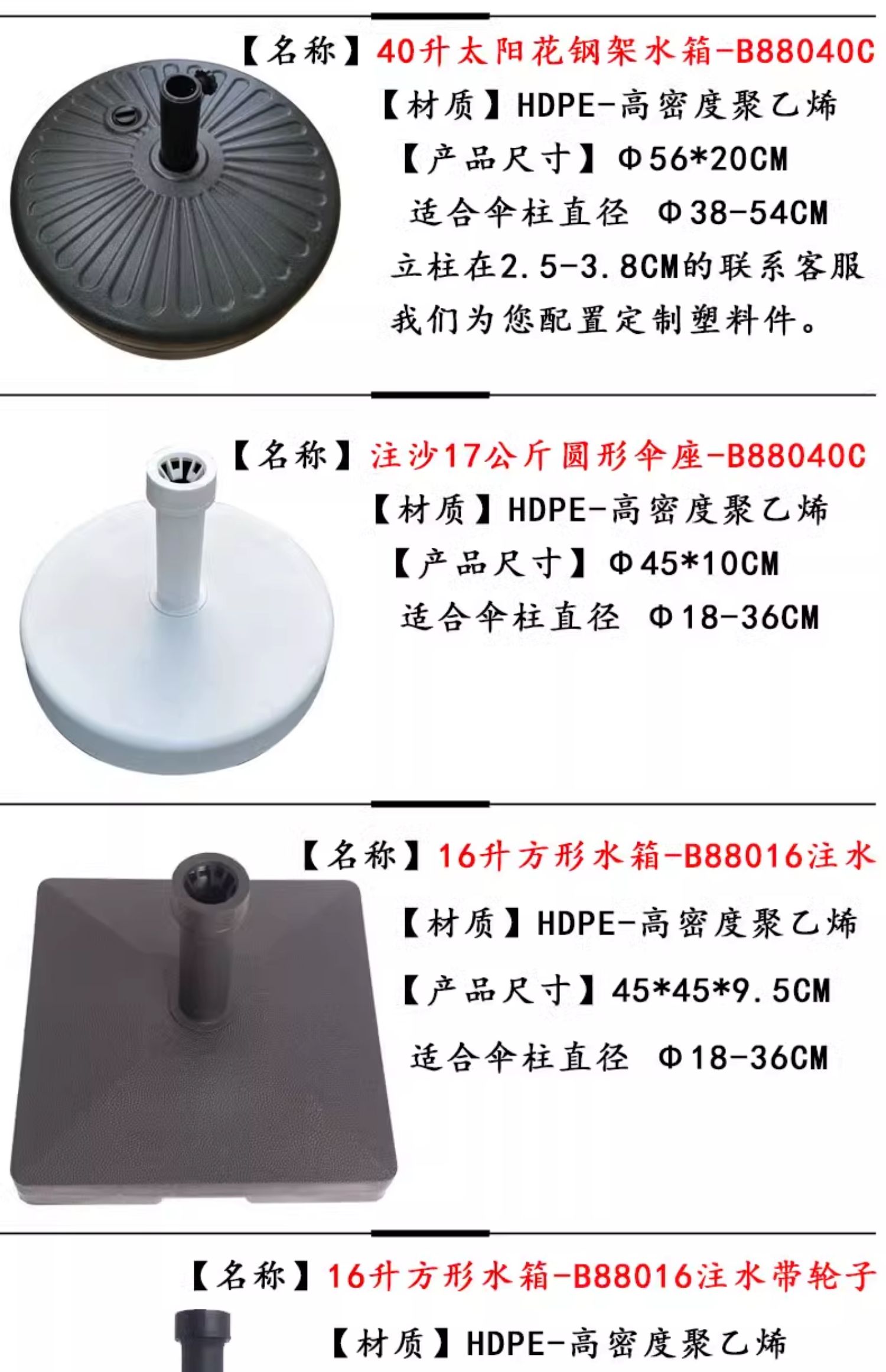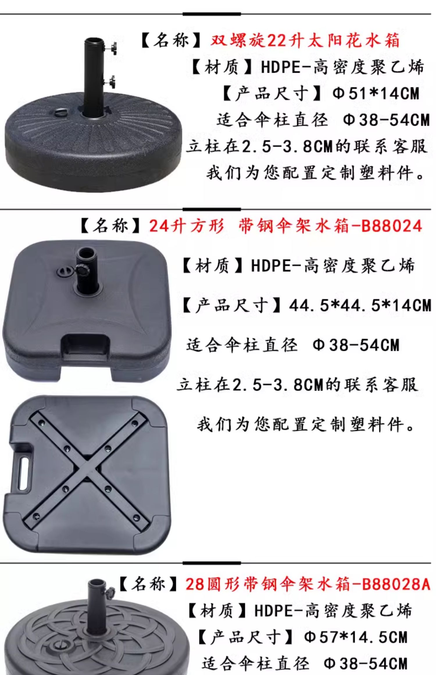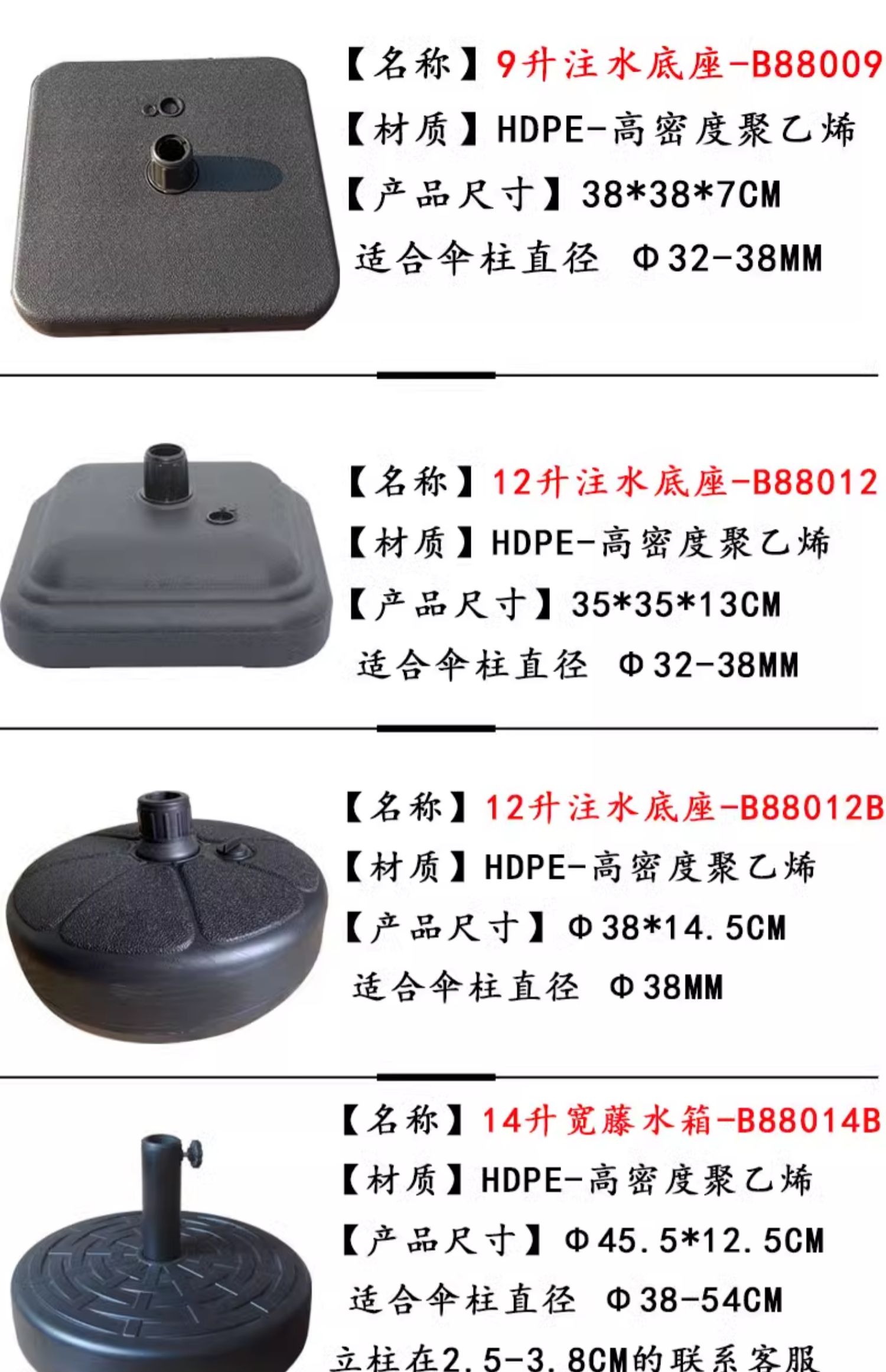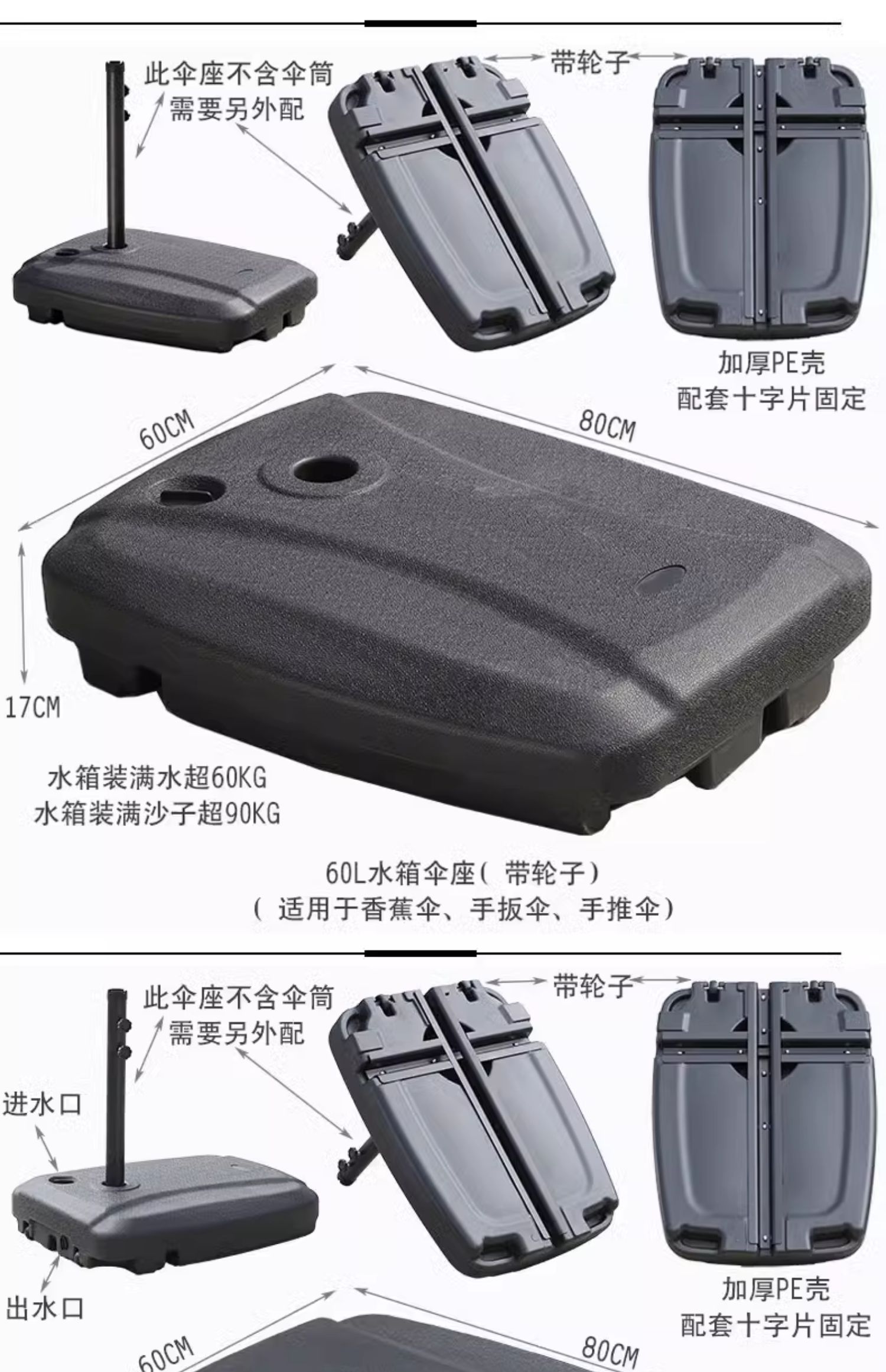 야외용 파라솔, 물과 모래 주입식 파라솔 베이스, 물탱크 파라솔 베이스, 물댐 파라솔 베이스, 물주입식 고정식 물베이스