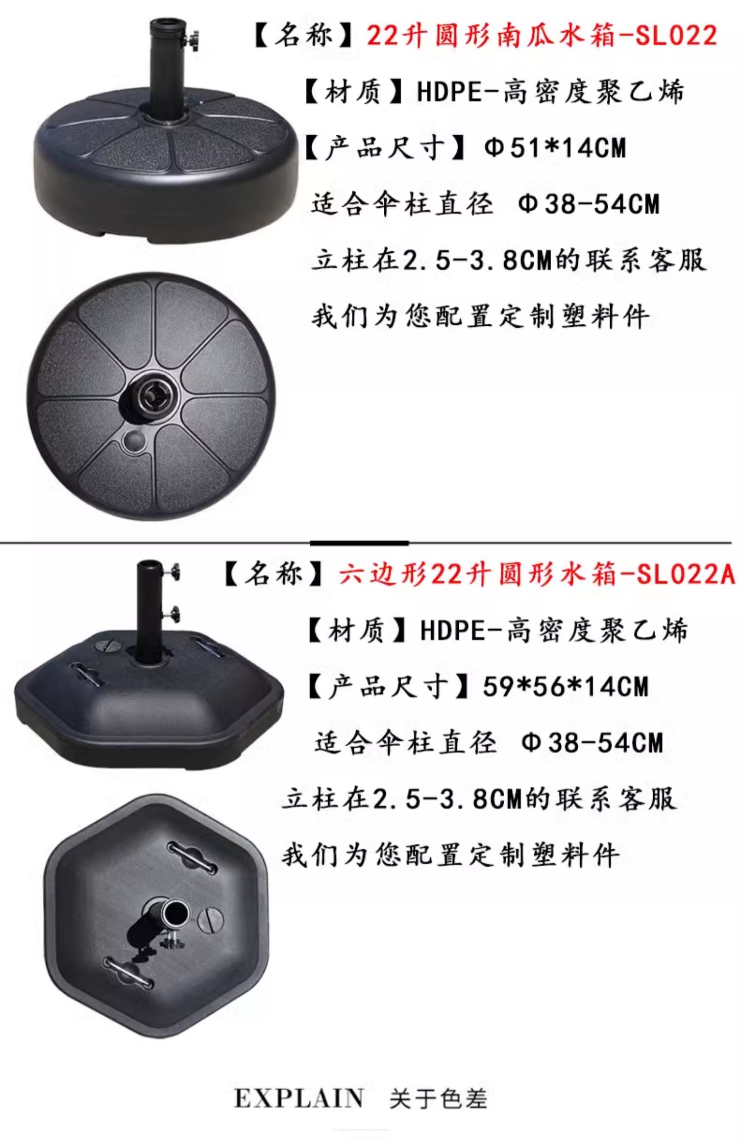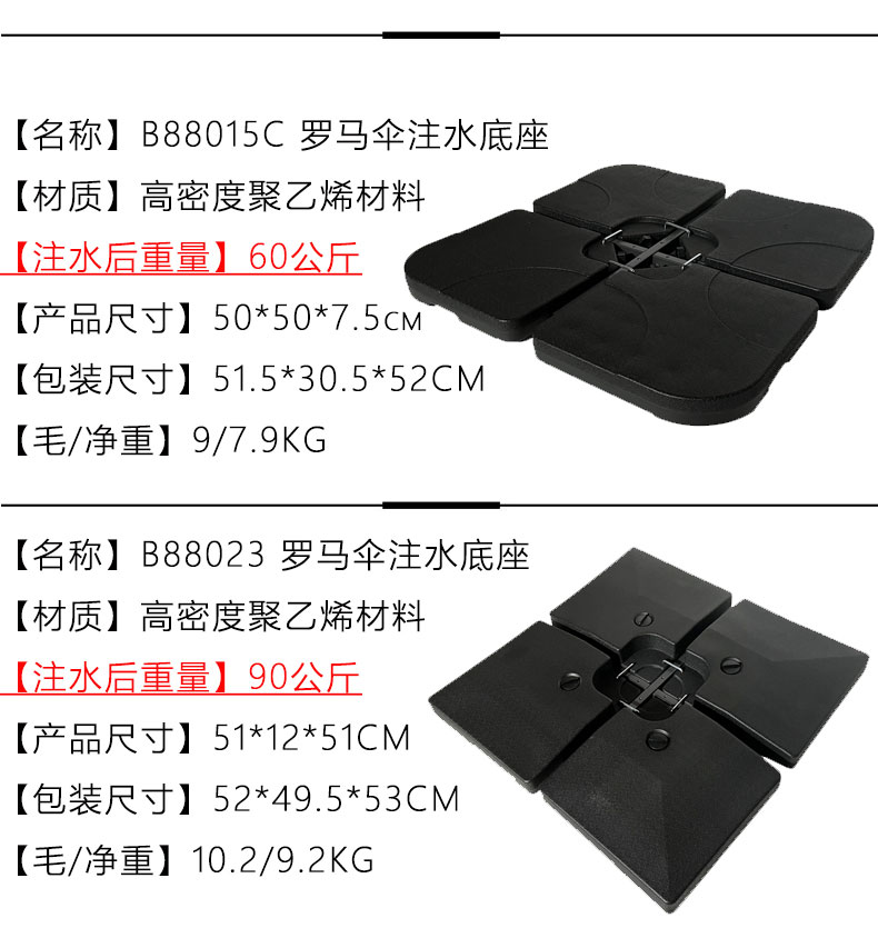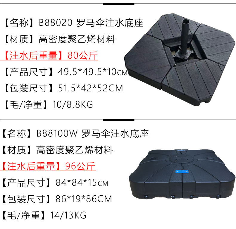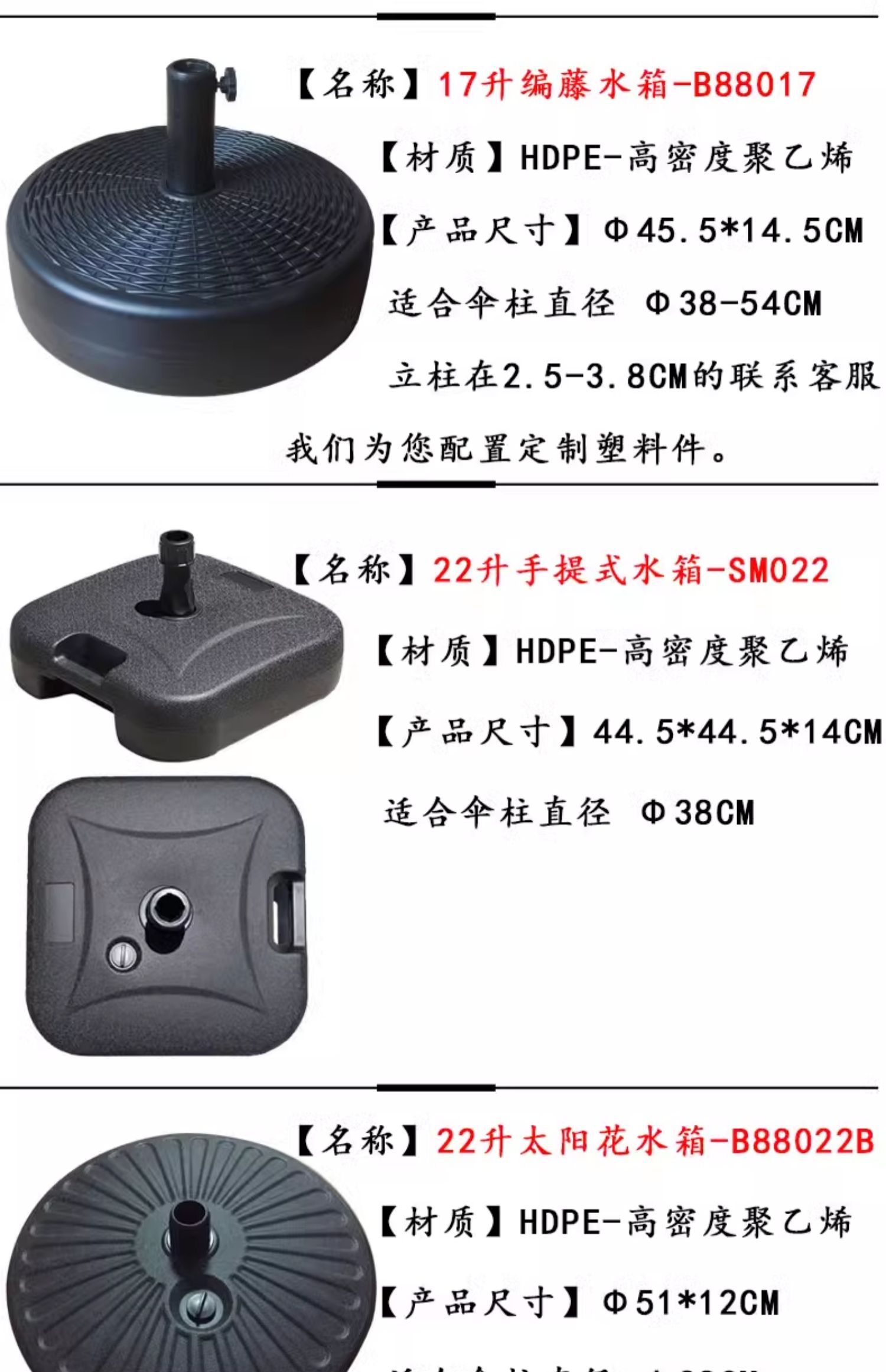 야외용 파라솔, 물과 모래 주입식 파라솔 베이스, 물탱크 파라솔 베이스, 물댐 파라솔 베이스, 물주입식 고정식 물베이스