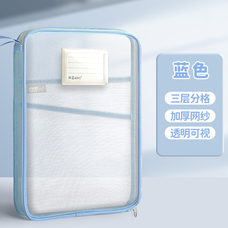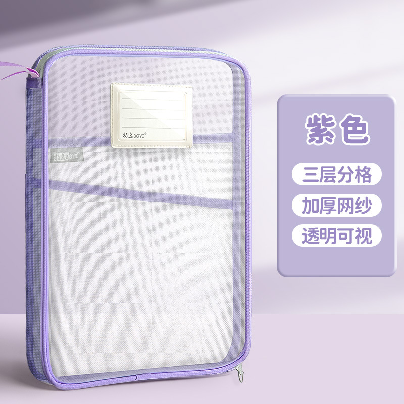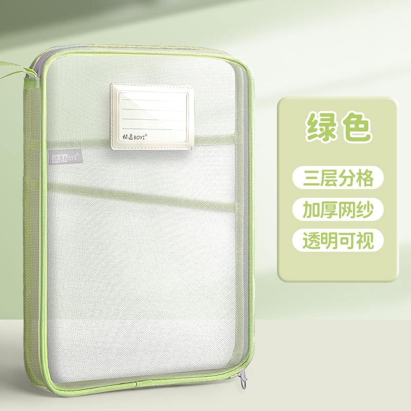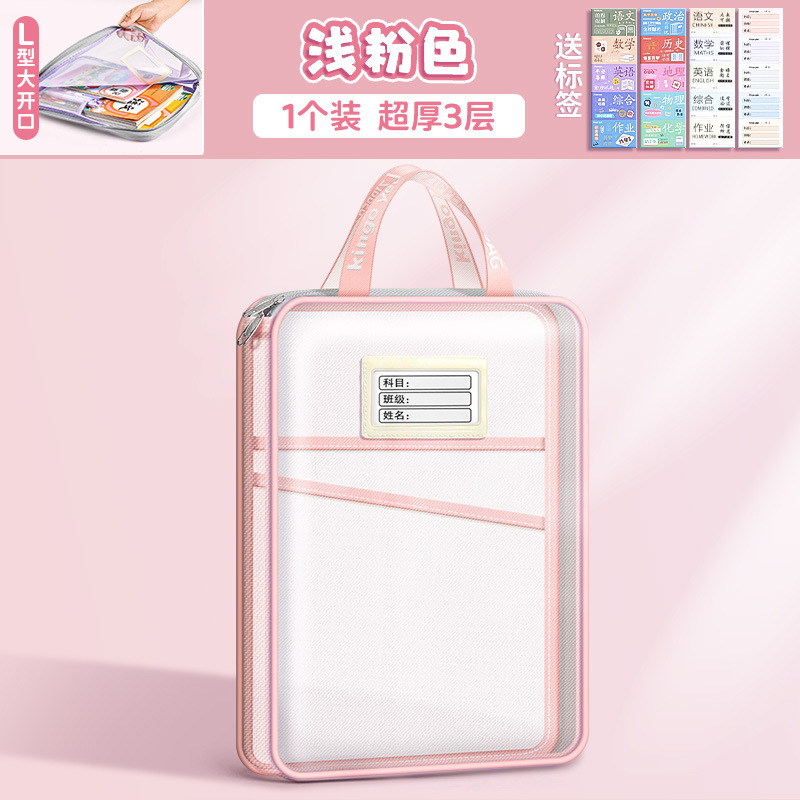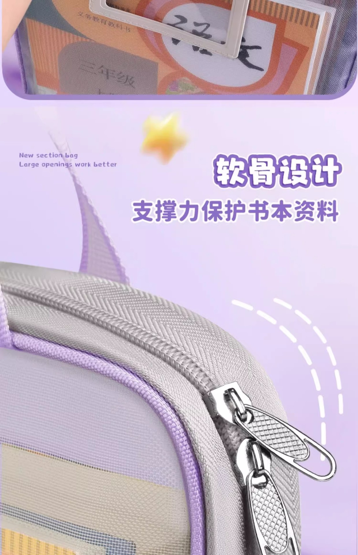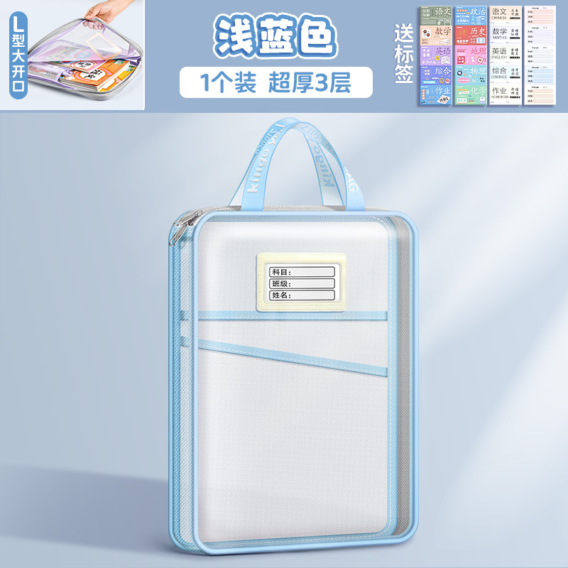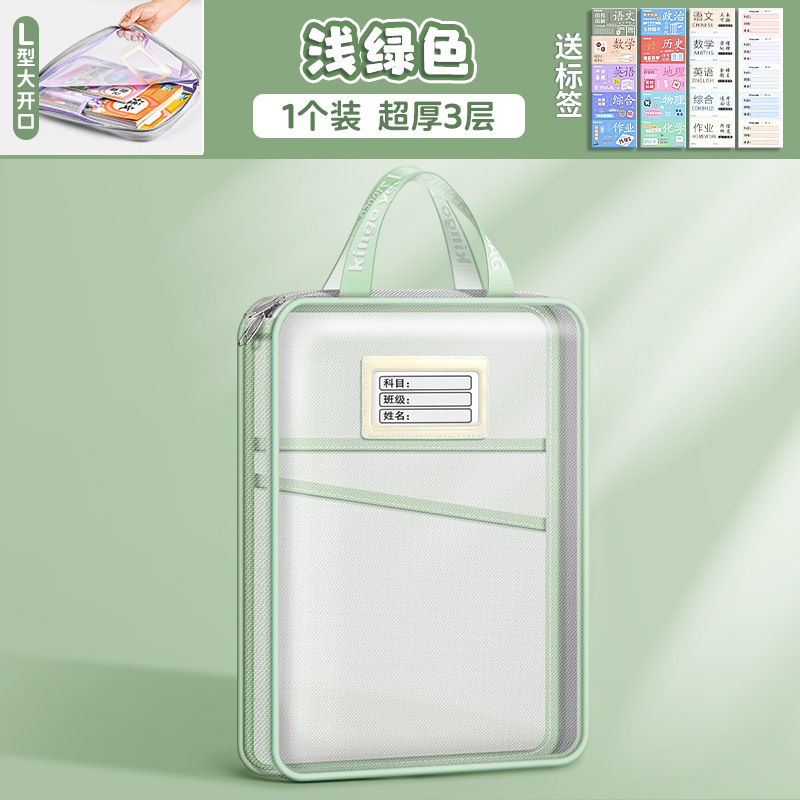 L자형 과목 가방 두꺼운 손잡이 메쉬 파일 가방 A4 투명 학생 책가방 책 보관 가방 시험용