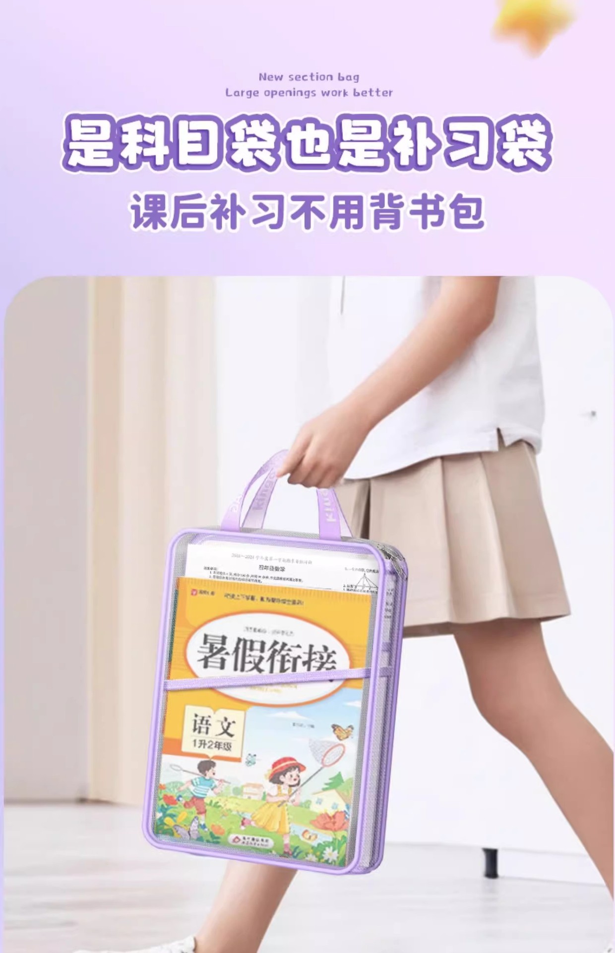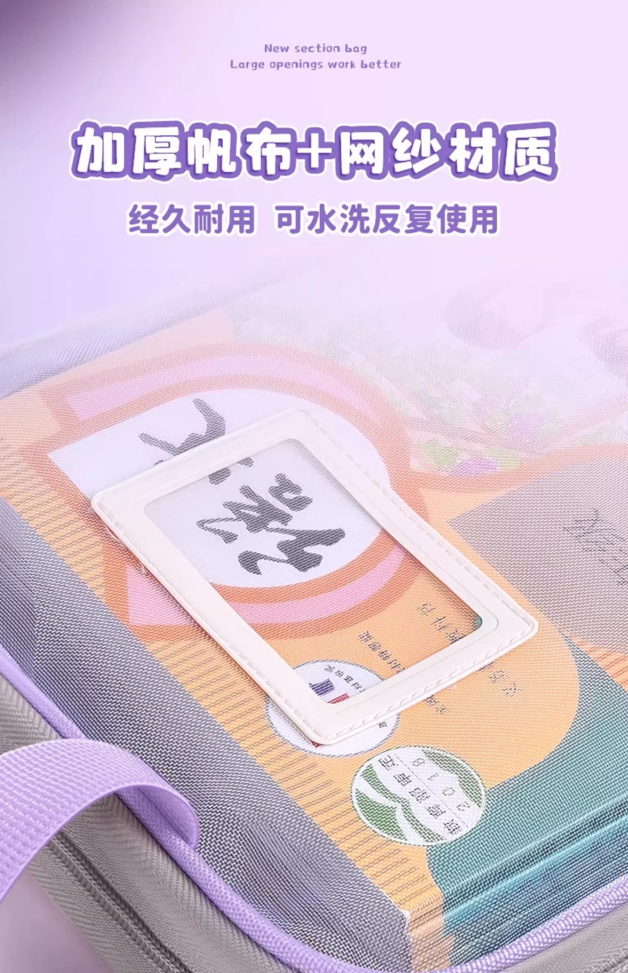 L자형 과목 가방 두꺼운 손잡이 메쉬 파일 가방 A4 투명 학생 책가방 책 보관 가방 시험용스토어 가기