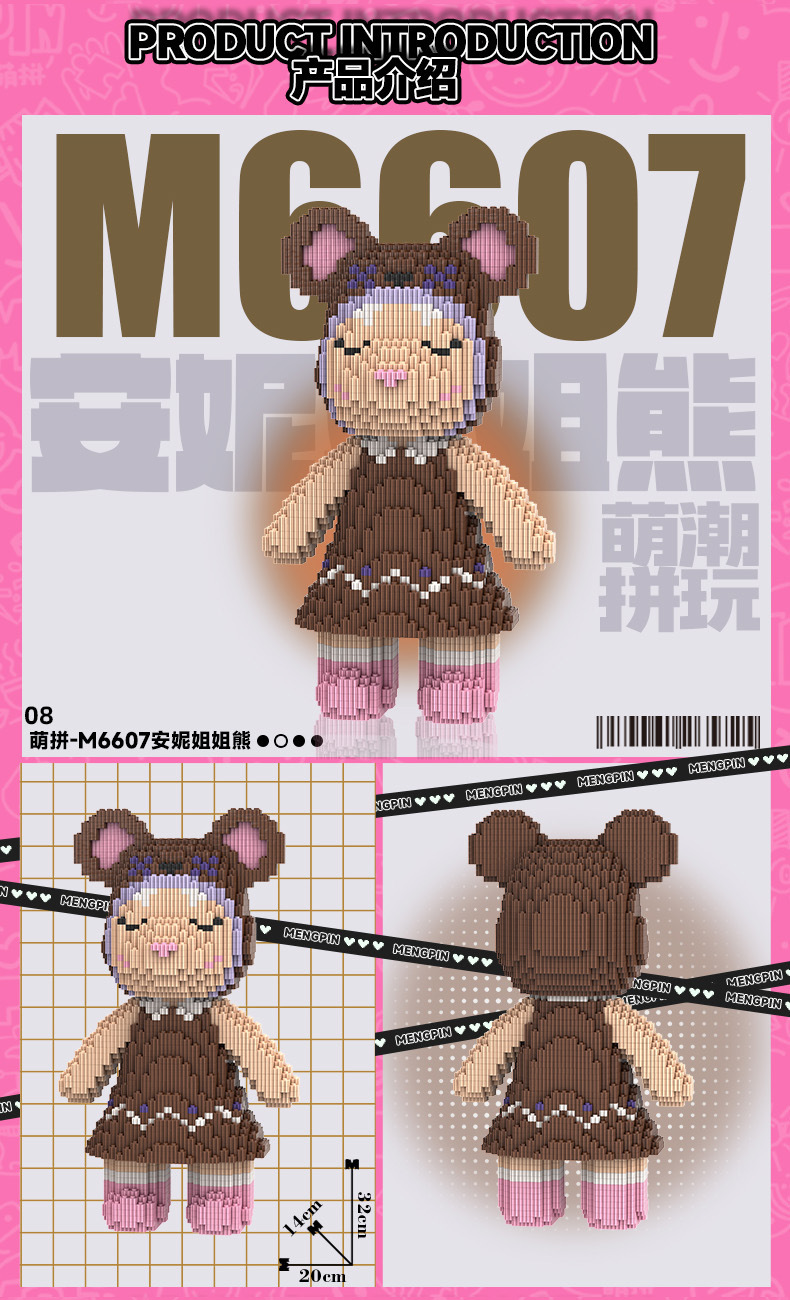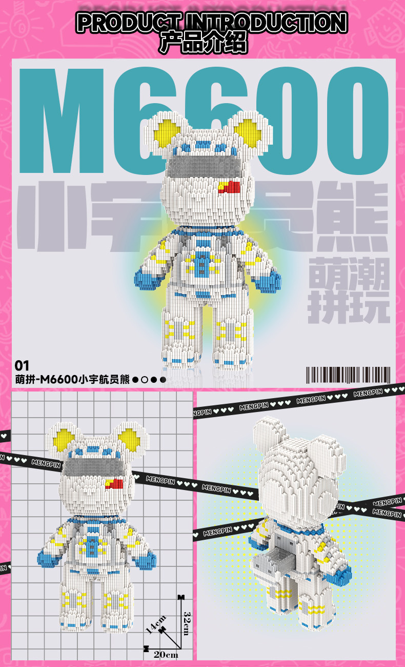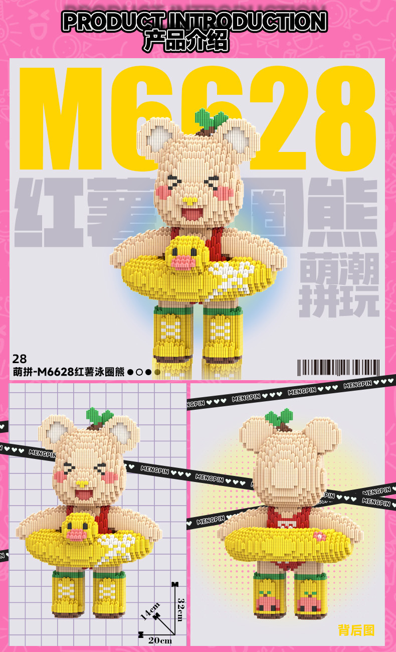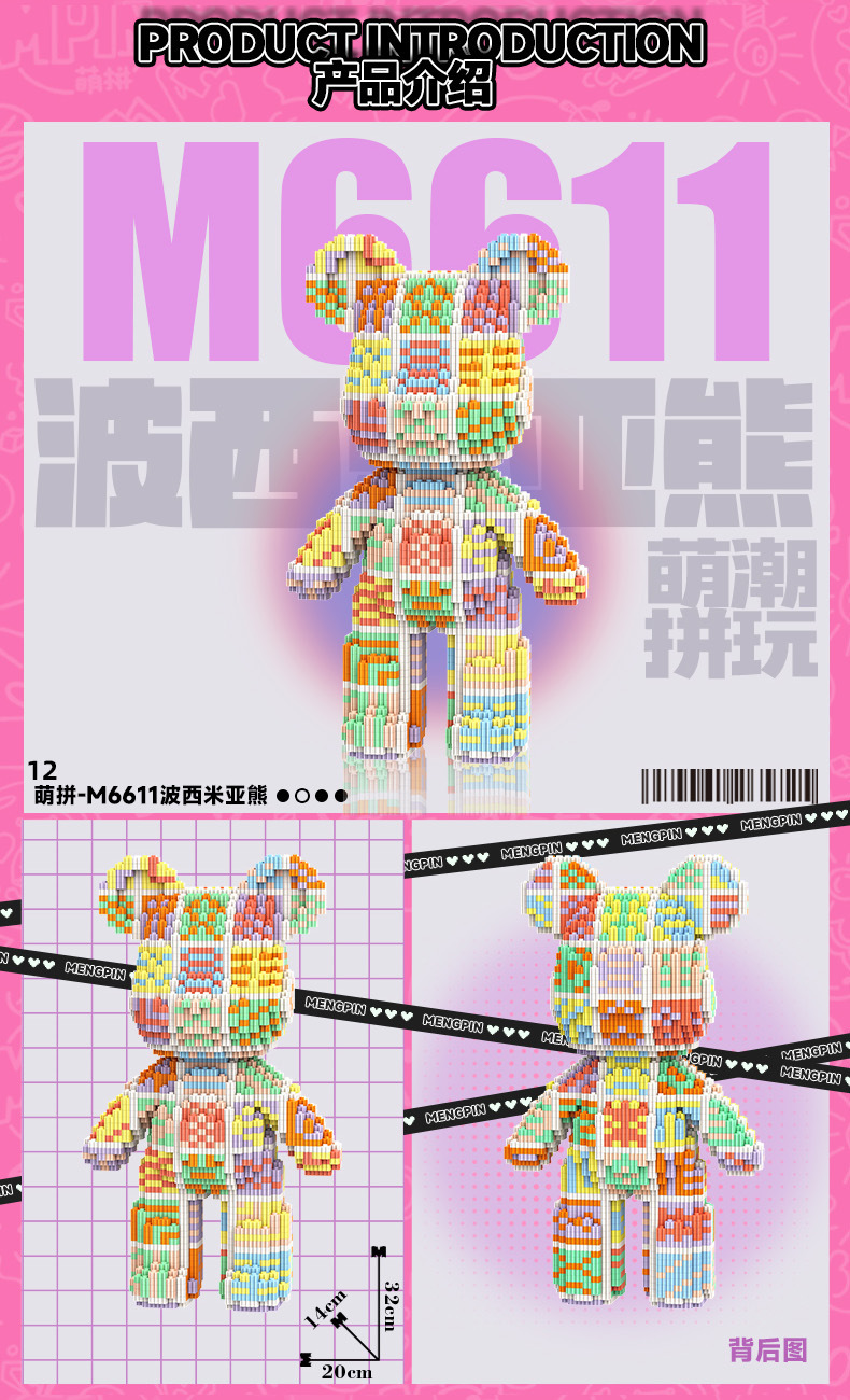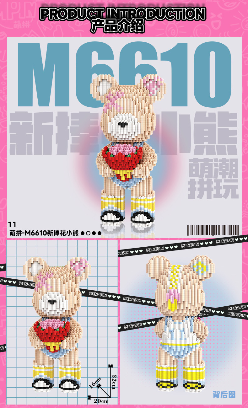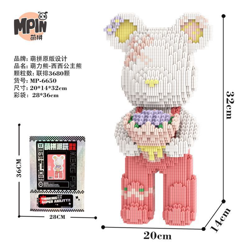 32cm 귀여운 곰돌이 미세 입자 블록 조립 교육용 장난감 소년 소녀 두뇌 자극 선물 창의적 조립
