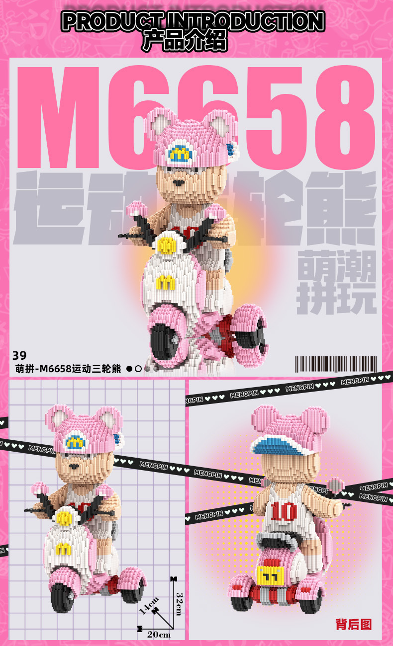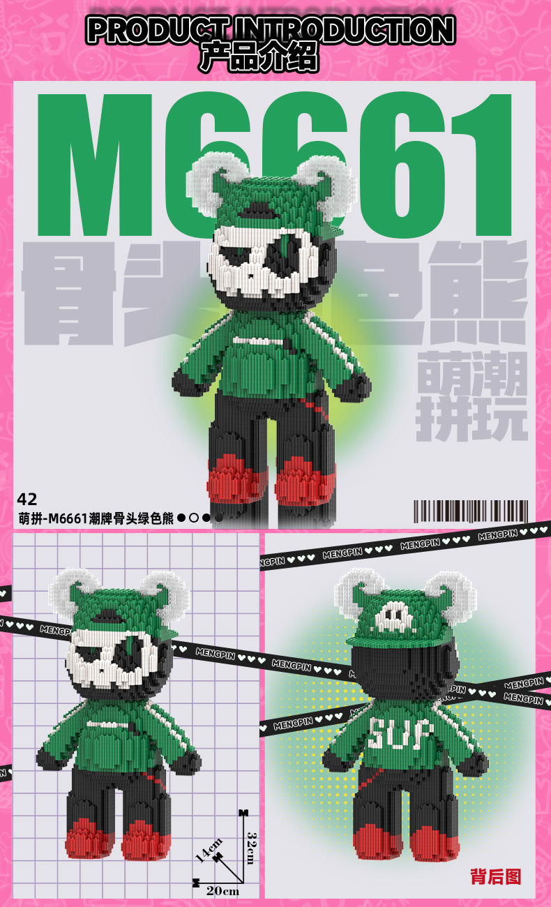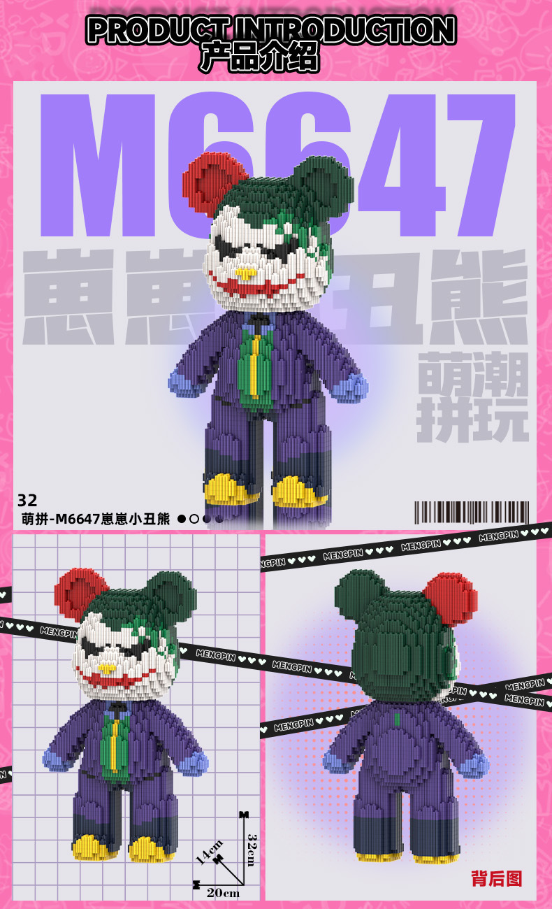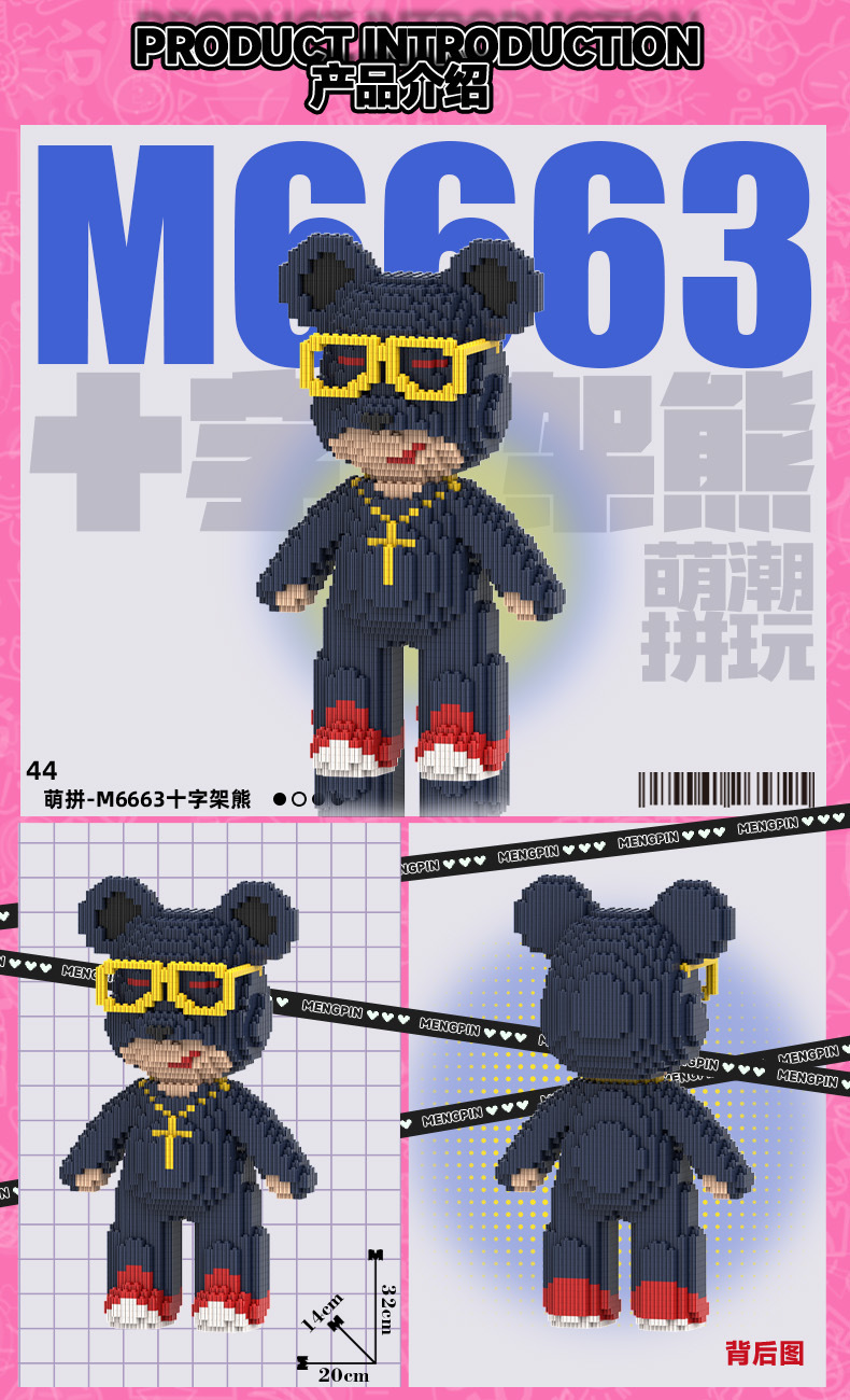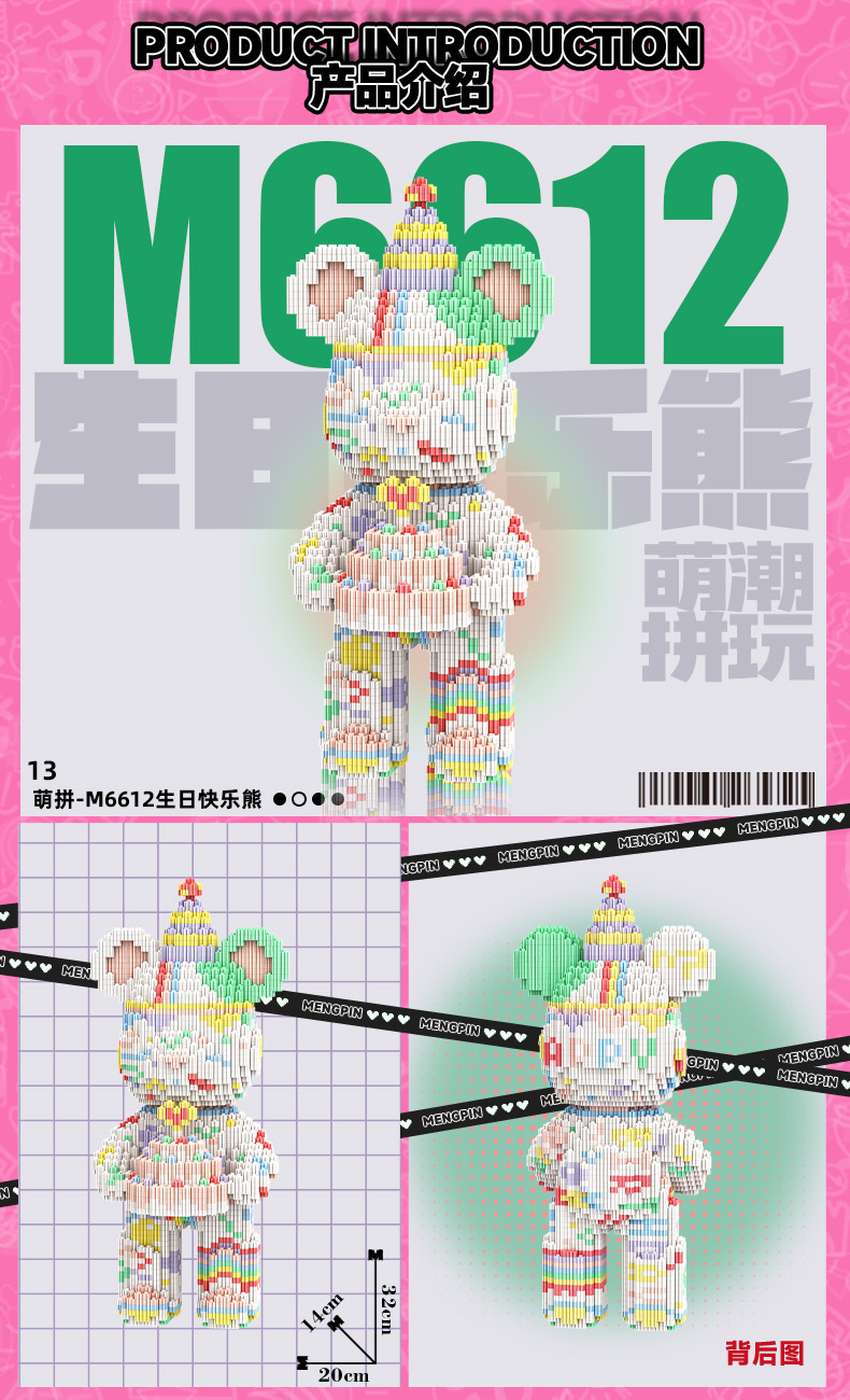 32cm 귀여운 곰돌이 미세 입자 블록 조립 교육용 장난감 소년 소녀 두뇌 자극 선물 창의적 조립