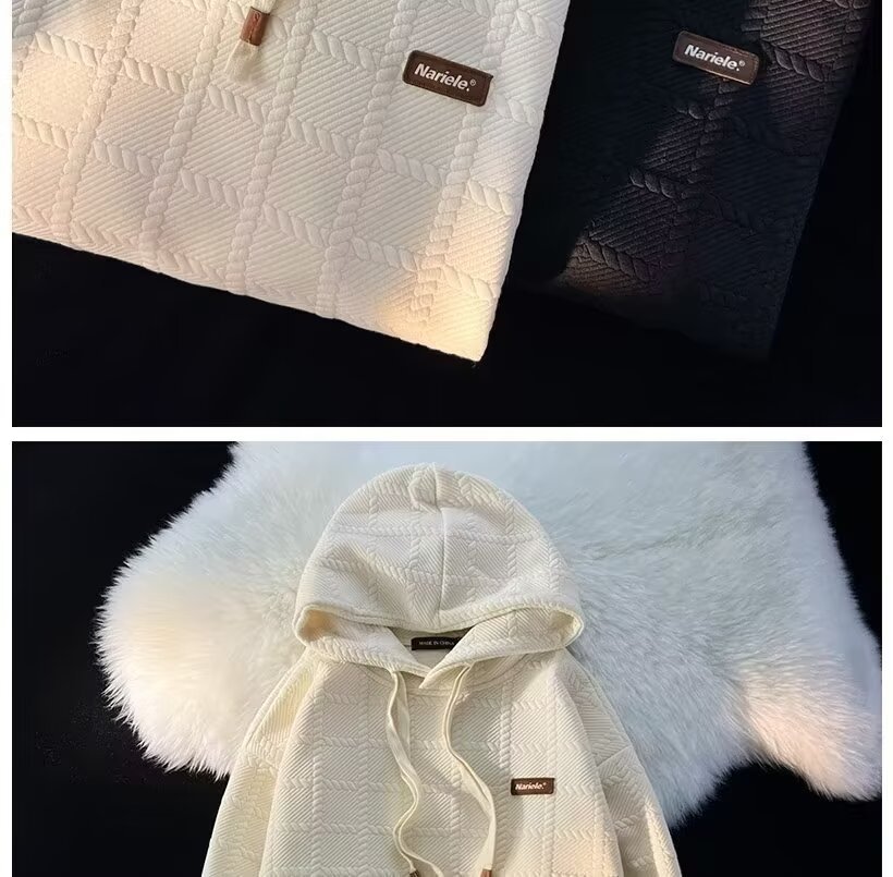 레트로 솔리드 컬러 후드 니트 남성 2024 겨울 새로운 느슨한 간단한 다목적 게으른 스타일 일본식 재킷스토어 가기