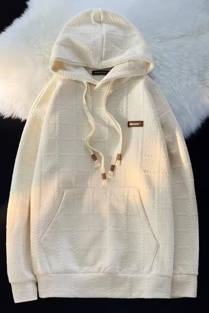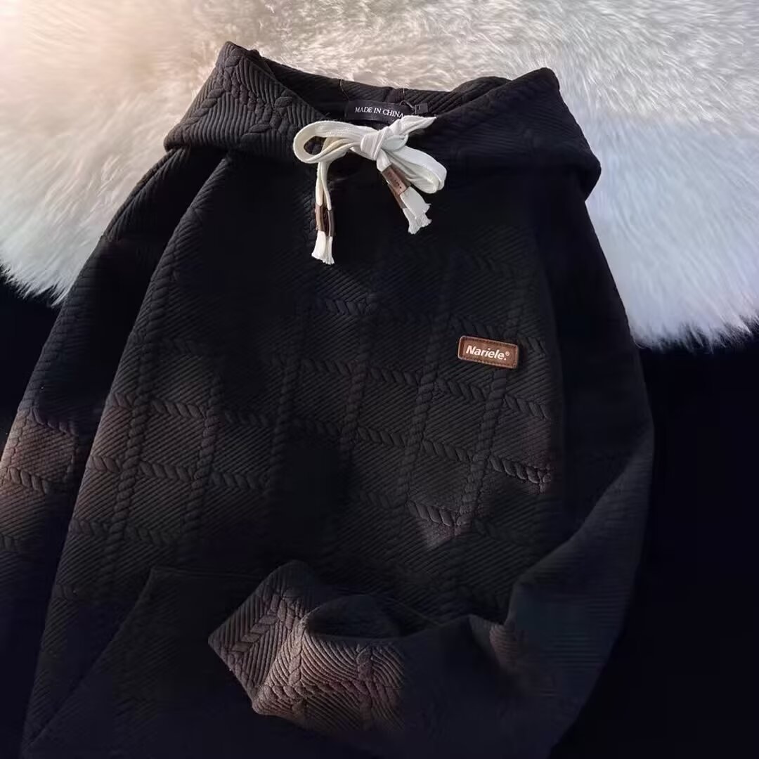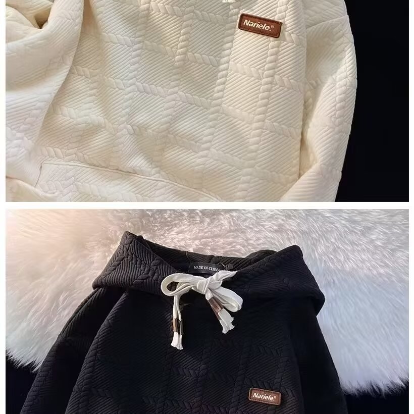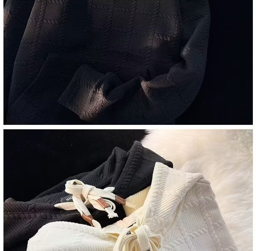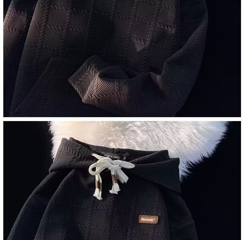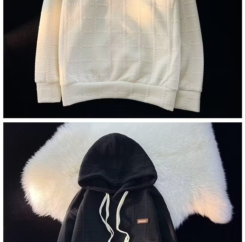 레트로 솔리드 컬러 후드 니트 남성 2024 겨울 새로운 느슨한 간단한 다목적 게으른 스타일 일본식 재킷