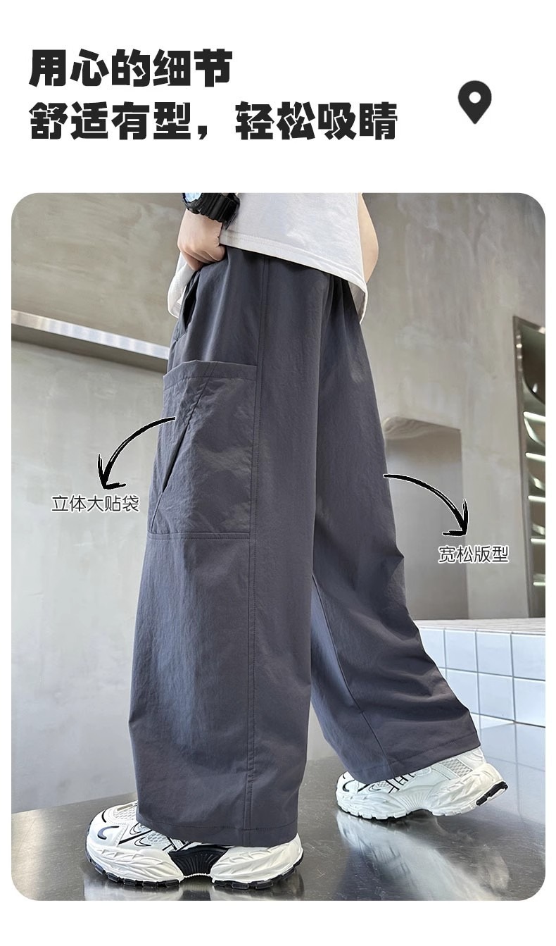 남아용 바지 여름 신상 중대형 아동용 얇은 캐주얼 바지, 세련된 아동용 여름 속건 바지, 작업복 도매