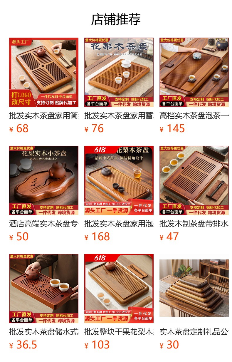 맞춤형 원목 차 트레이, 직사각형 건식 차 트레이, 나무 트레이, 로고 인쇄, 크기 변경 가능, ODM/OEM 나무 트레이스토어 가기