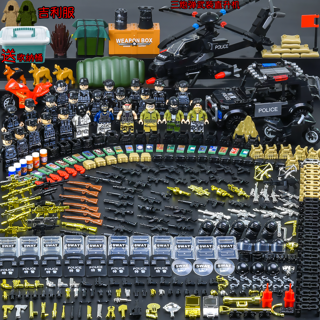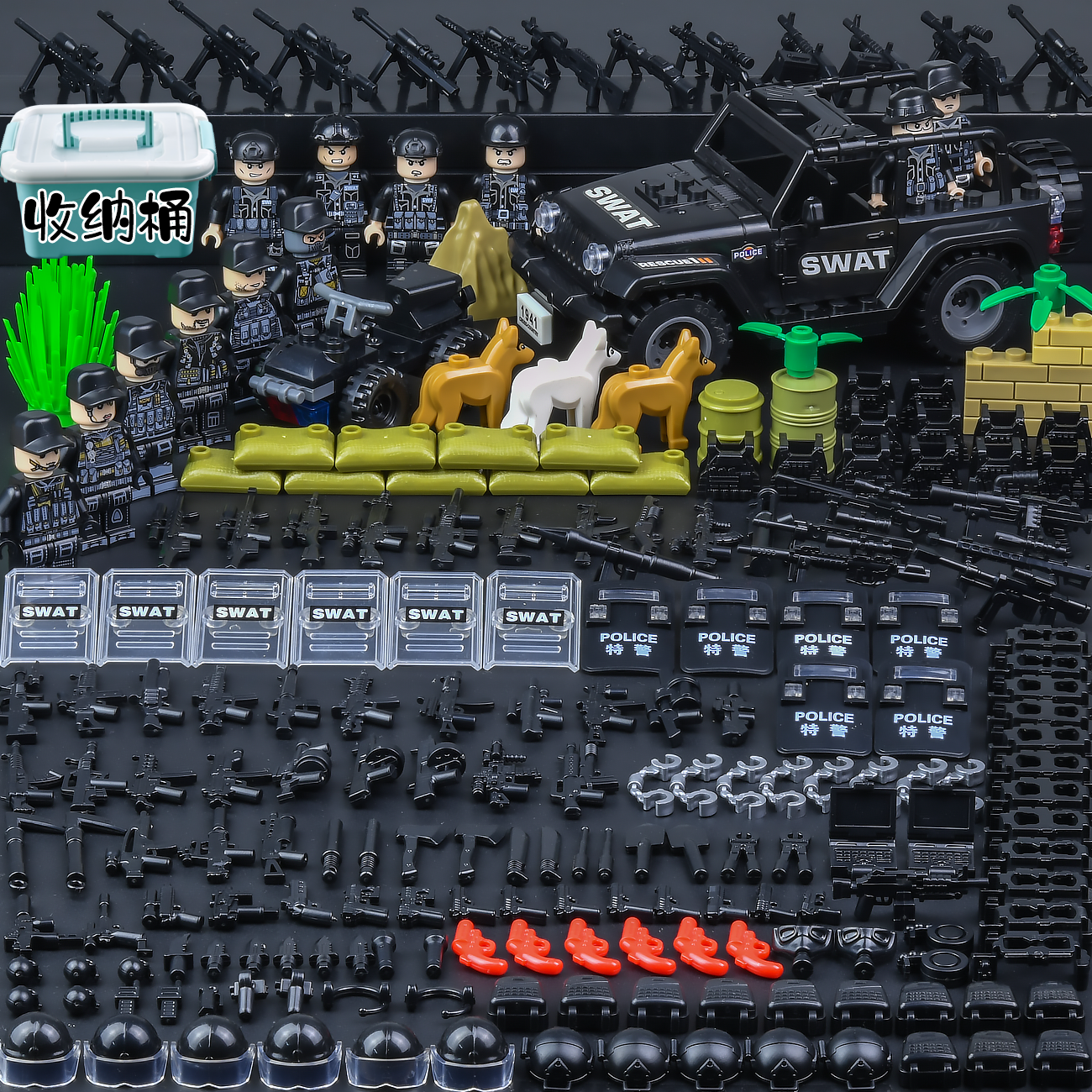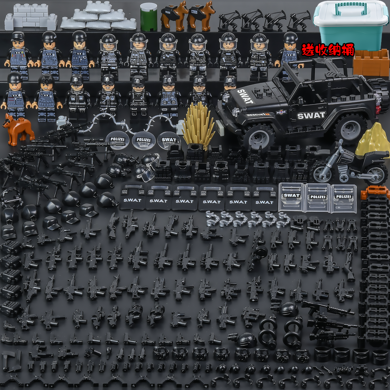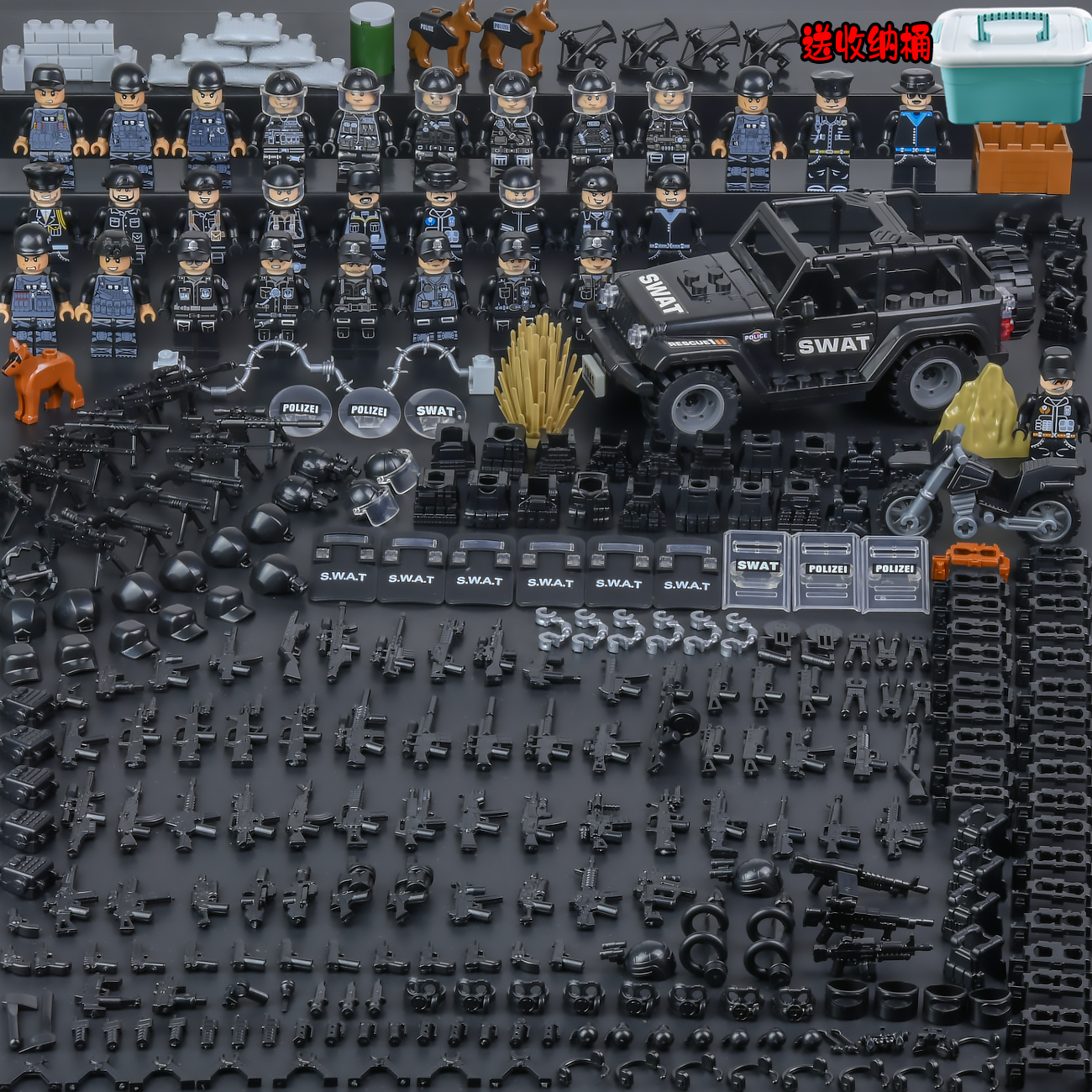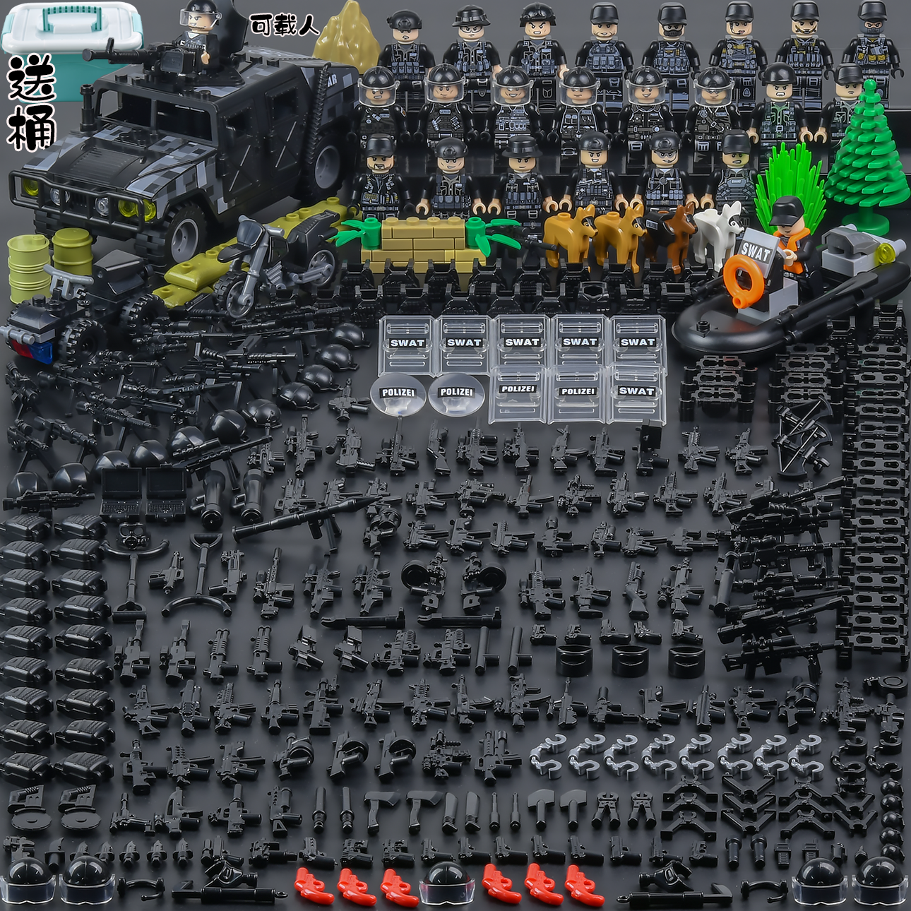 방폭 경찰 피규어 SWAT 무기 총 경찰차 조립 치킨 피규어 소년 교육용 빌딩 블록 장난감