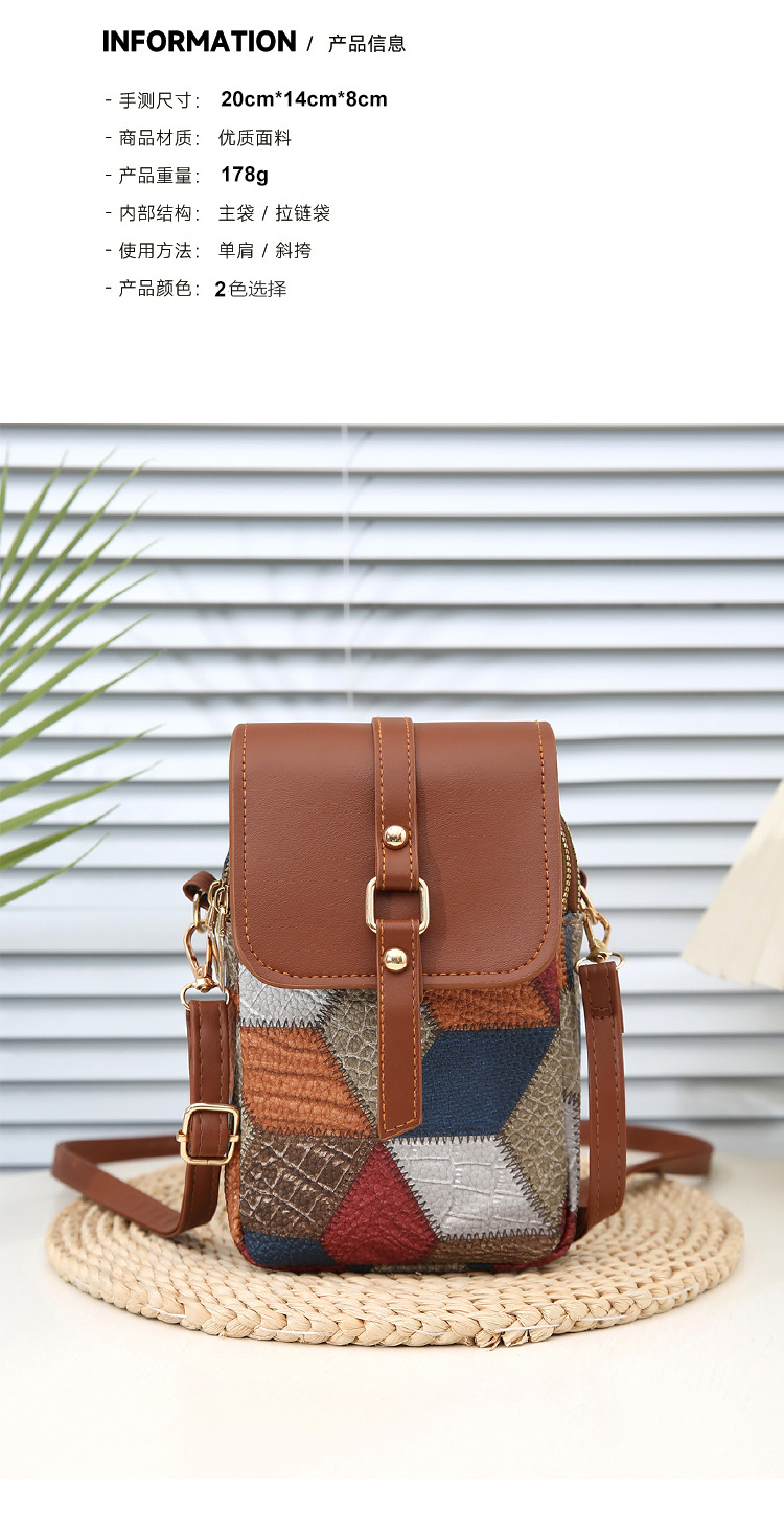 새로운 대비 색상 마름모 크로스 바디 멀티 컴파트먼트 지퍼 휴대 전화 가방 세련된 복고풍 스타일 여성 벨트 버클 동전 지갑스토어 가기