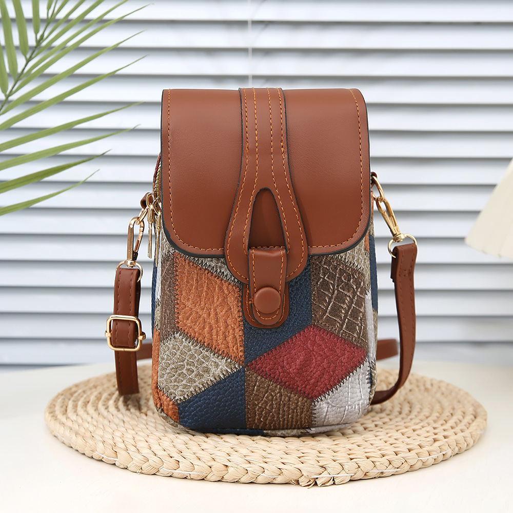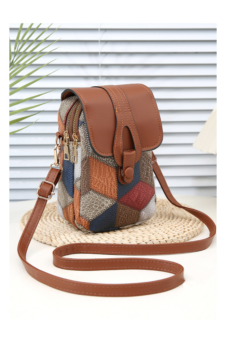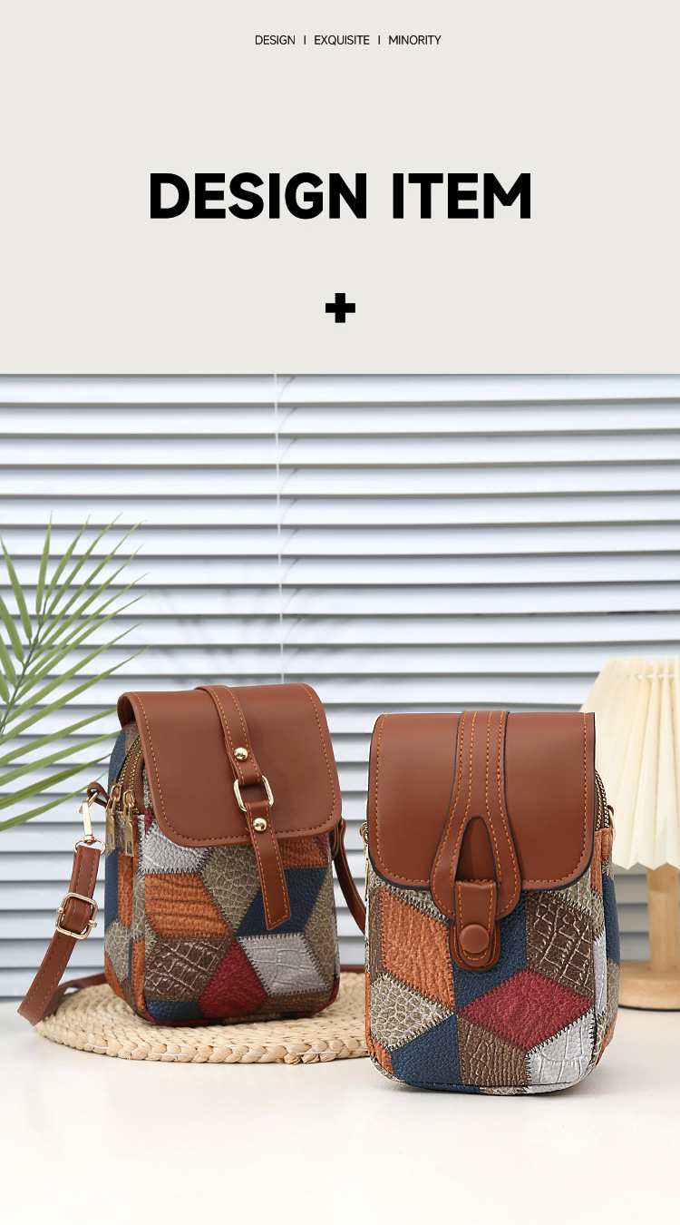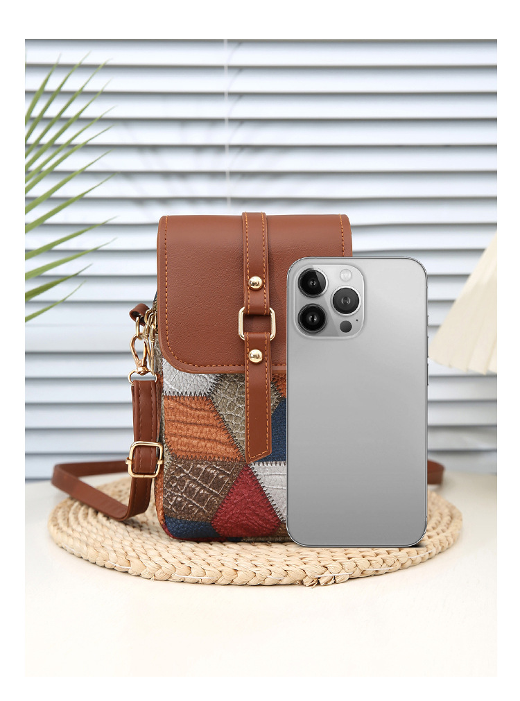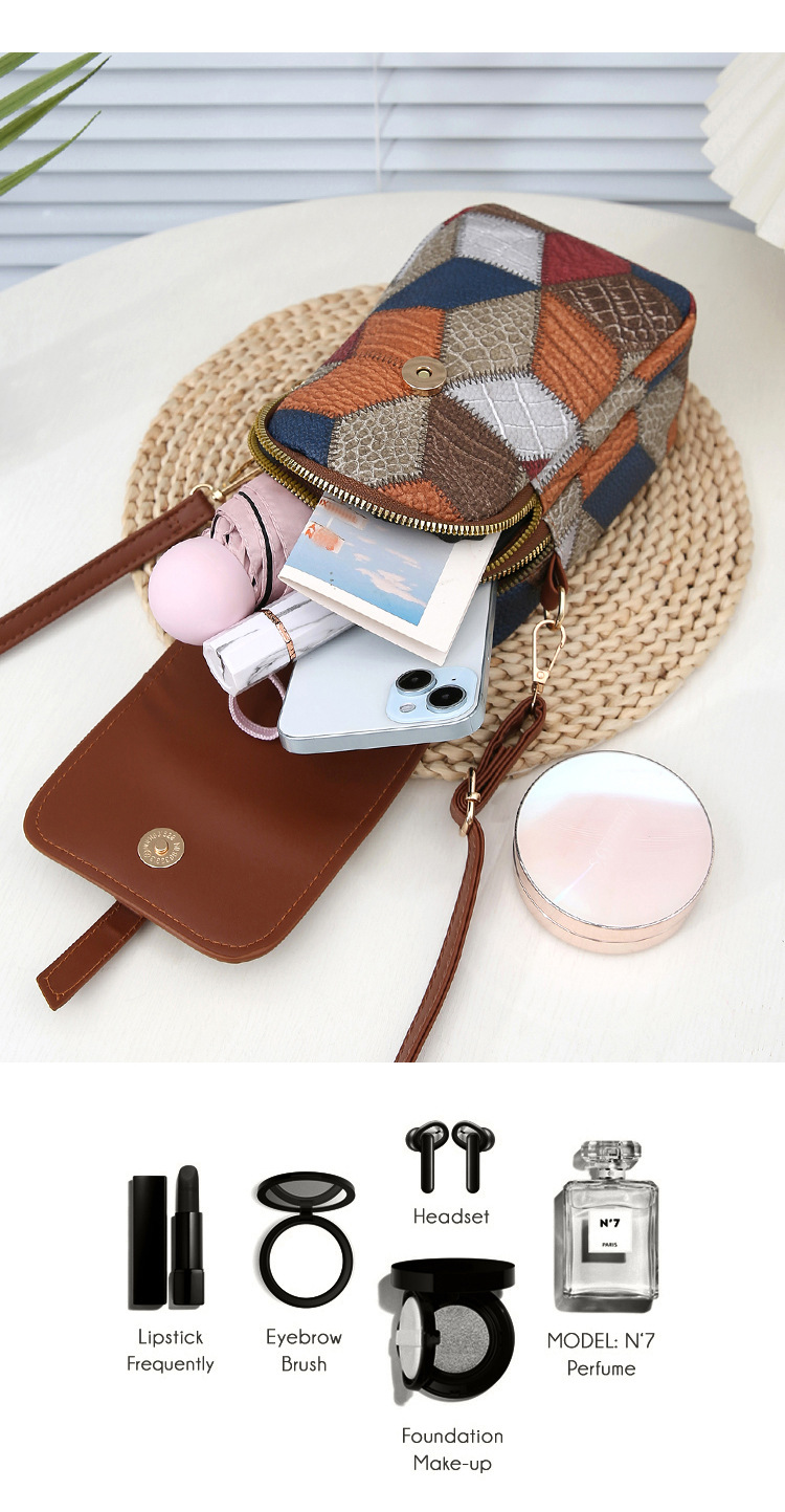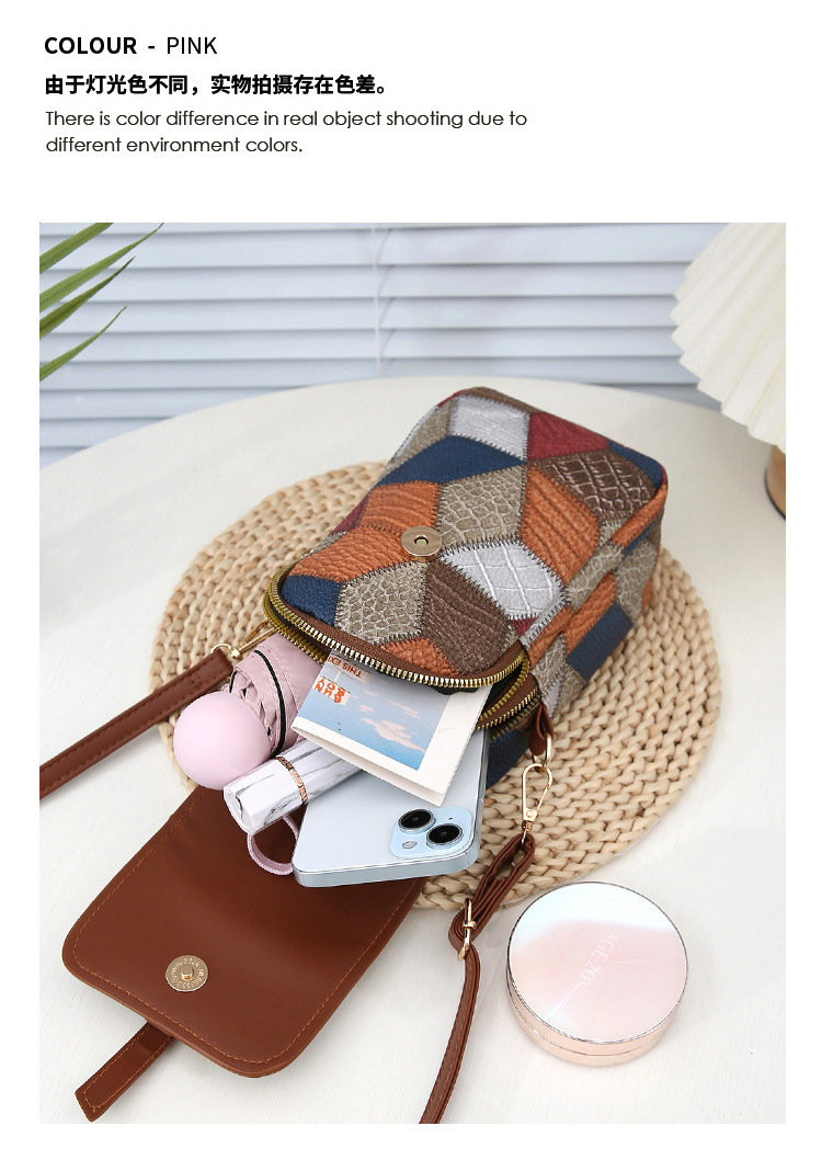 새로운 대비 색상 마름모 크로스 바디 멀티 컴파트먼트 지퍼 휴대 전화 가방 세련된 복고풍 스타일 여성 벨트 버클 동전 지갑