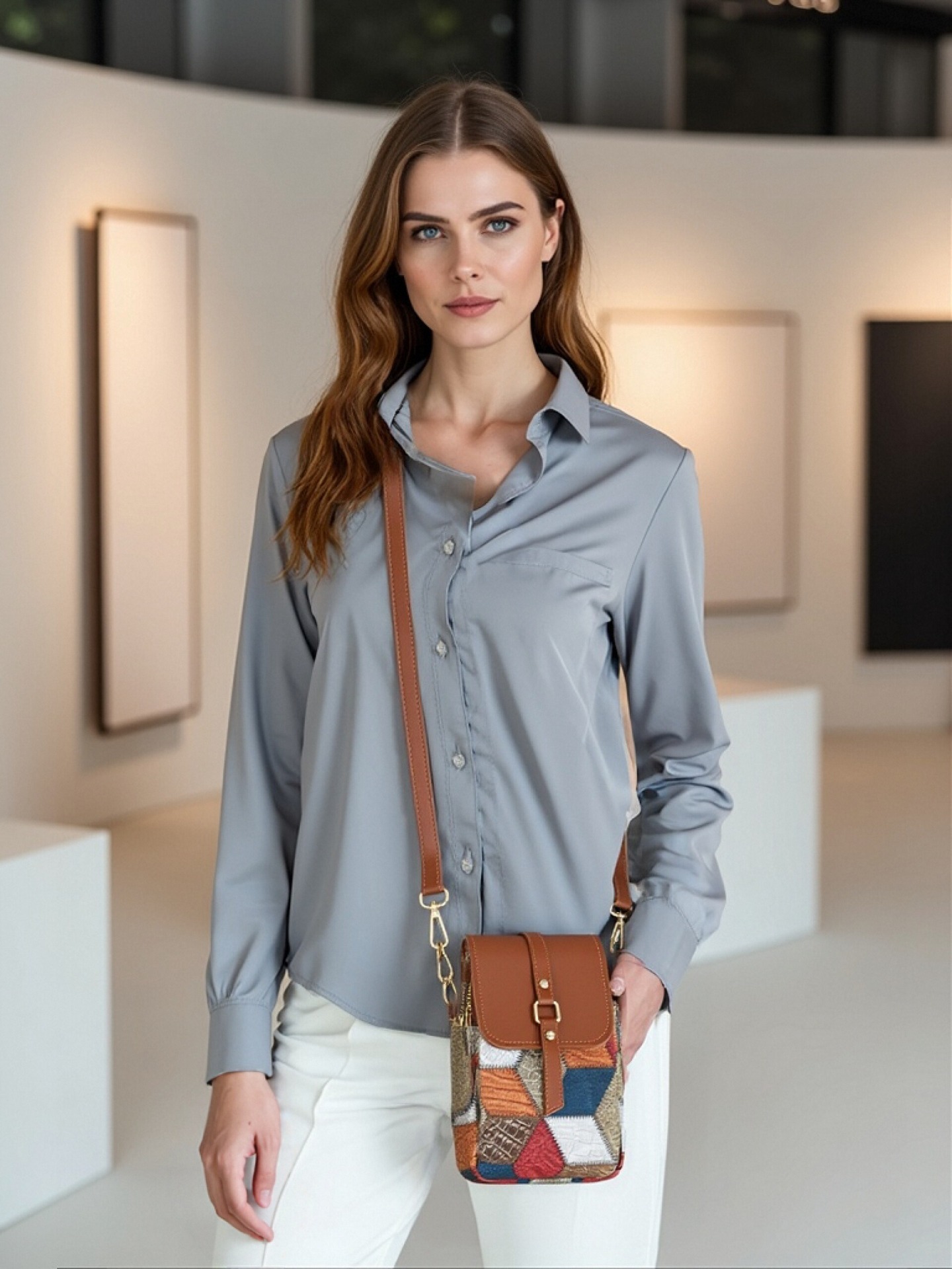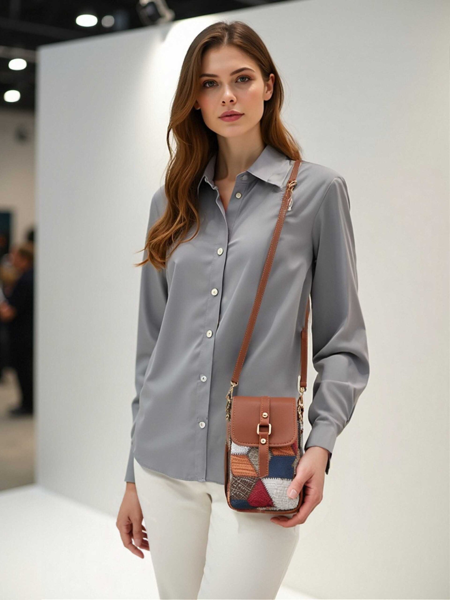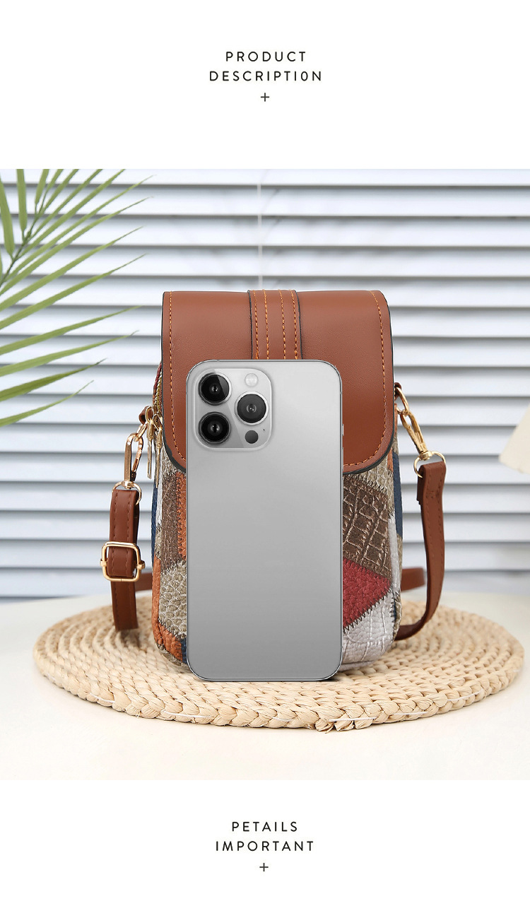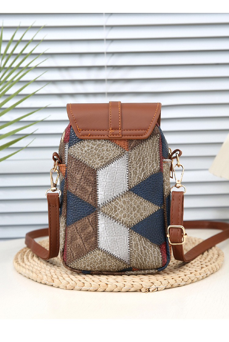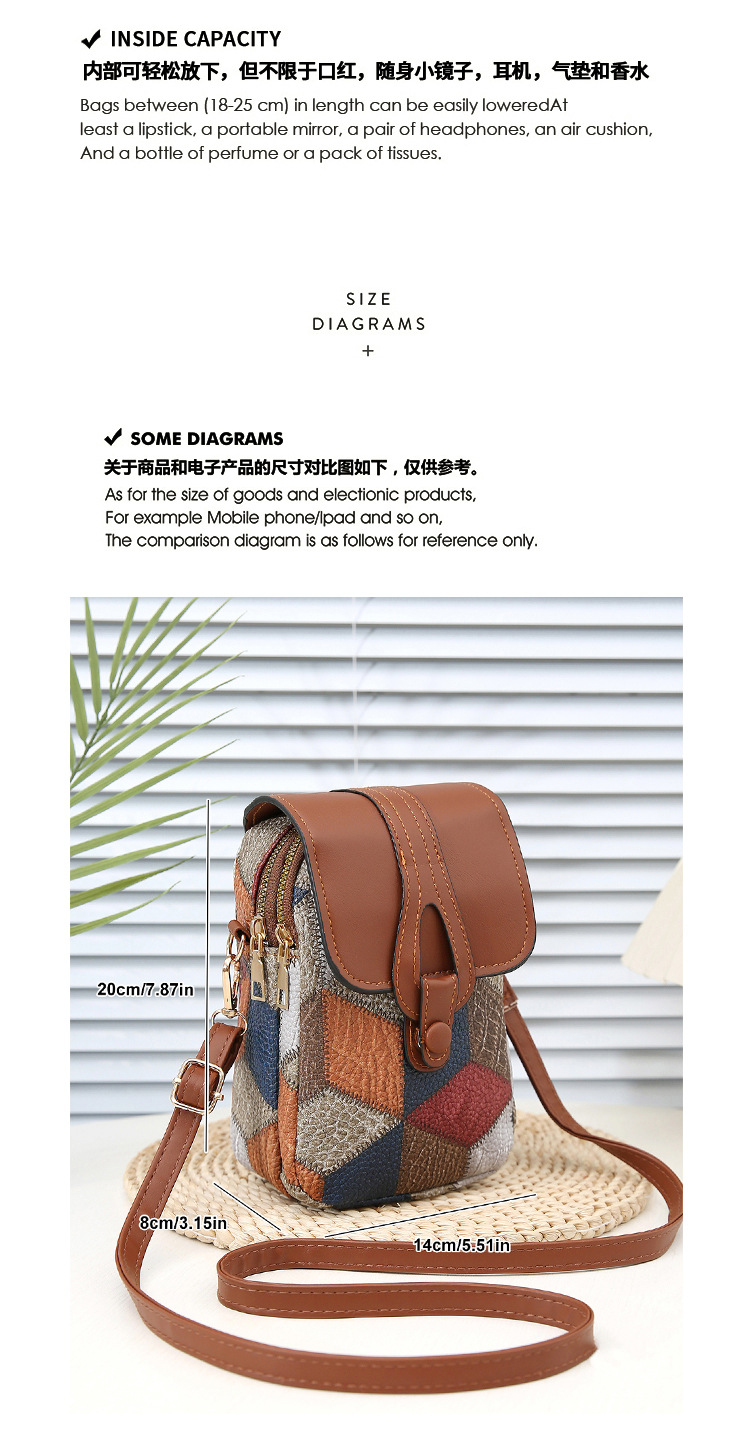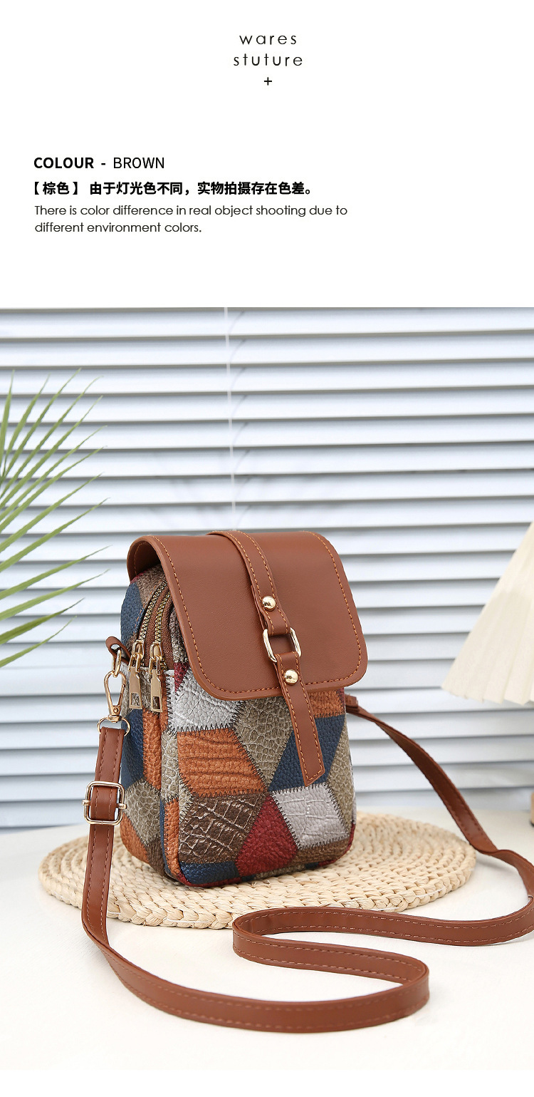 새로운 대비 색상 마름모 크로스 바디 멀티 컴파트먼트 지퍼 휴대 전화 가방 세련된 복고풍 스타일 여성 벨트 버클 동전 지갑
