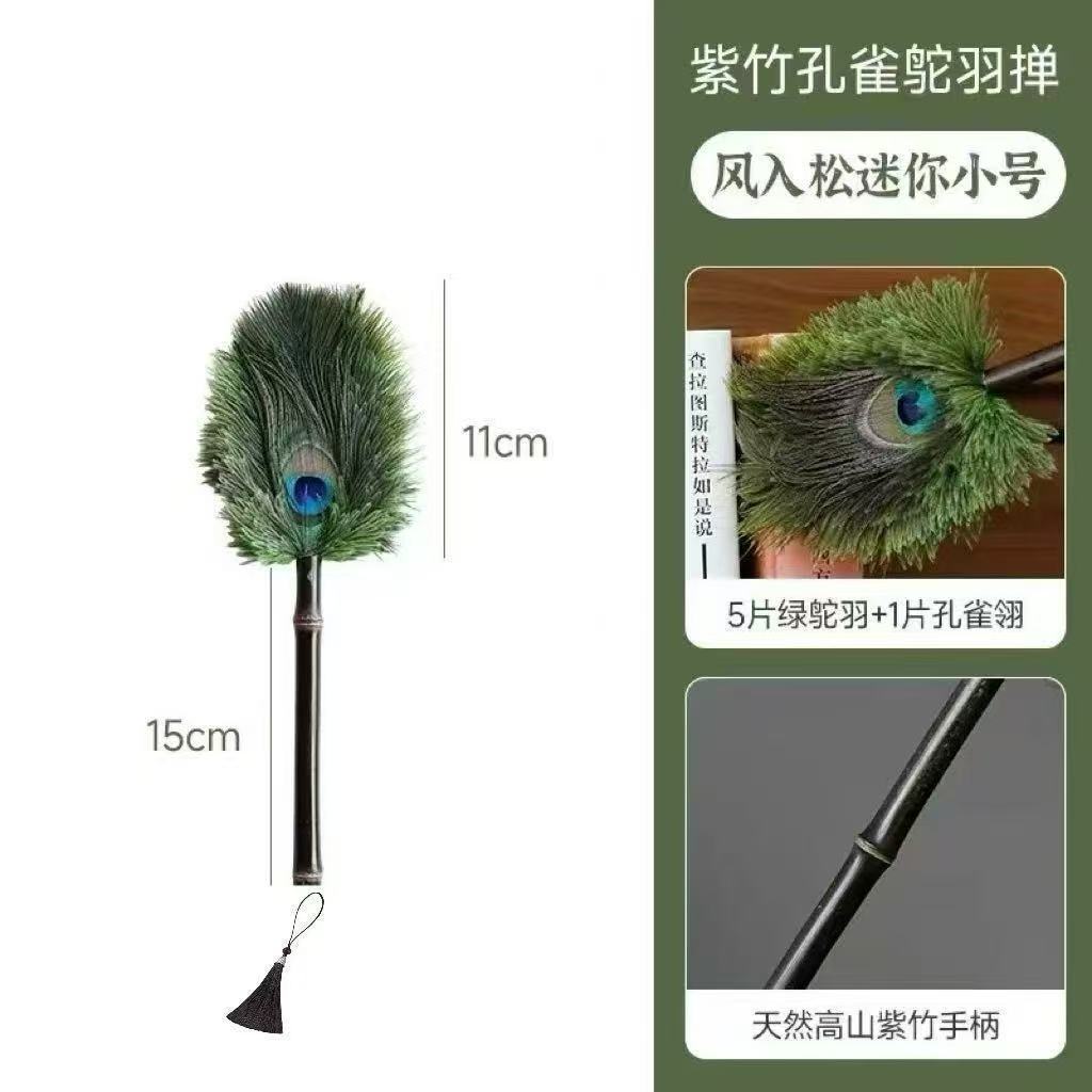 • 보라색 대나무 손잡이가 달린 공작 낙타 깃털 먼지떨이(소형 약 25cm )