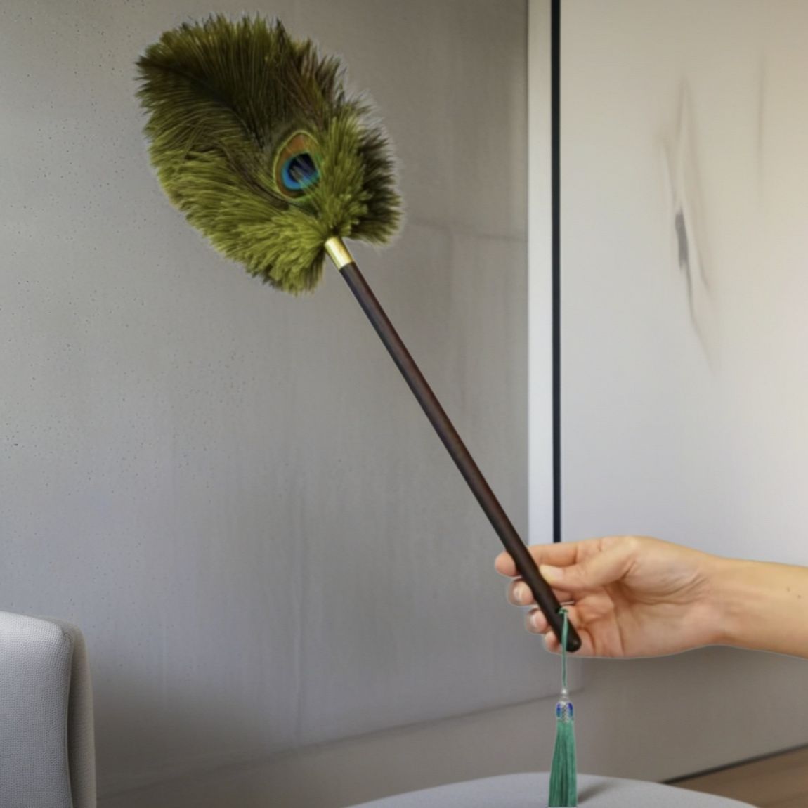 타조 공작 먼지 제거제, 고급 복고풍 정전기 방지 가정용 깃털 먼지 제거제, 암호화된 청소 및 먼지 제거 도구