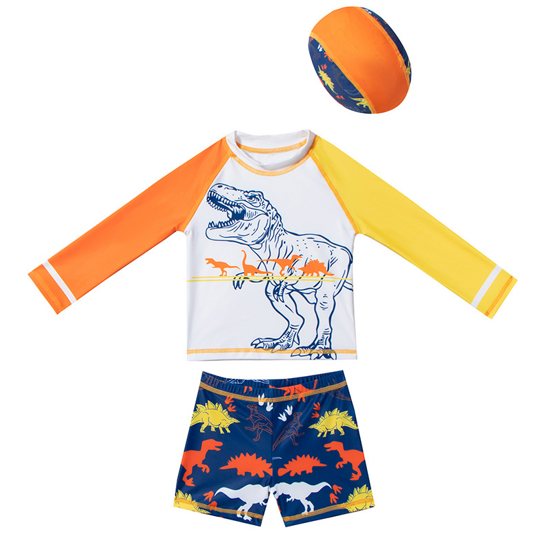 새로운 어린이 수영복 소년 분할 후드 수영복 소형, 중형 및 대형 어린이 전문 온천 해변 수영복 도매