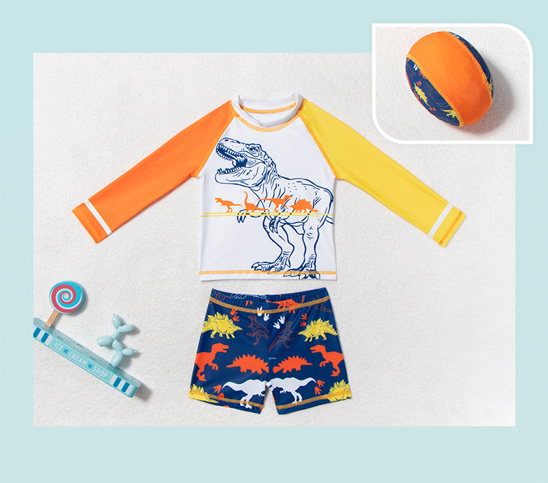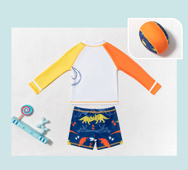 새로운 어린이 수영복 소년 분할 후드 수영복 소형, 중형 및 대형 어린이 전문 온천 해변 수영복 도매스토어 가기