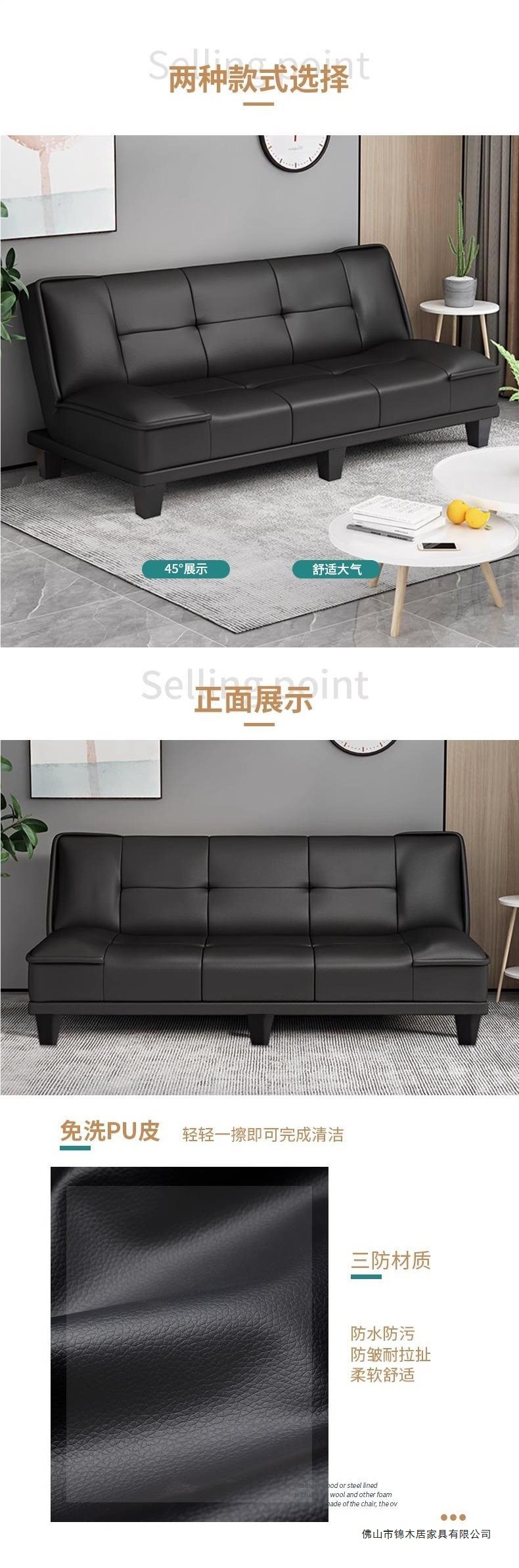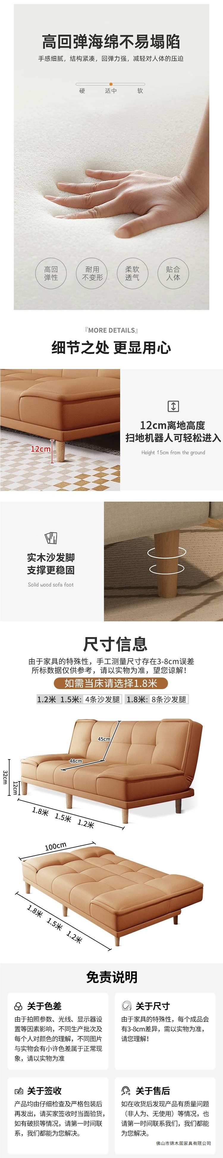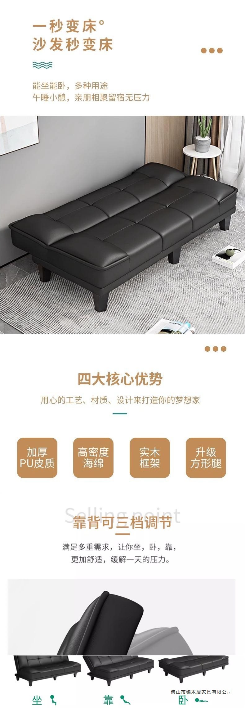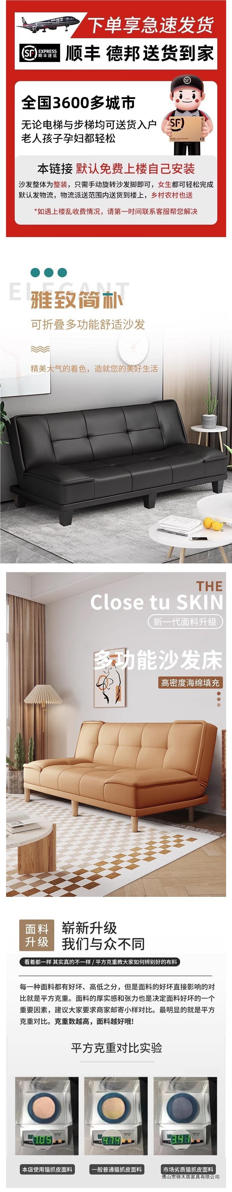 임대 주택 소파 고양이 발톱 가죽 간단한 소파 침대 일체형 이중 용도 작은 아파트 거실 침실 접이식 소파 아파트