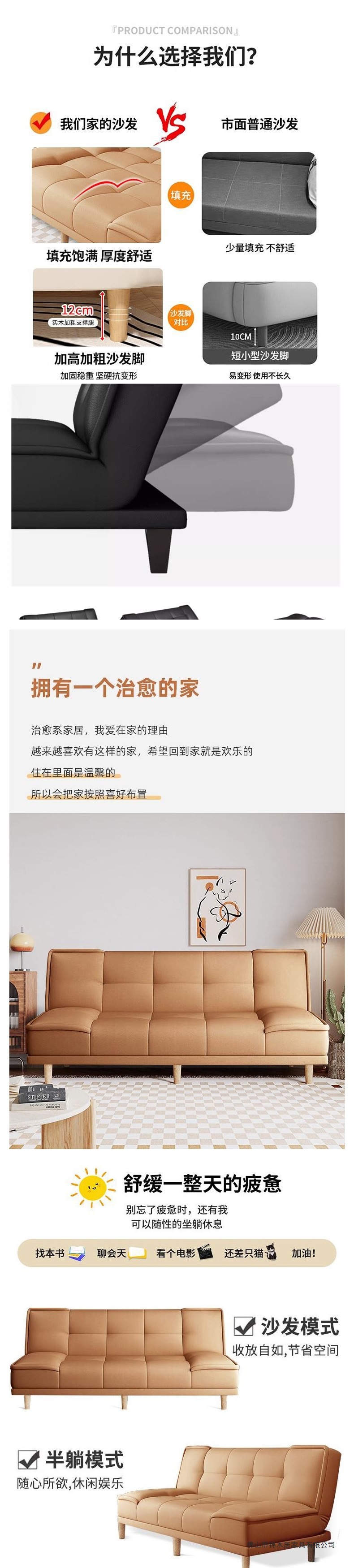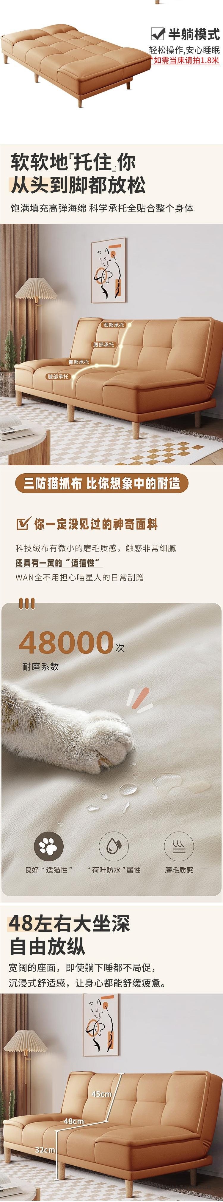 임대 주택 소파 고양이 발톱 가죽 간단한 소파 침대 일체형 이중 용도 작은 아파트 거실 침실 접이식 소파 아파트스토어 가기