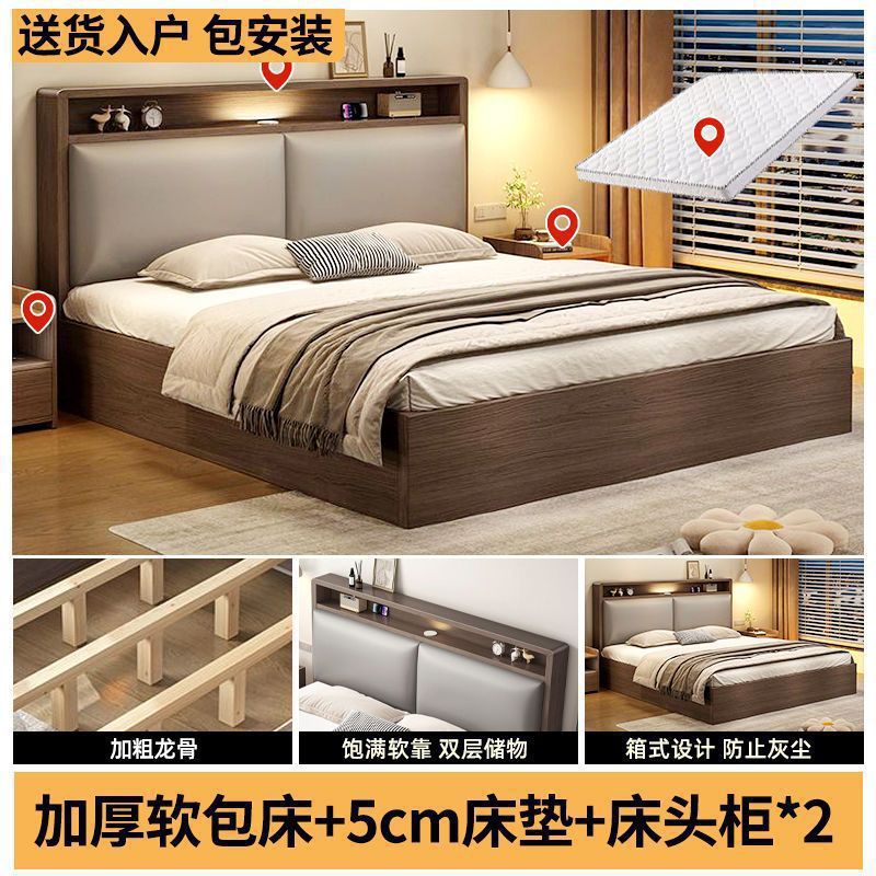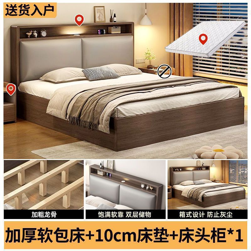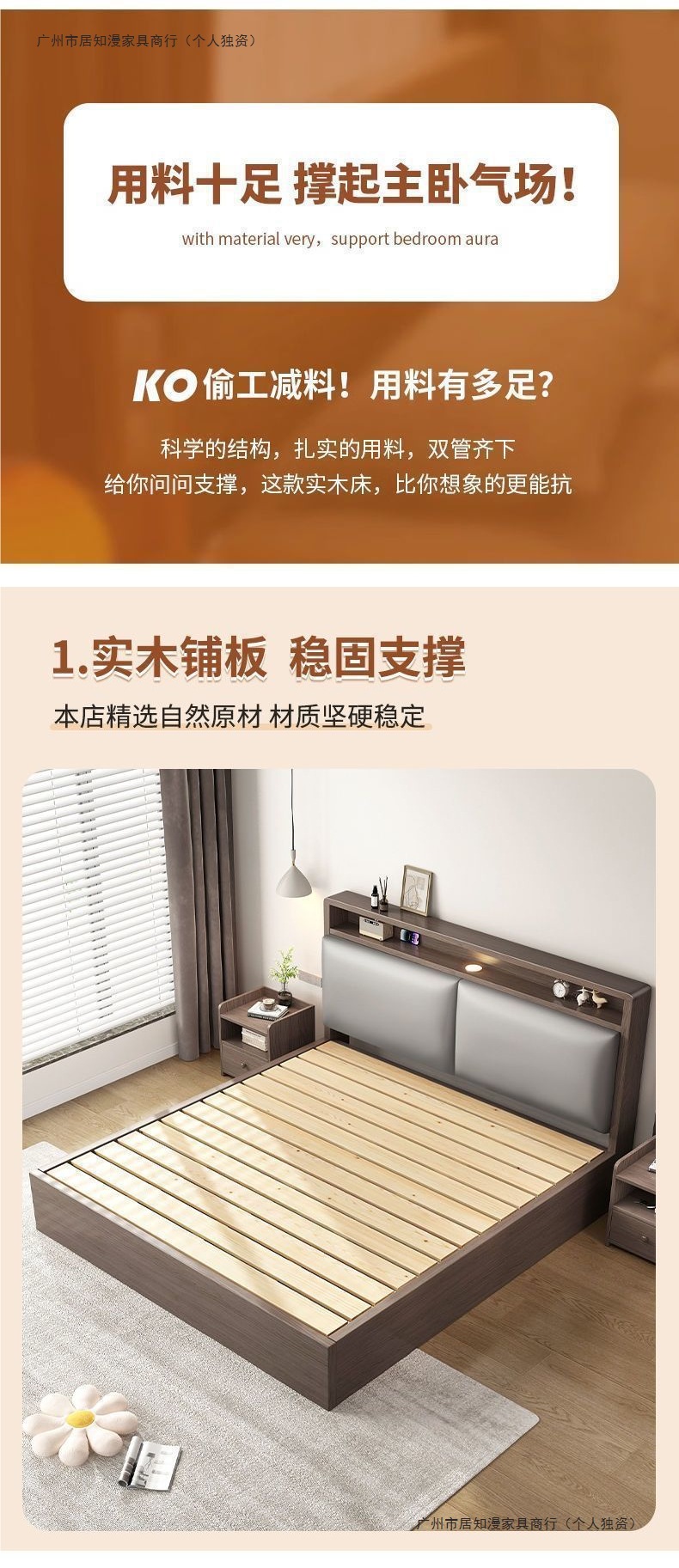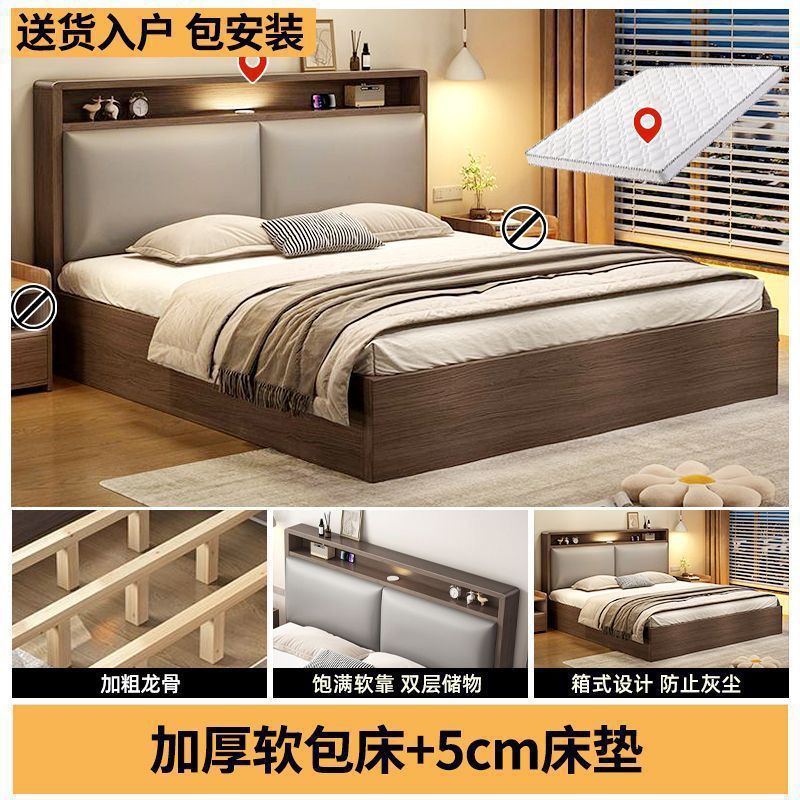 원목 침대 더블 1.8x 2m 마스터 침실 대형 침대 홈 1.5m 소형 아파트 임대 1.2m 수납 싱글 침대