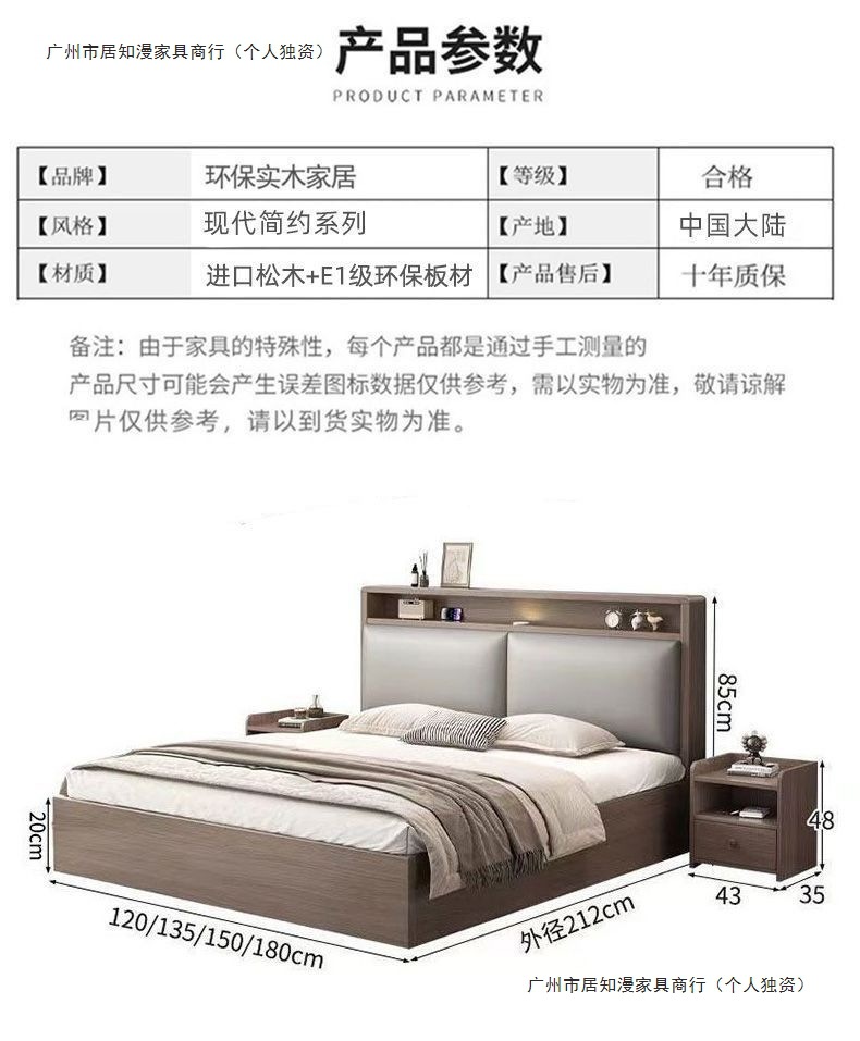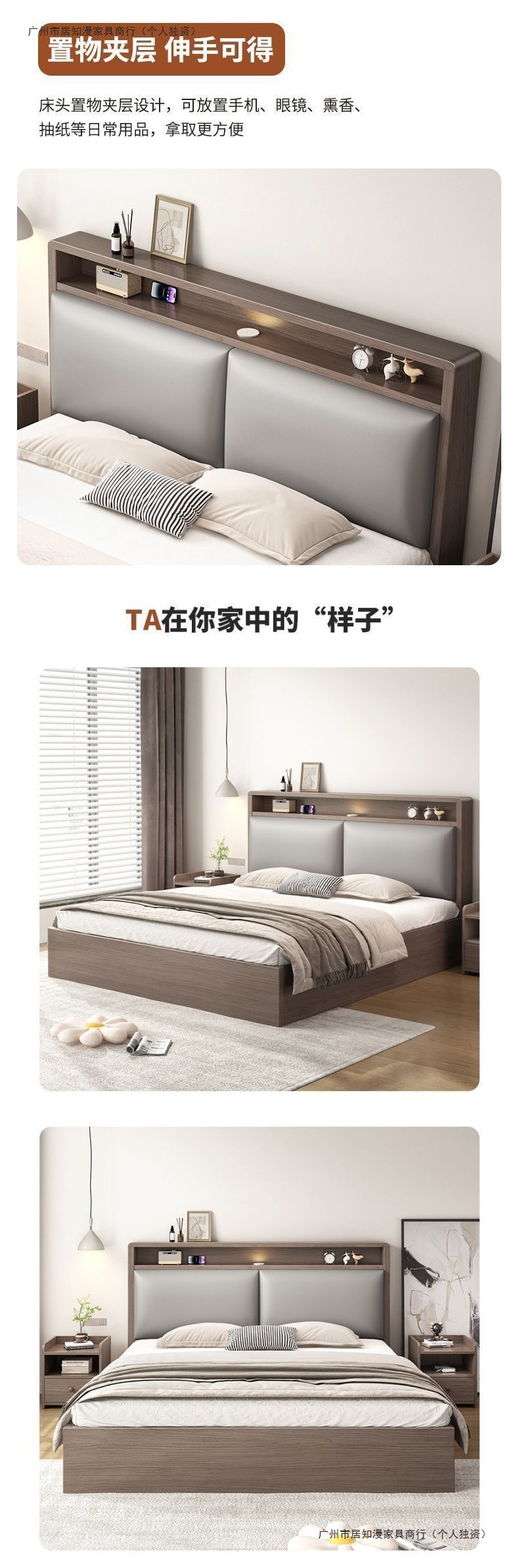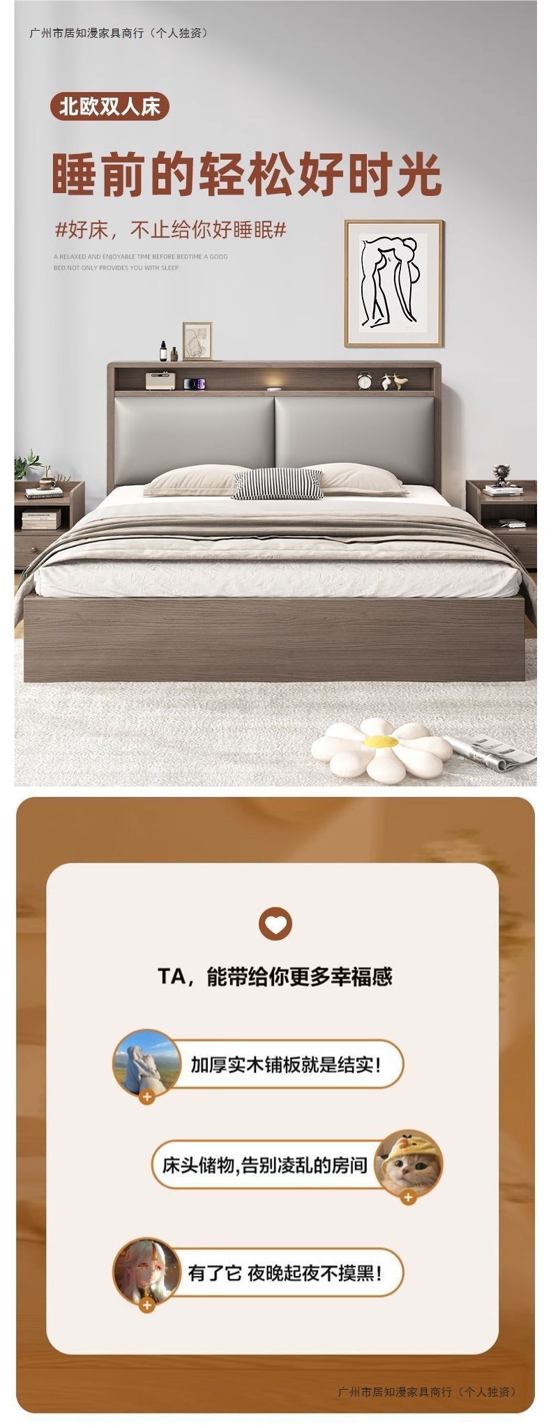 원목 침대 더블 1.8x 2m 마스터 침실 대형 침대 홈 1.5m 소형 아파트 임대 1.2m 수납 싱글 침대