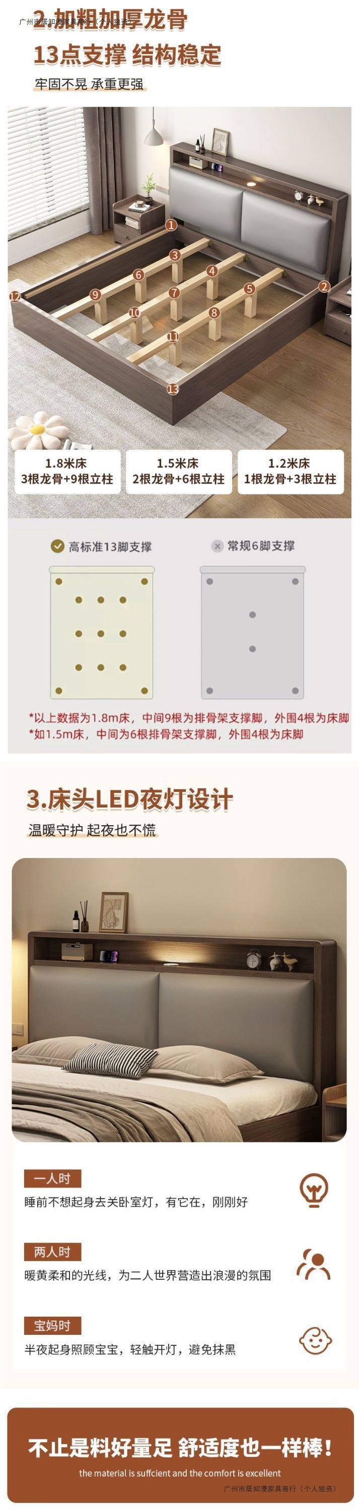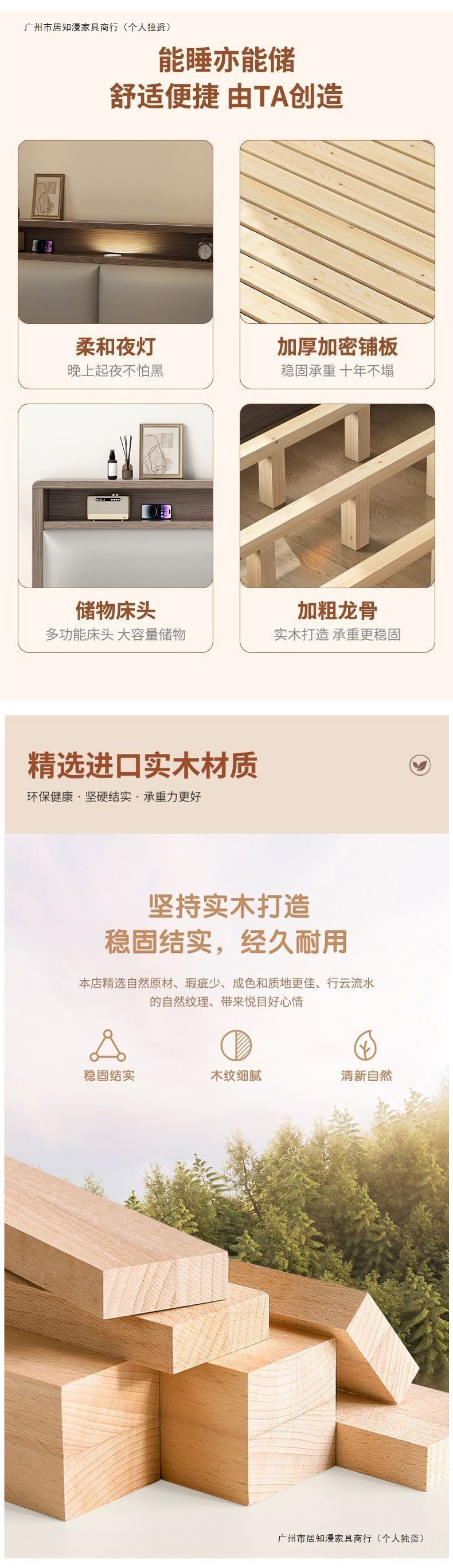원목 침대 더블 1.8x 2m 마스터 침실 대형 침대 홈 1.5m 소형 아파트 임대 1.2m 수납 싱글 침대스토어 가기
