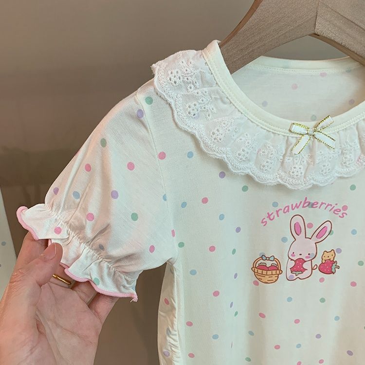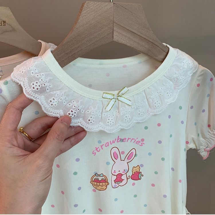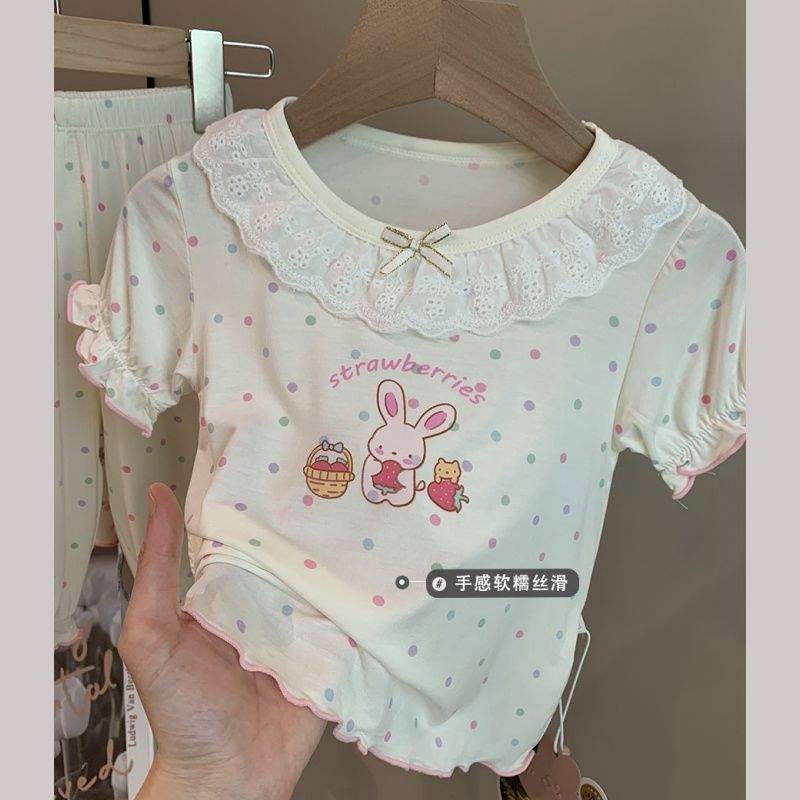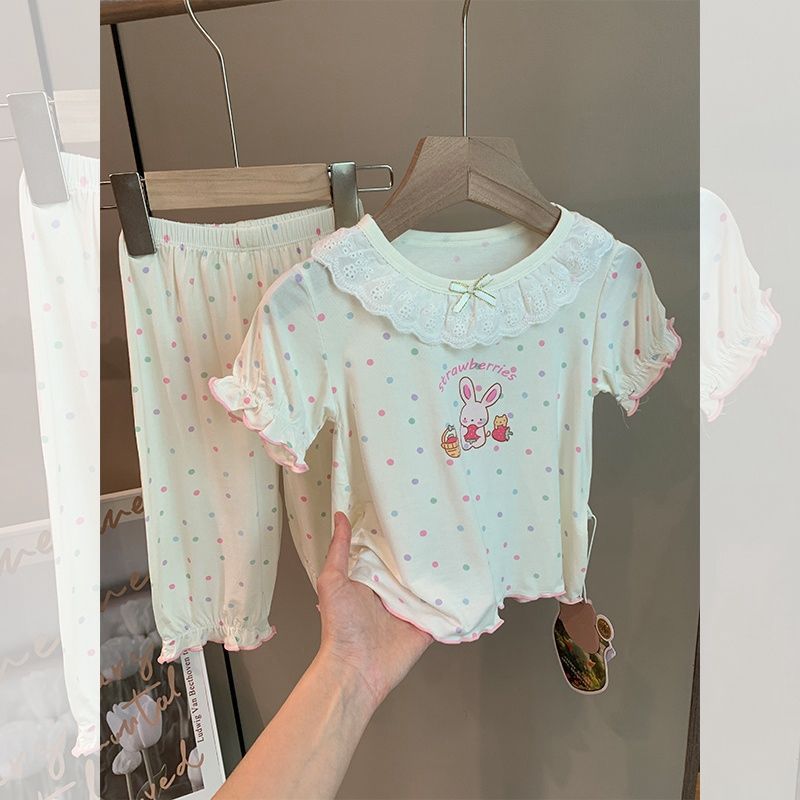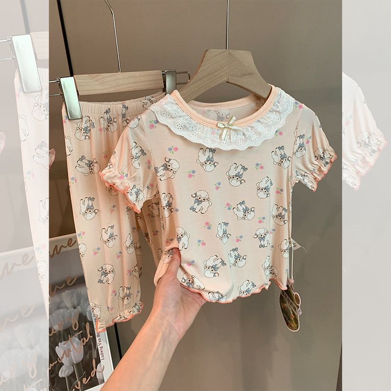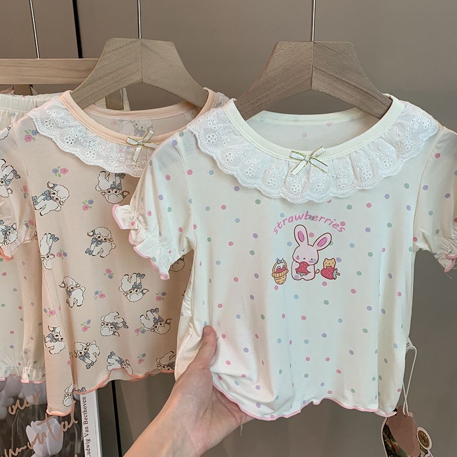 여자 여름 모달 홈 의류 세트 어린 소녀 만화 귀여운 잠옷 어린이 얇은 에어컨 옷스토어 가기