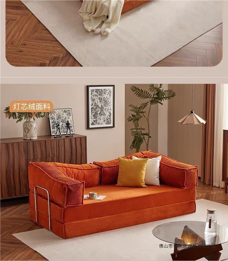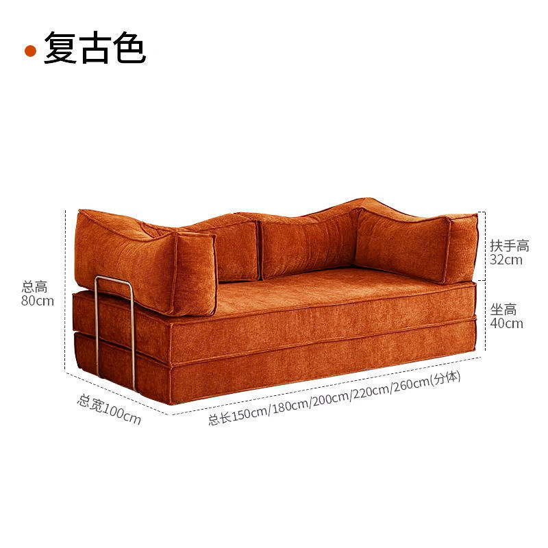 레트로 패브릭 소파 베드 작은 아파트 거실 침실 홈 접이식 및 세탁 가능한 2인용 또는 3인용 모듈 소파스토어 가기