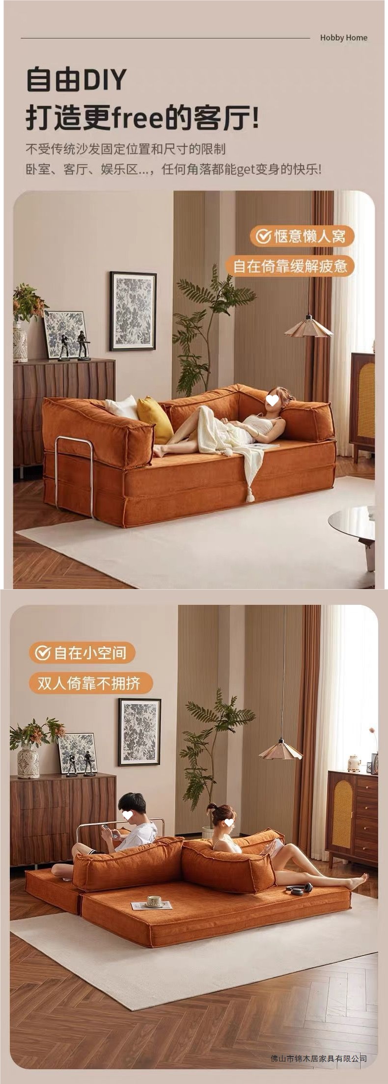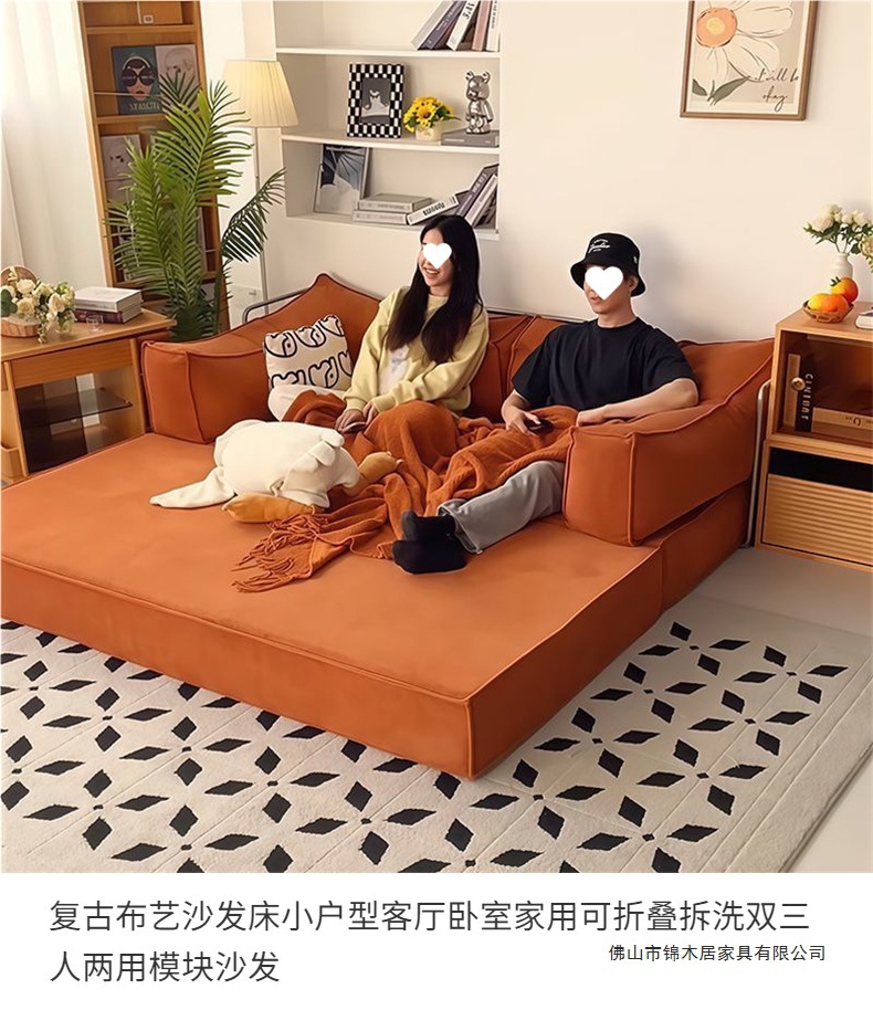 레트로 패브릭 소파 베드 작은 아파트 거실 침실 홈 접이식 및 세탁 가능한 2인용 또는 3인용 모듈 소파