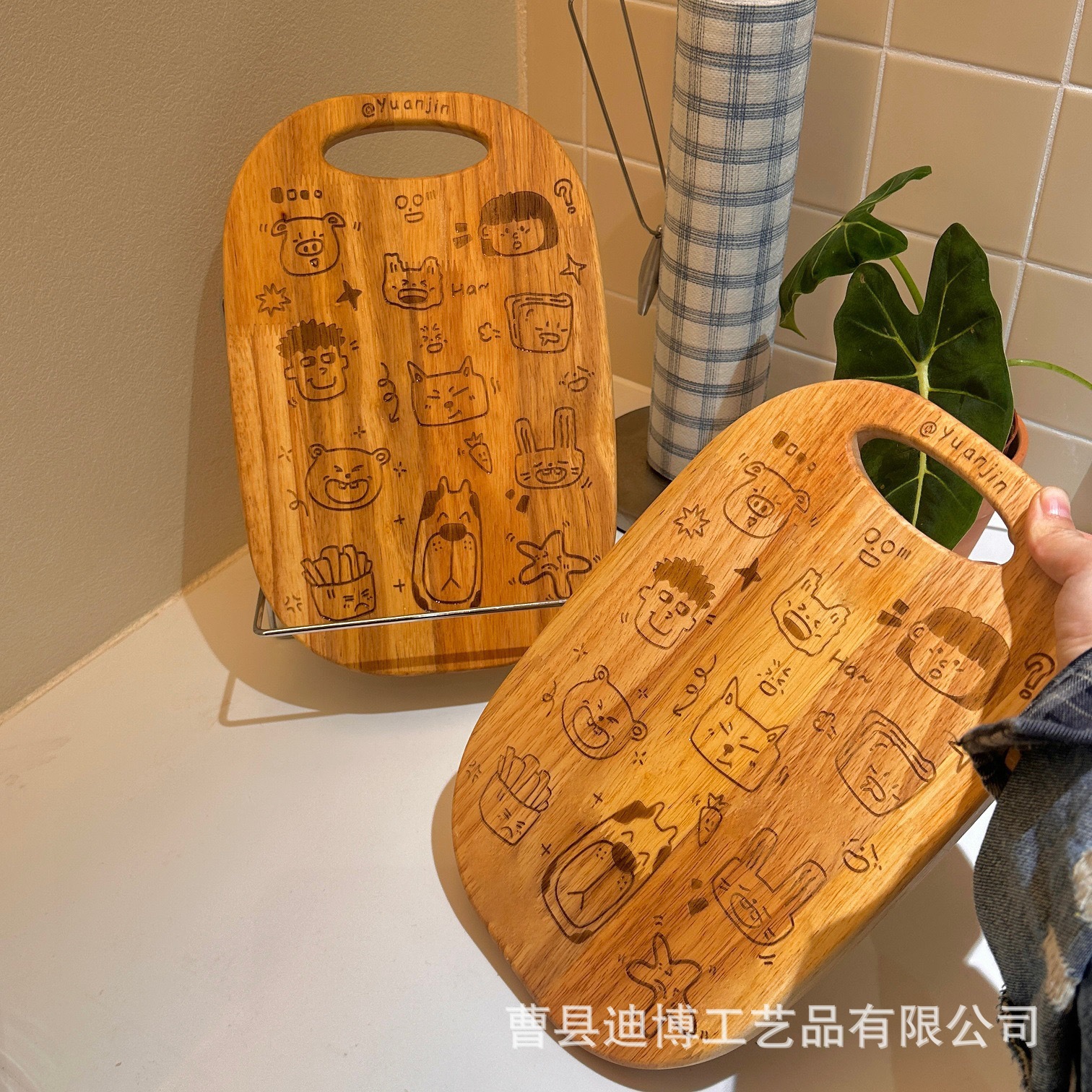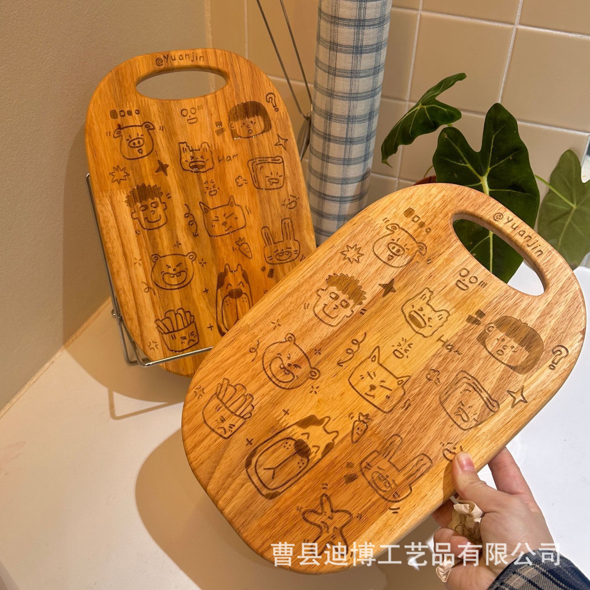 주방용 나무 귀여운 만화 도마 양면 사용 가능한 단단한 나무 도마 애프터눈 티 케이크 스낵 나무 트레이