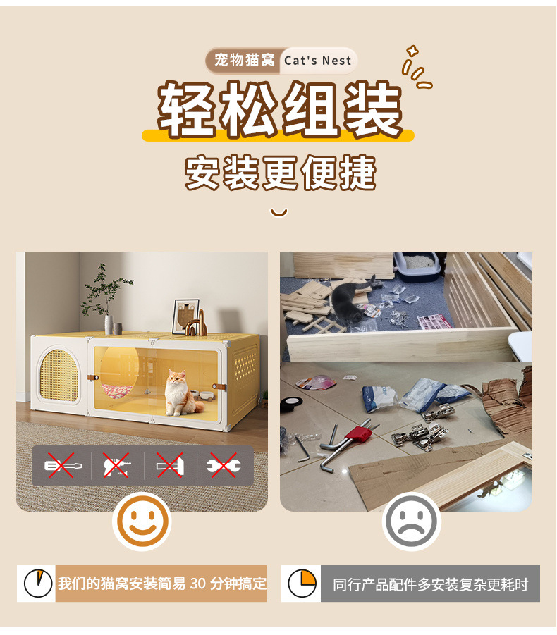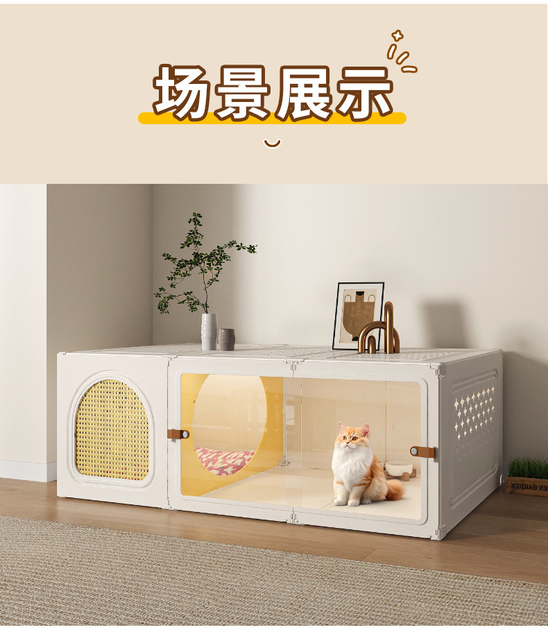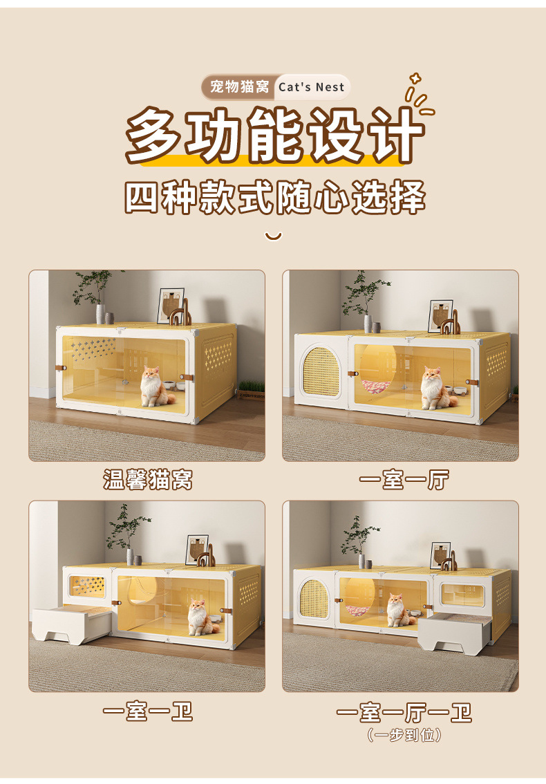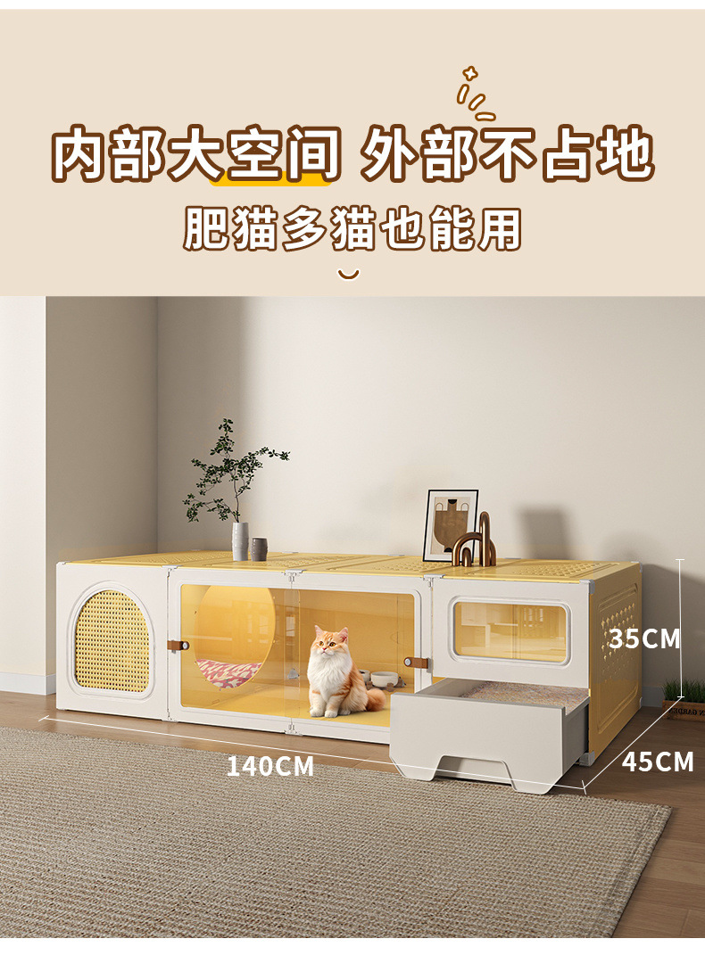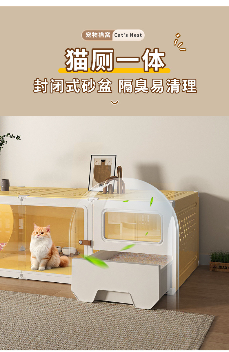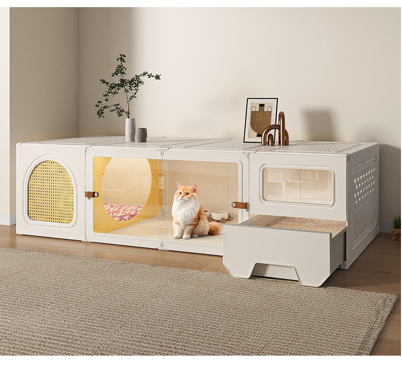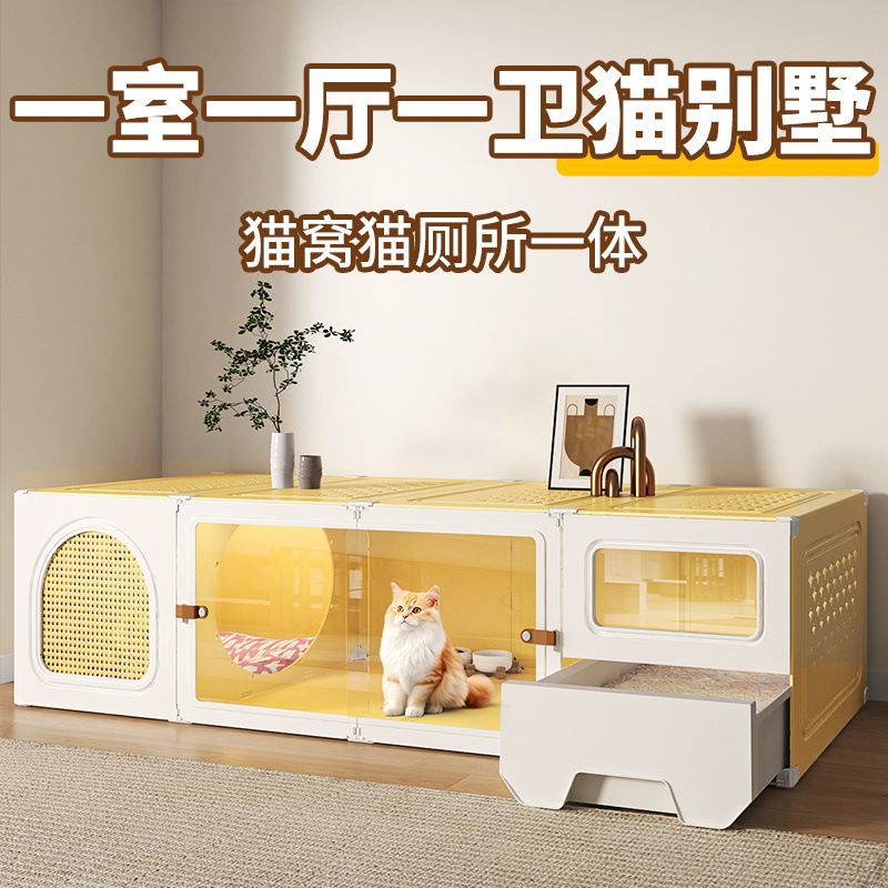 화장실 서랍형 일체형 가정용 실내 사계절 만능 고양이 케이지 1실, 1거실, 1욕실을 갖춘 고양이 둥지 고양이 빌라
