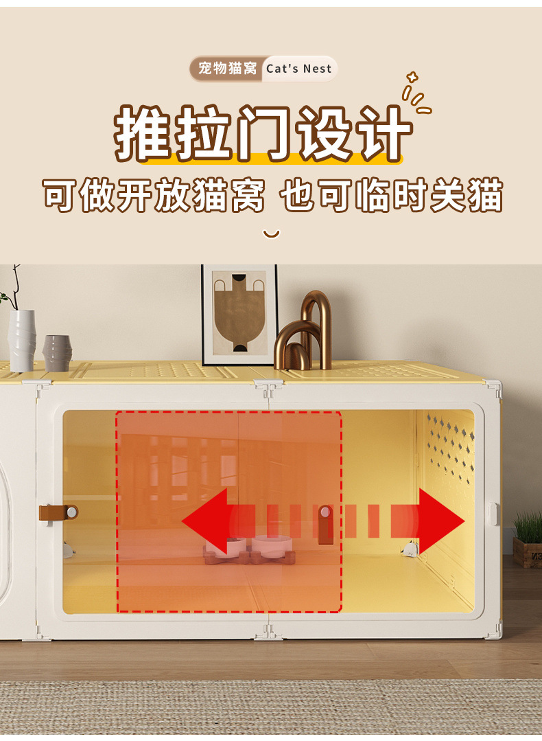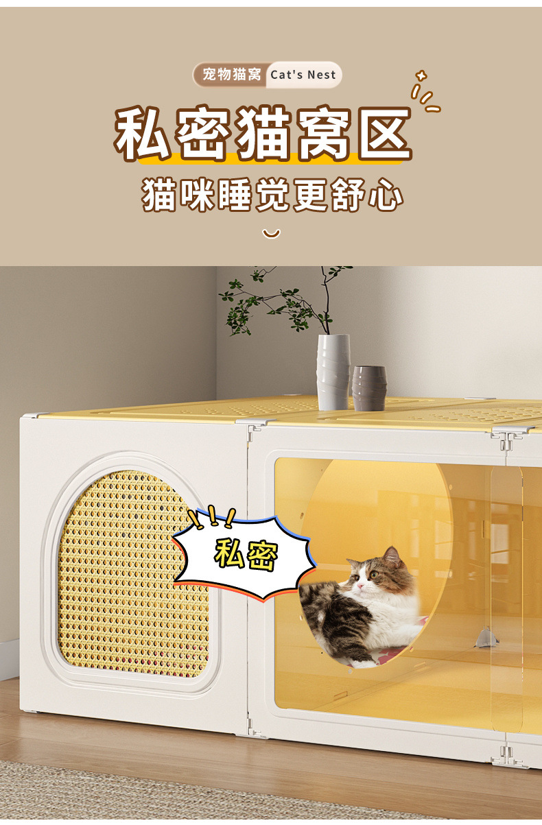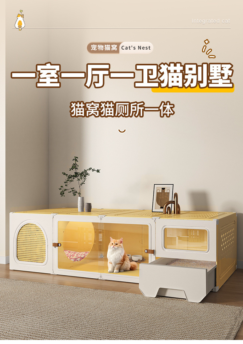 화장실 서랍형 일체형 가정용 실내 사계절 만능 고양이 케이지 1실, 1거실, 1욕실을 갖춘 고양이 둥지 고양이 빌라스토어 가기