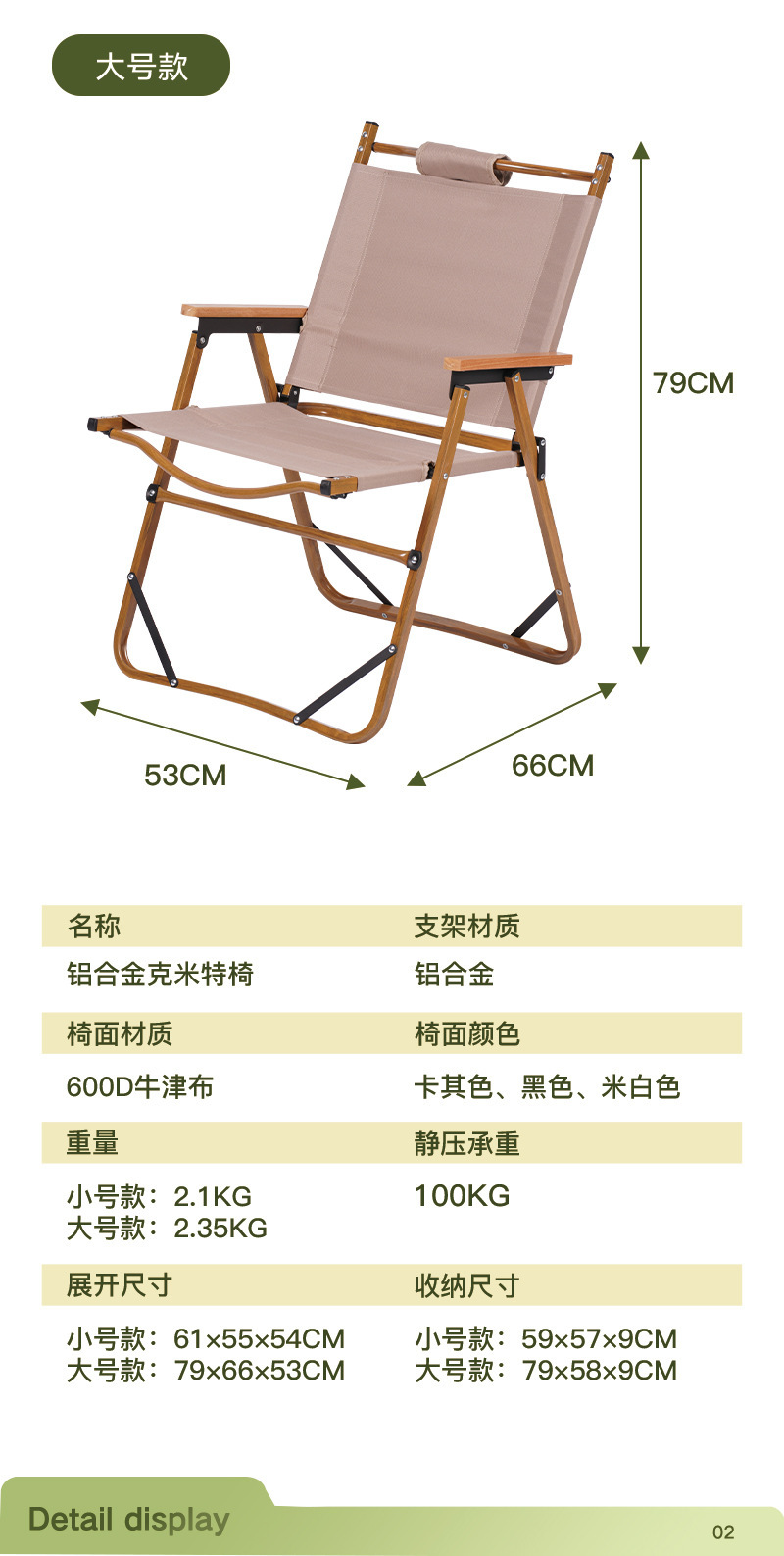 • [골드체어프레임+카키] 대형사이즈(양면옥스포드천)