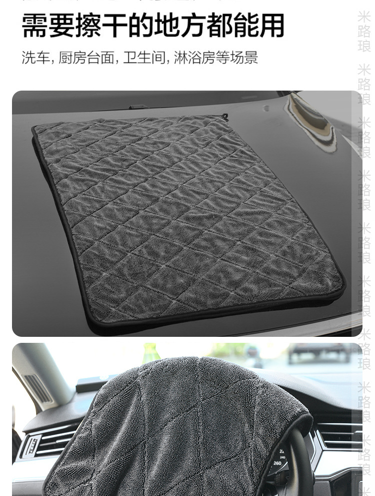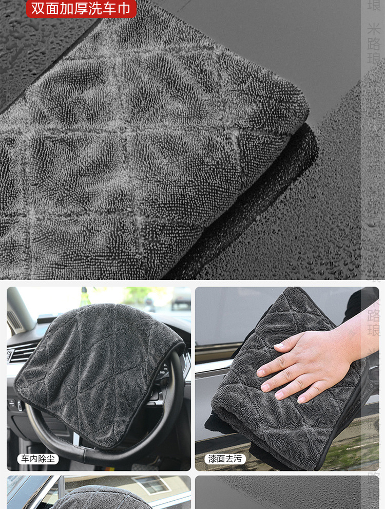 작은 직사각형 격자무늬 세차 타월 도매, 세차용 흡수성 두꺼운 보풀이 잘 안나는 이중층 세차 타월, 배송 대행