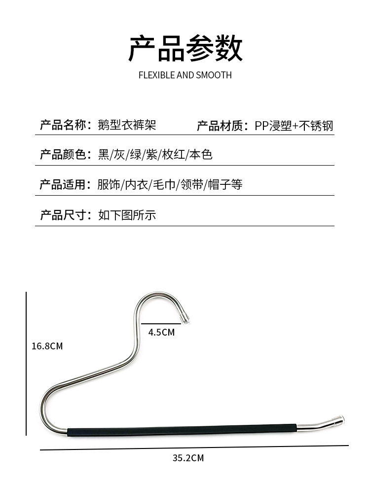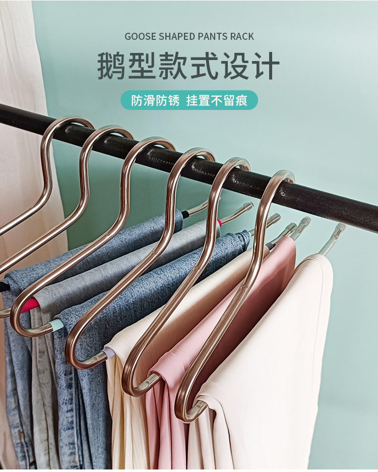 아마존의 인기 스테인레스 스틸 거위 모양의 옷걸이 바지 걸이 옷장 보관 걸이 다기능 미끄럼 방지 매직 옷걸이