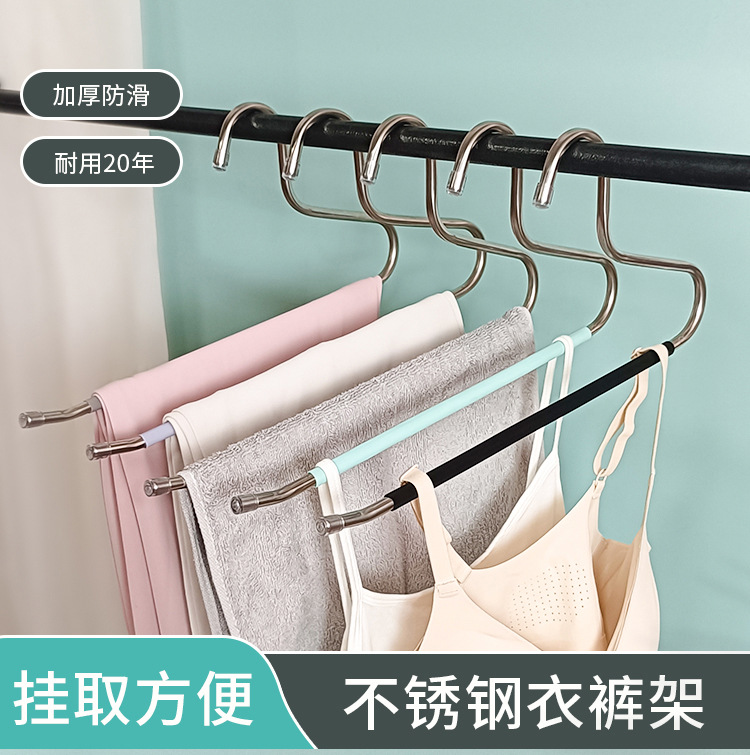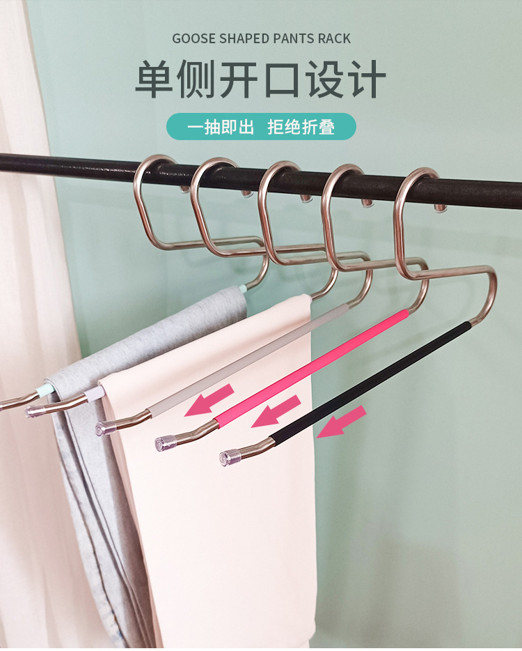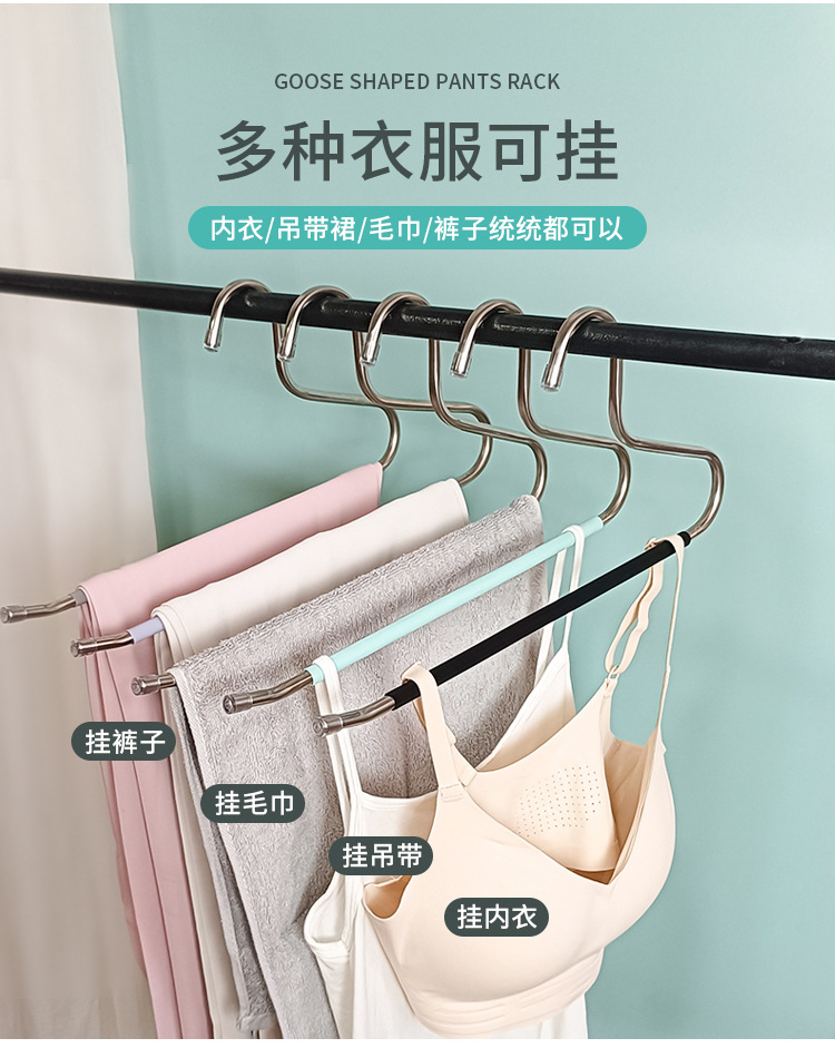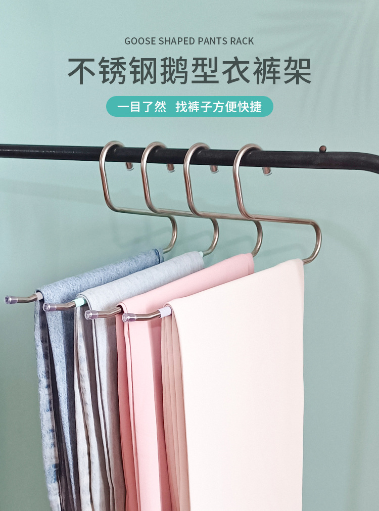 아마존의 인기 스테인레스 스틸 거위 모양의 옷걸이 바지 걸이 옷장 보관 걸이 다기능 미끄럼 방지 매직 옷걸이스토어 가기