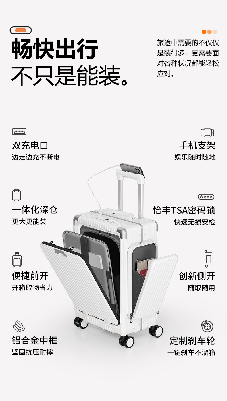 새로운 3단 다기능 전면 오픈 뚜껑 가방 20inch PC 양면 가방 대용량 여행 탑승 트롤리 케이스