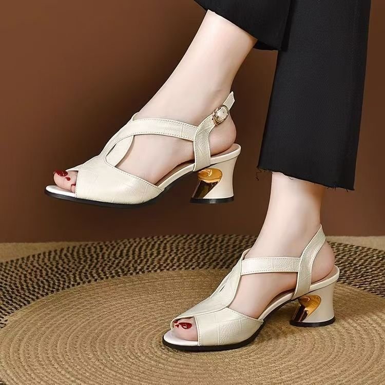 여성용 크로스보더 피쉬 입 샌들, 로우 힐, 2025 여름 신작, 다용도 미드 힐, 두꺼운 힐, 아우터웨어, 부드러운 밑창, 뒷끈 여성화스토어 가기