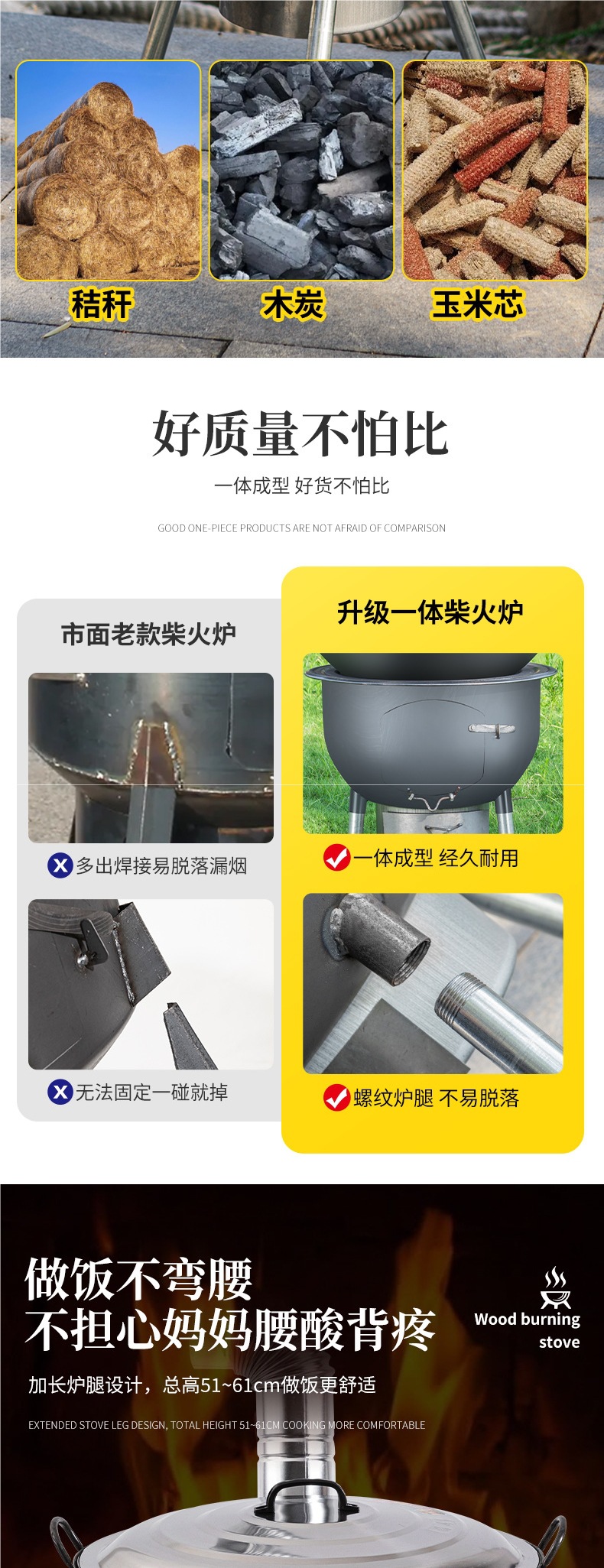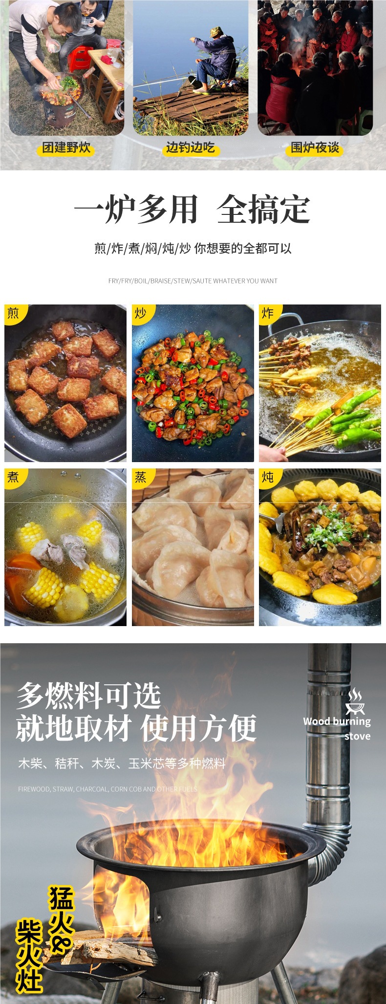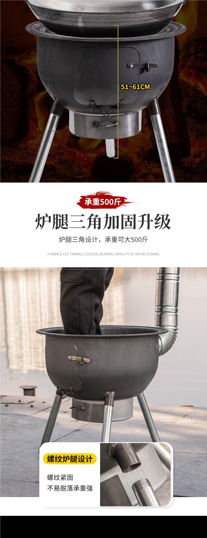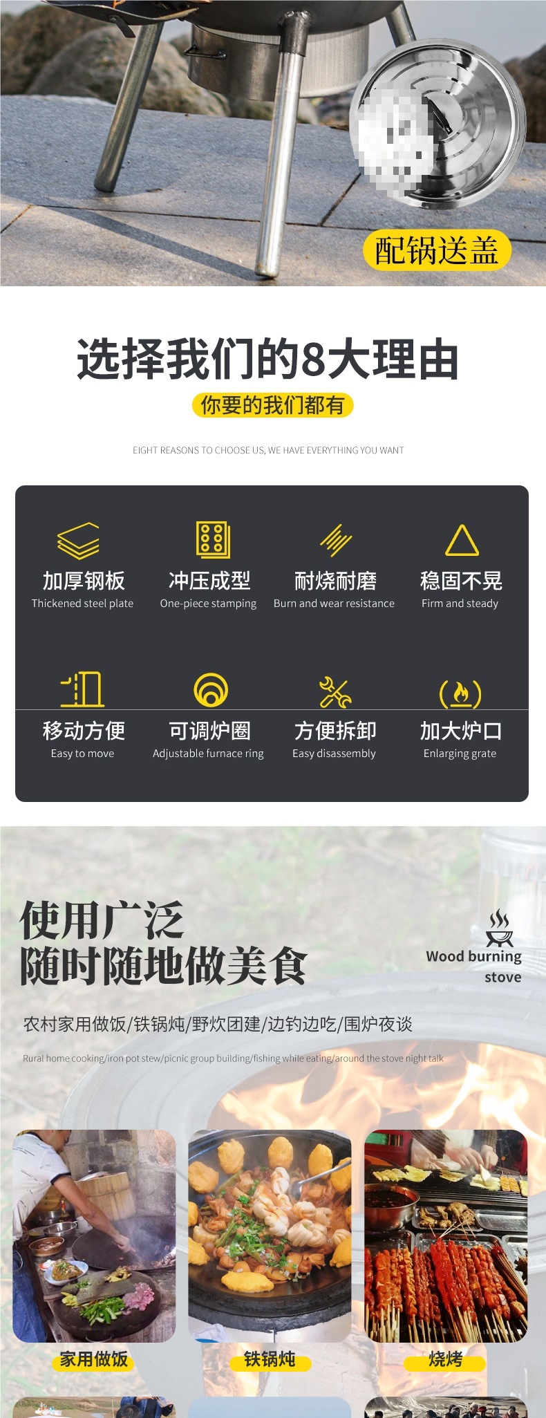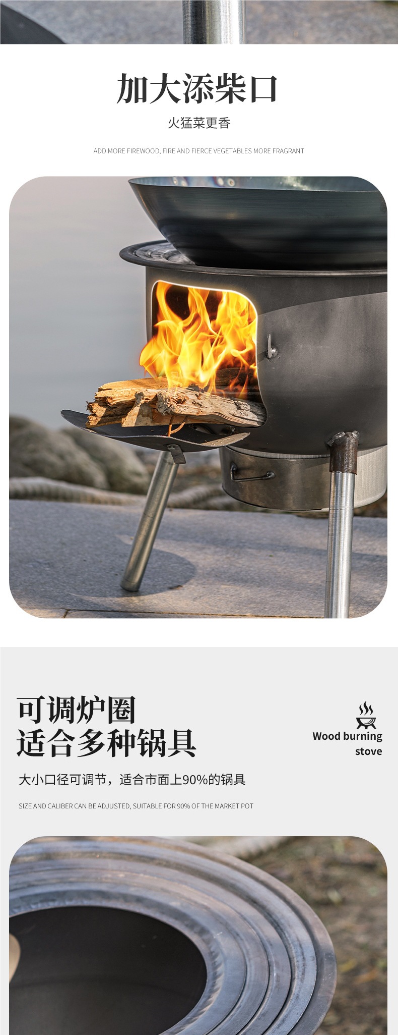 새로운 장작 난로, 가정용 농촌 장작 난로, 장작 모바일 스토브, 대형 냄비, 야외 캠핑 스토브, 지상 냄비