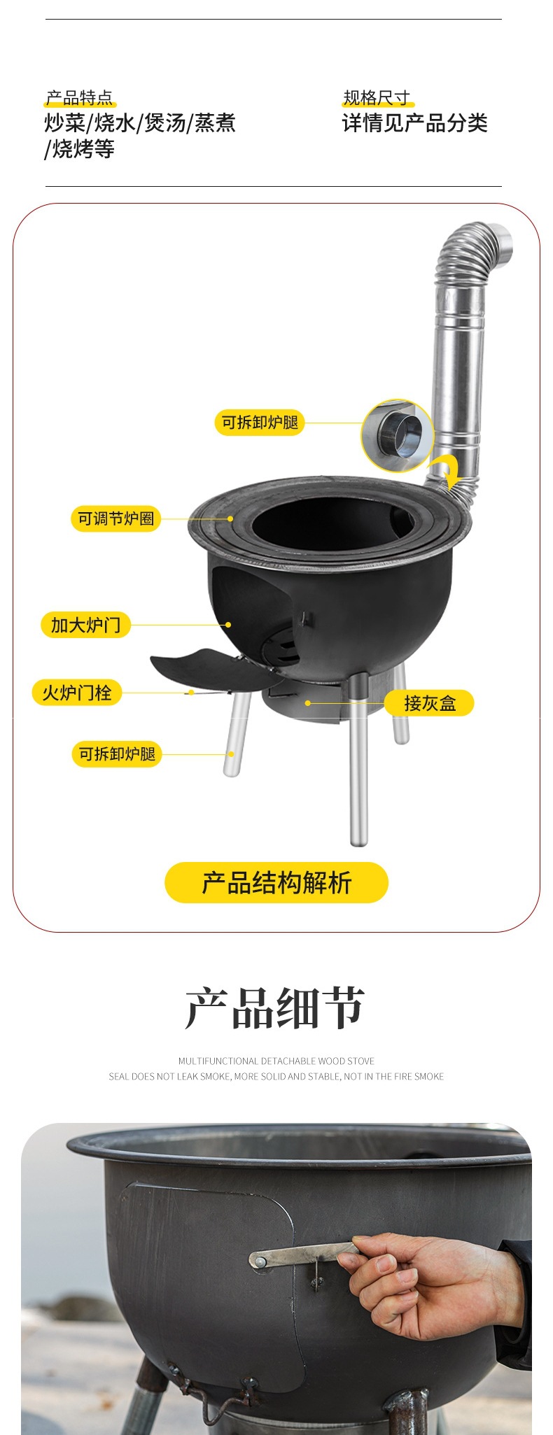 새로운 장작 난로, 가정용 농촌 장작 난로, 장작 모바일 스토브, 대형 냄비, 야외 캠핑 스토브, 지상 냄비스토어 가기