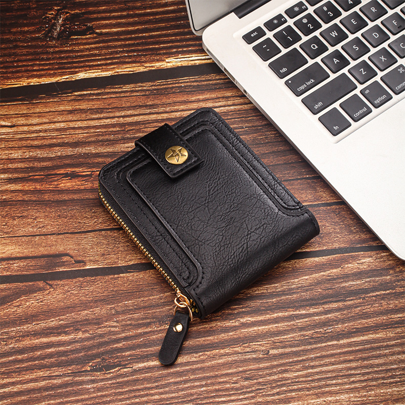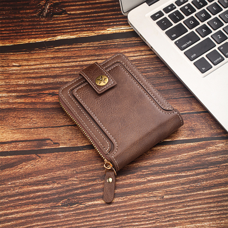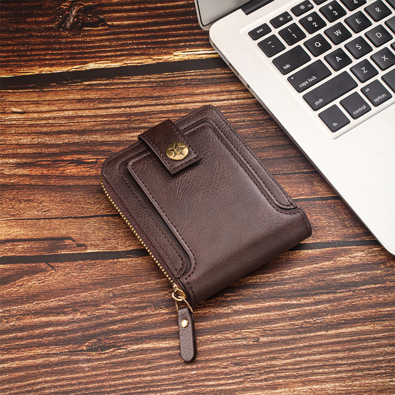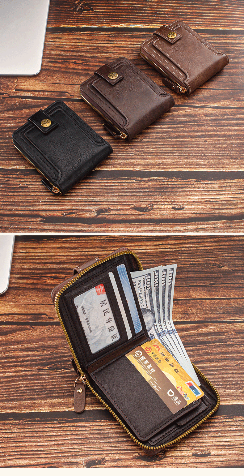 짧은 남성용 지갑 유럽과 미국 스타일의 복고풍 다기능 카드 홀더 지퍼 가방 버클 디자인 휴대용 동전 지갑 가공스토어 가기