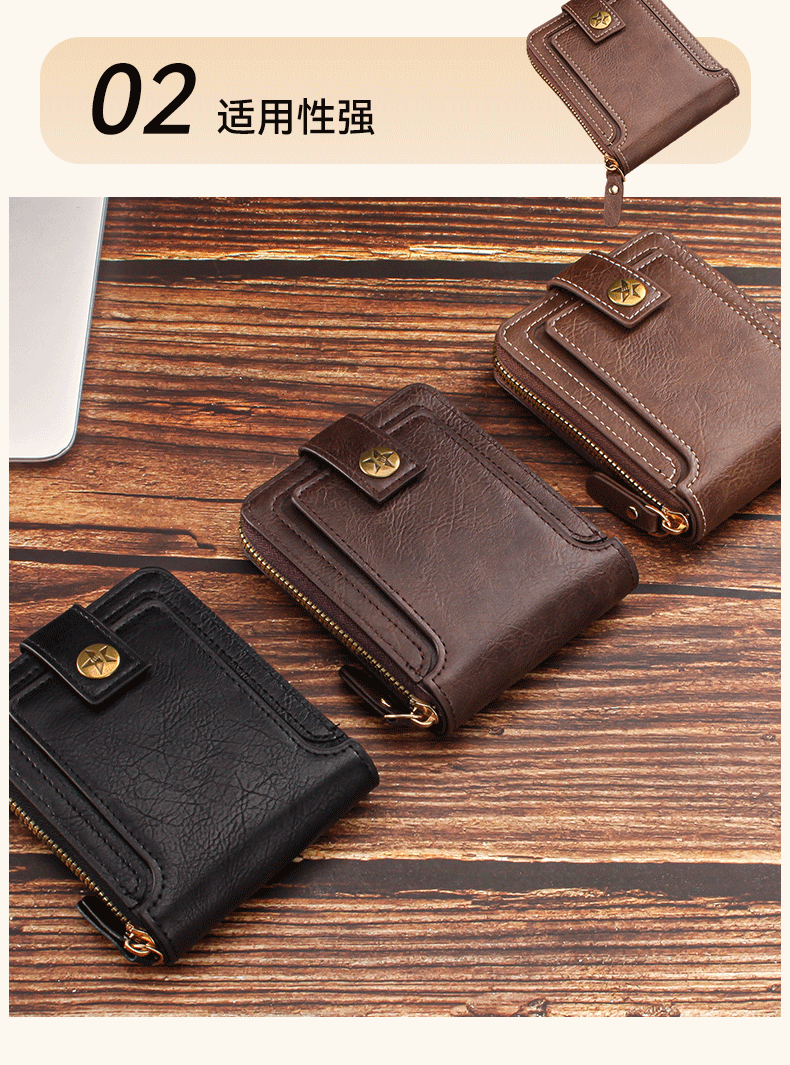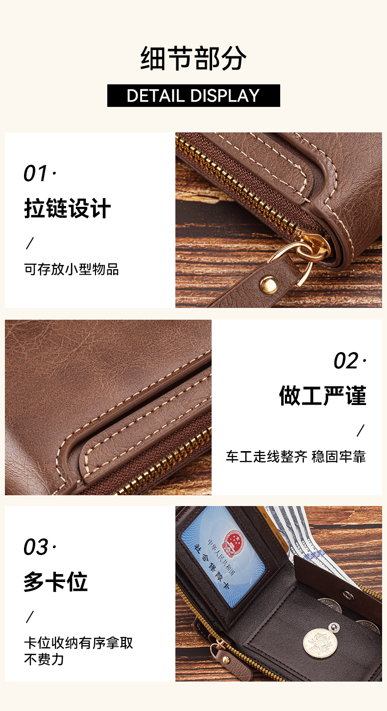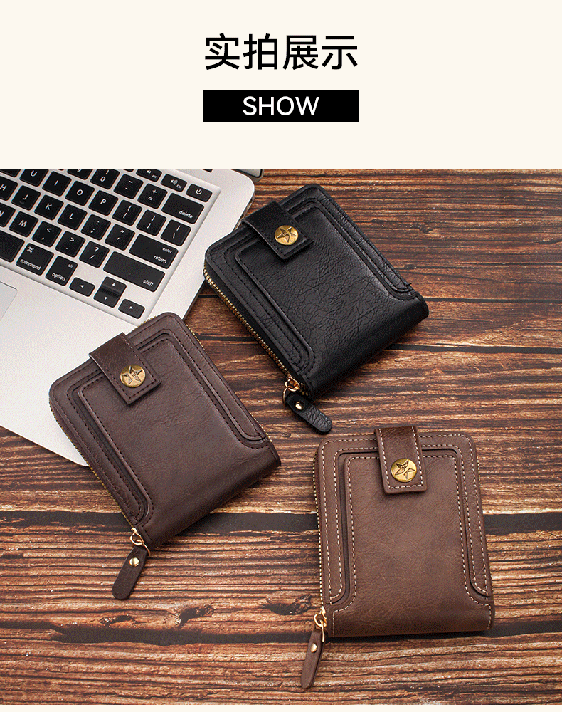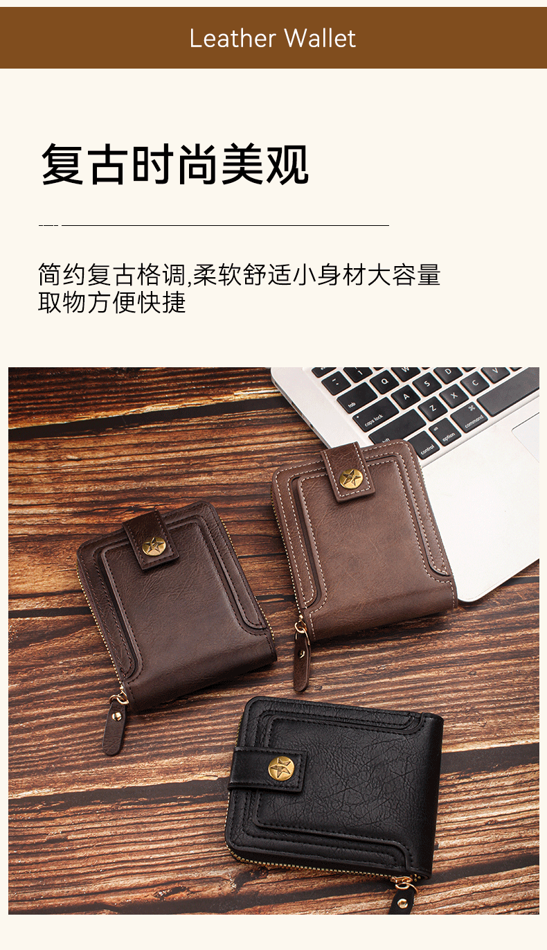 짧은 남성용 지갑 유럽과 미국 스타일의 복고풍 다기능 카드 홀더 지퍼 가방 버클 디자인 휴대용 동전 지갑 가공스토어 가기